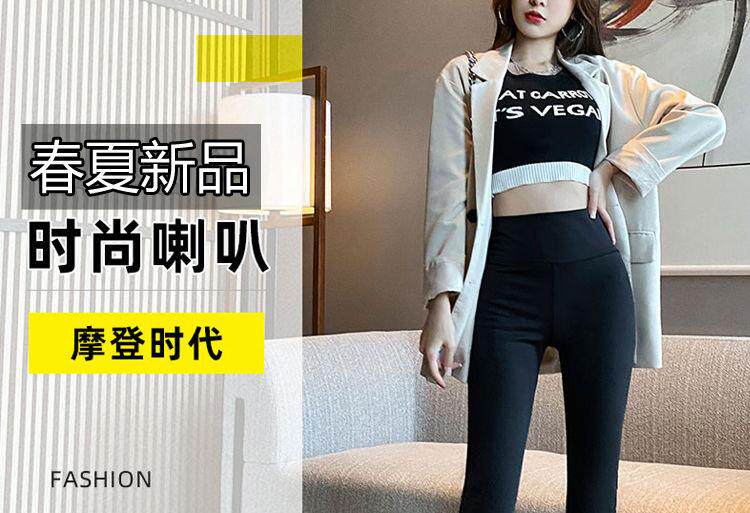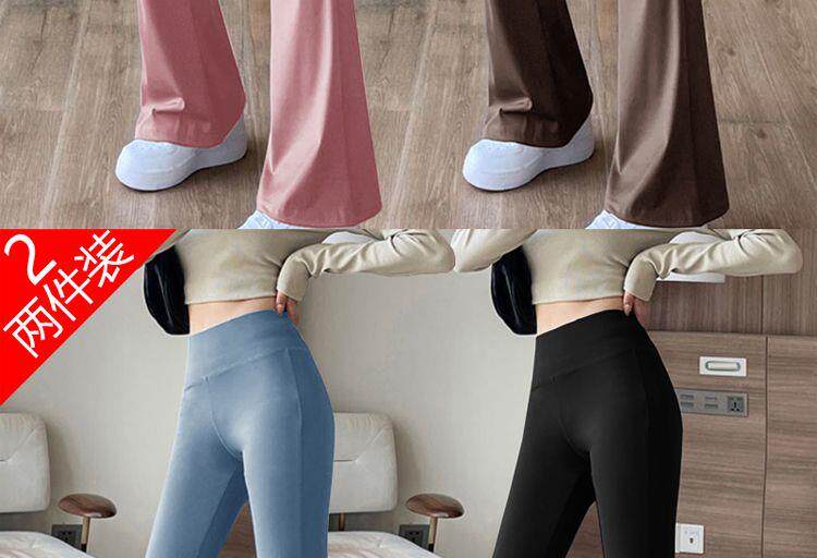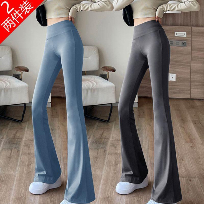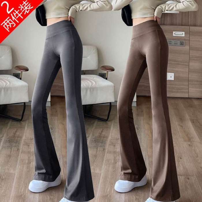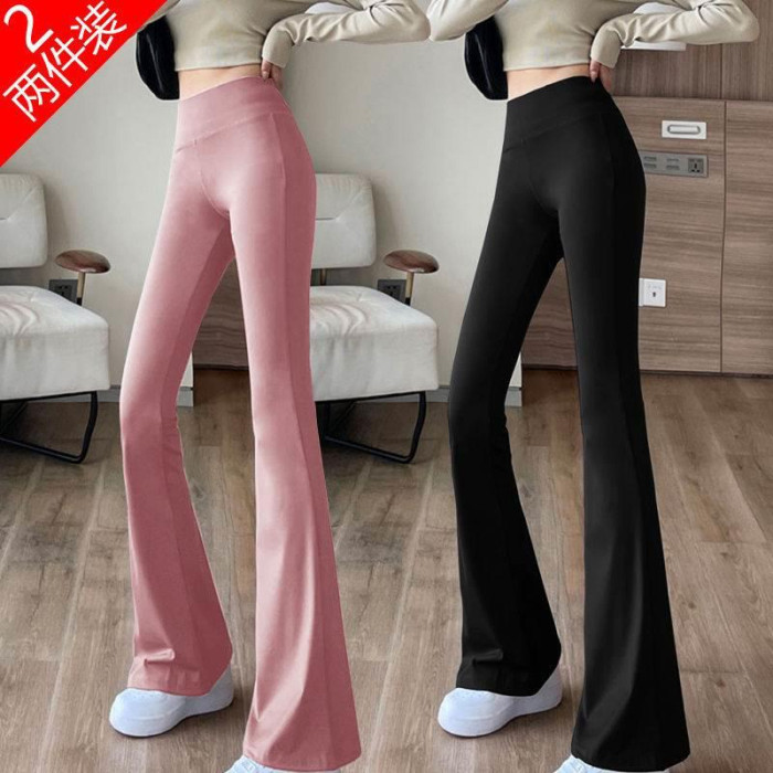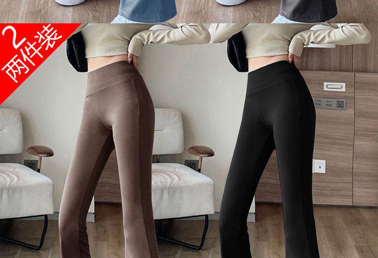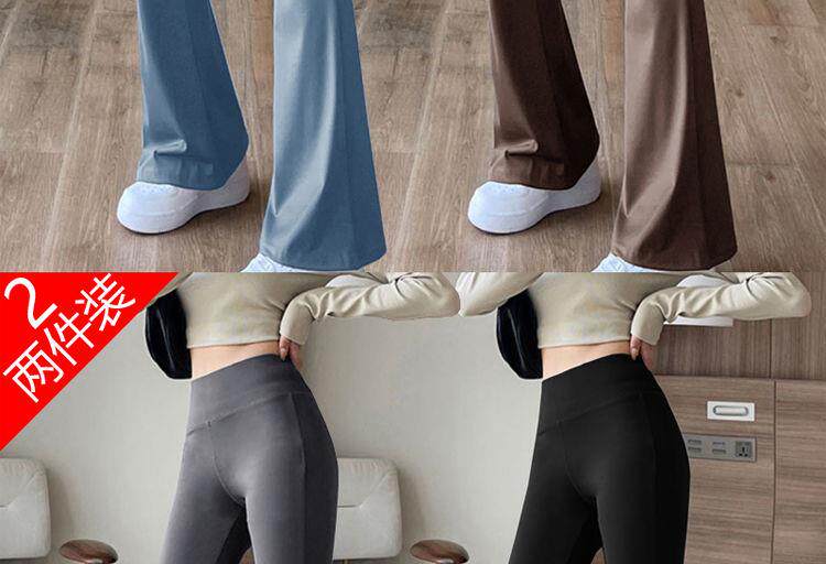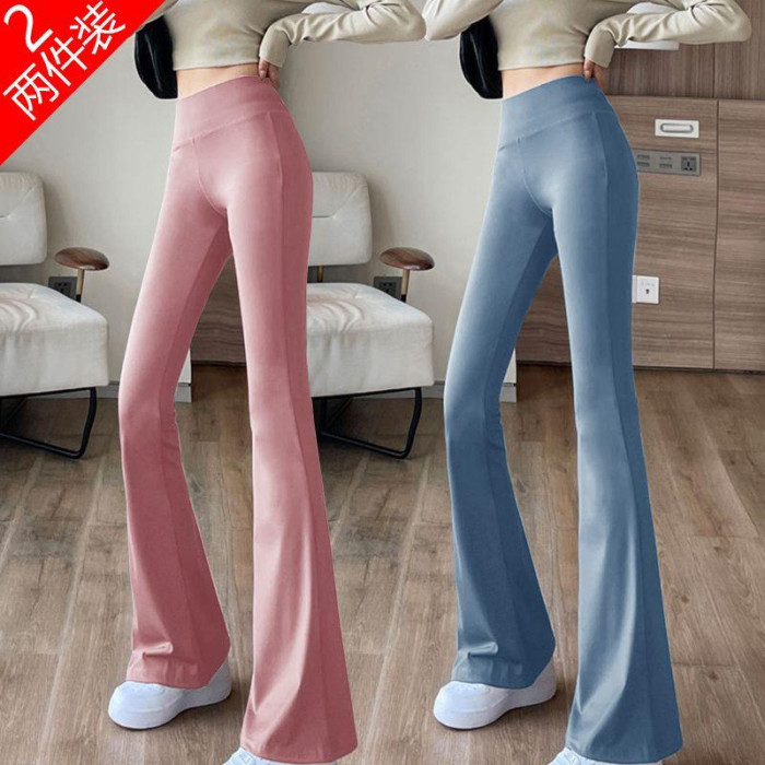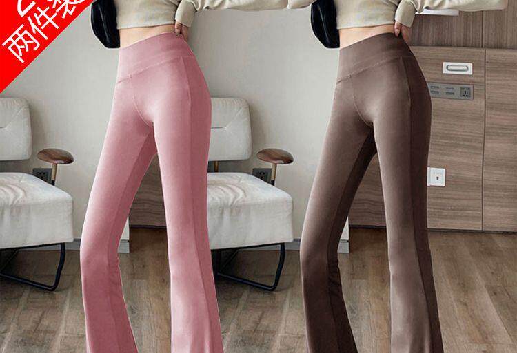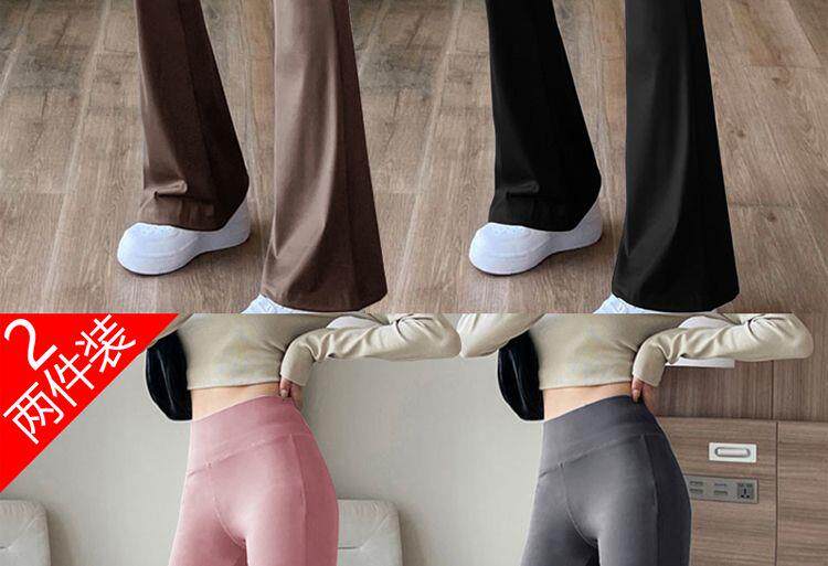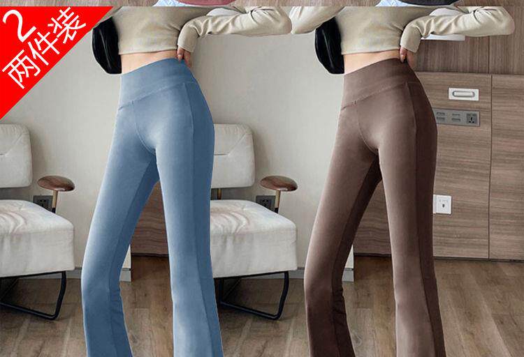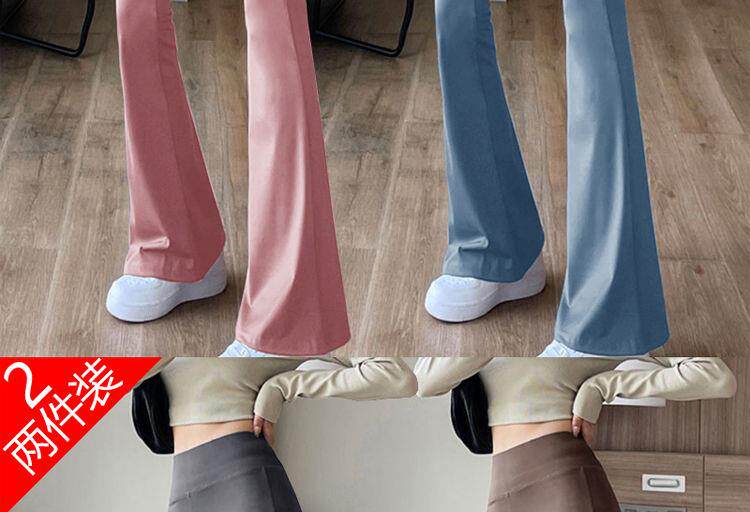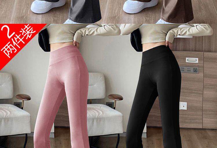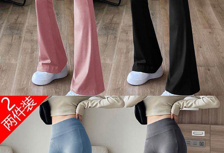 單/兩件 高腰微喇鯊魚褲女外穿打底瑜珈褲修身顯瘦濶腿休閒喇叭褲