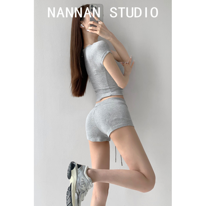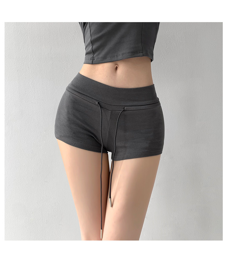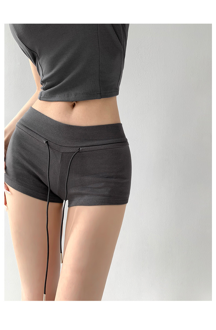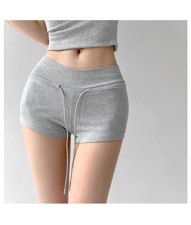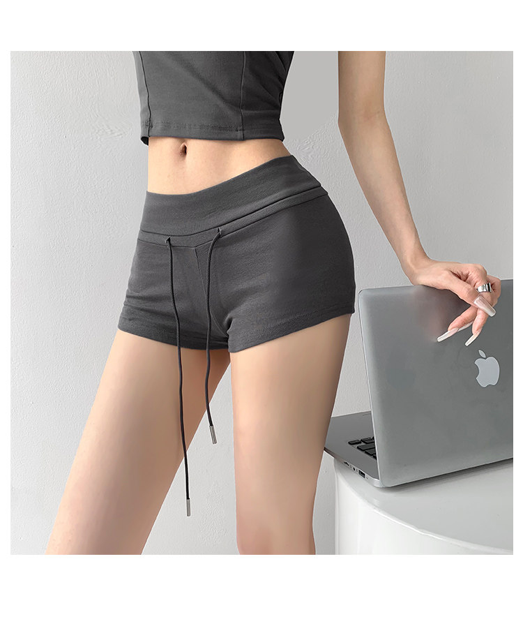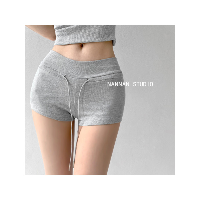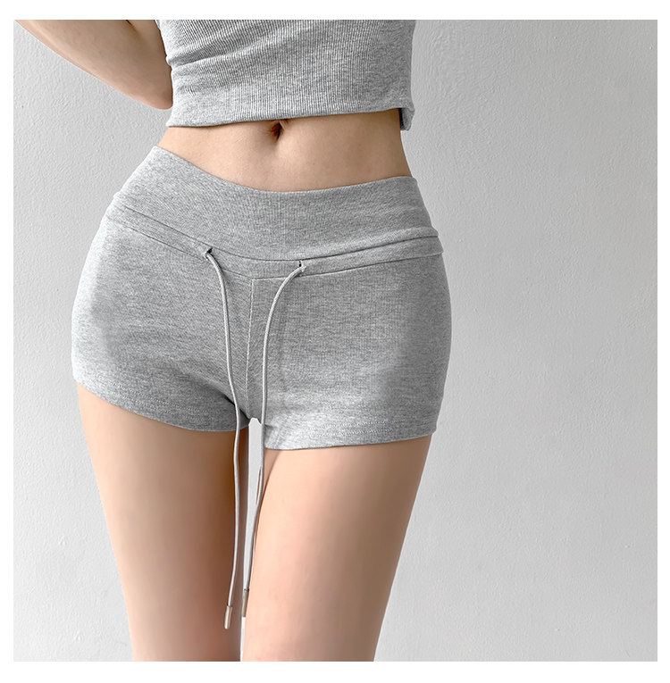 街拍辣妹低腰緊身高腰運動短褲女外穿夏季顯瘦灰色修身翹臀熱褲潮