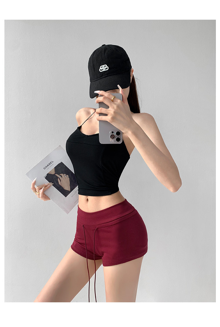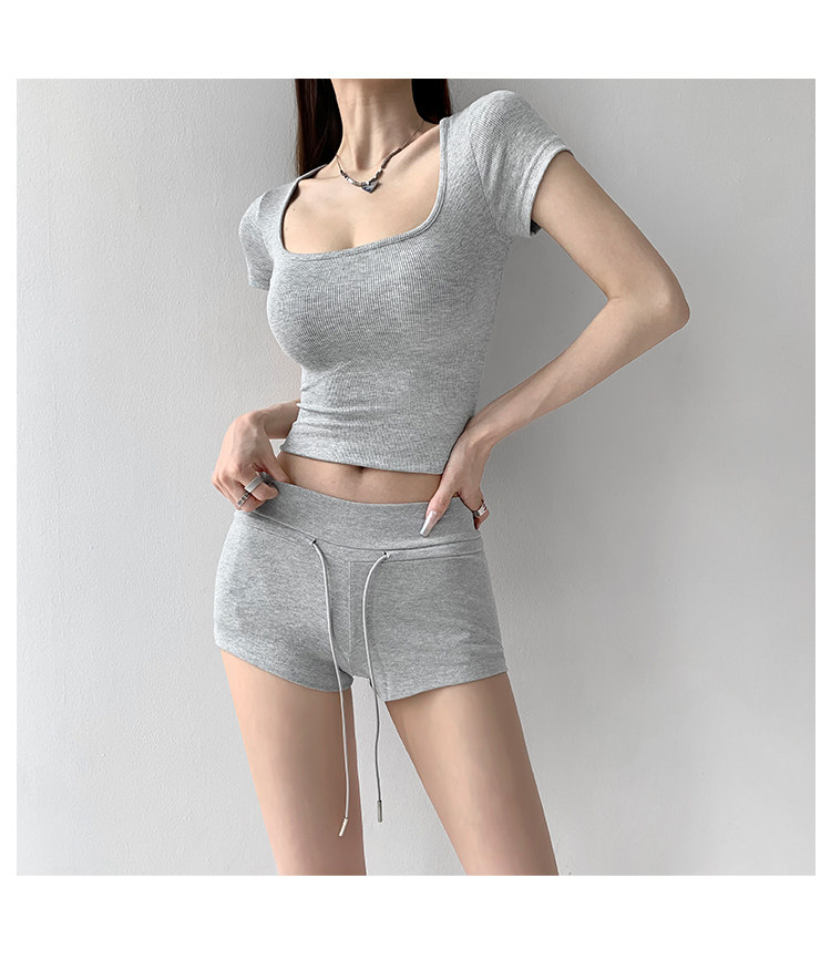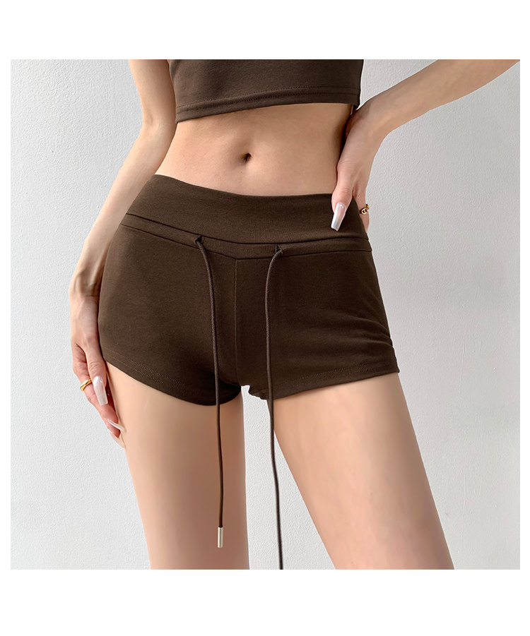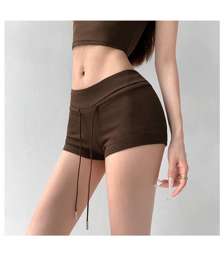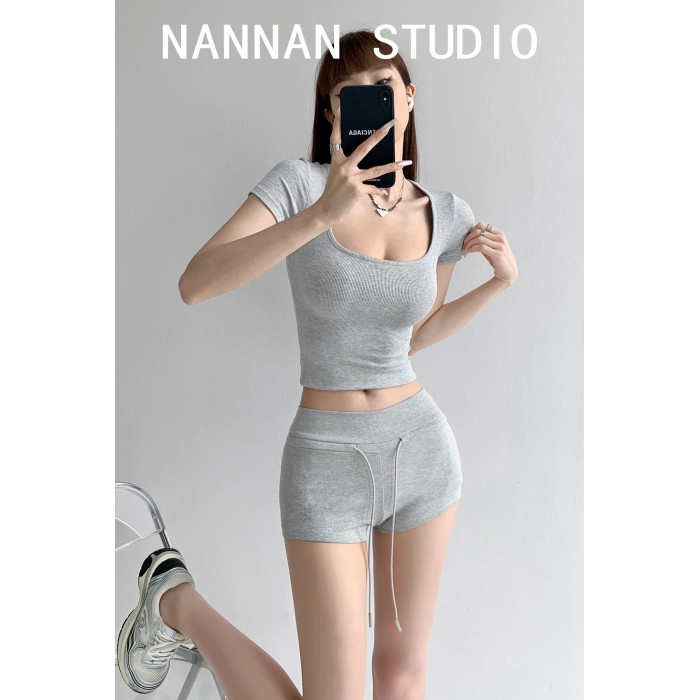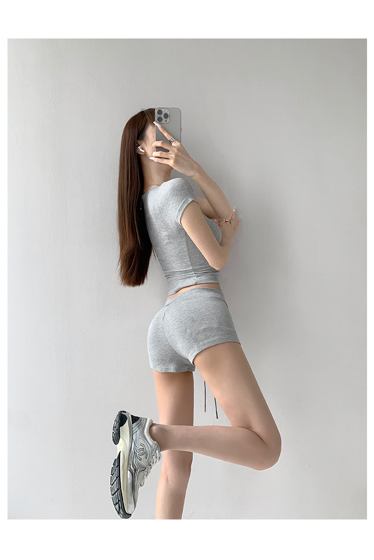 街拍辣妹低腰緊身高腰運動短褲女外穿夏季顯瘦灰色修身翹臀熱褲潮