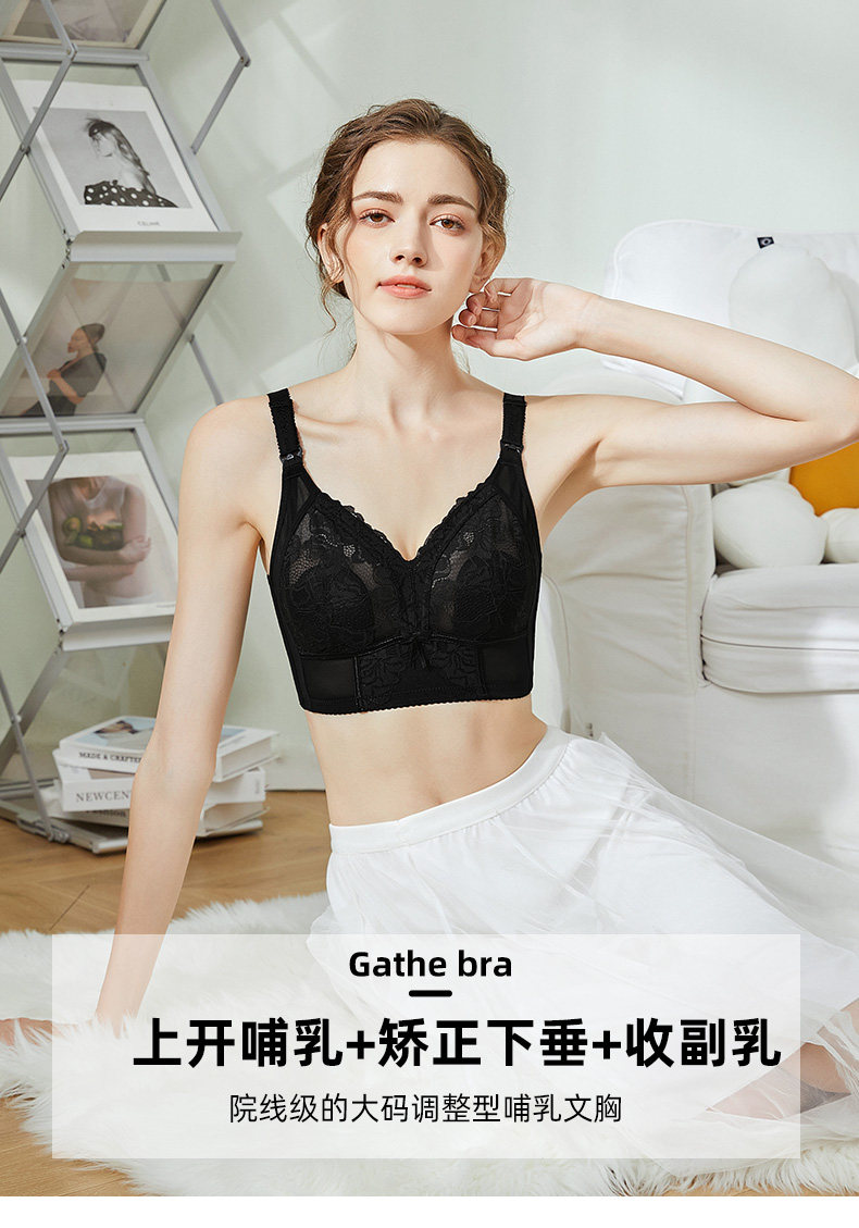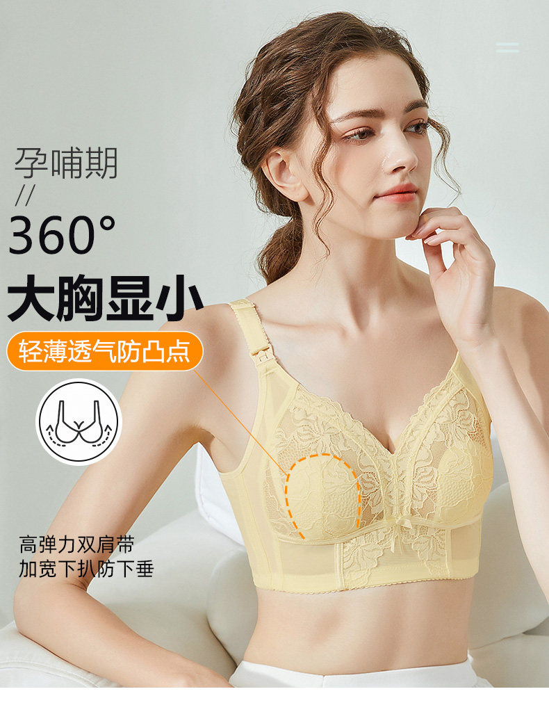 哺乳內衣大碼薄款防下垂大胸顯小無鋼圈收副乳孕婦産後喂奶文胸夏
