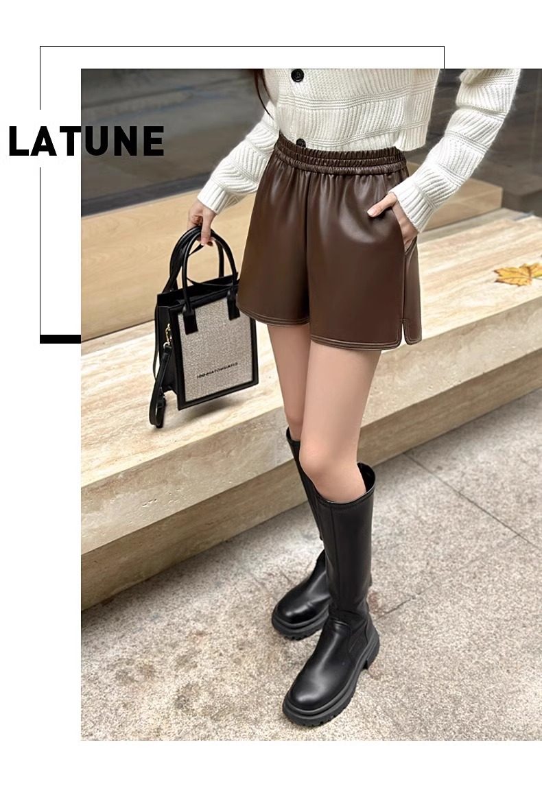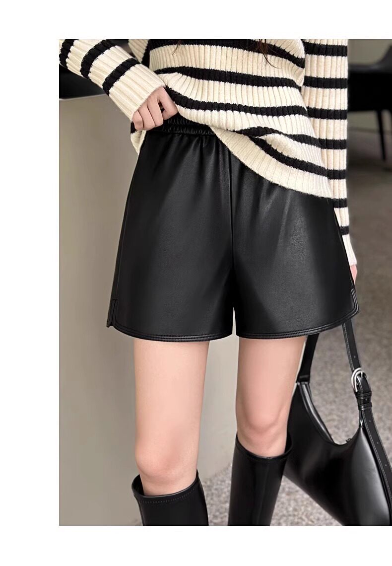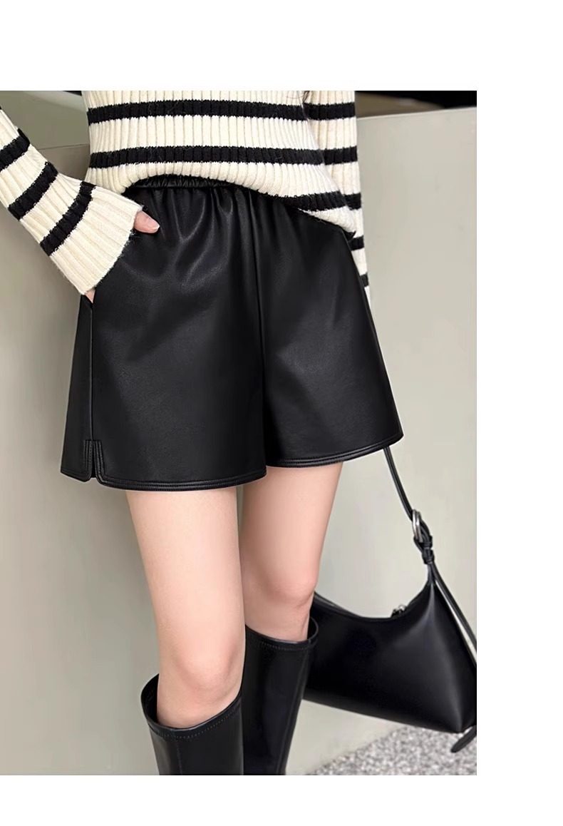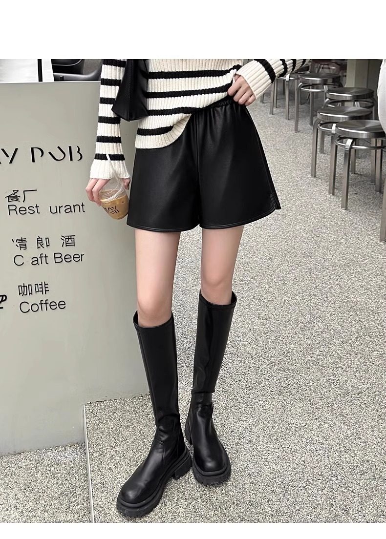 皮短褲女2023新款秋冬季外穿高腰大碼靴褲黑色百搭a字濶腿小皮褲