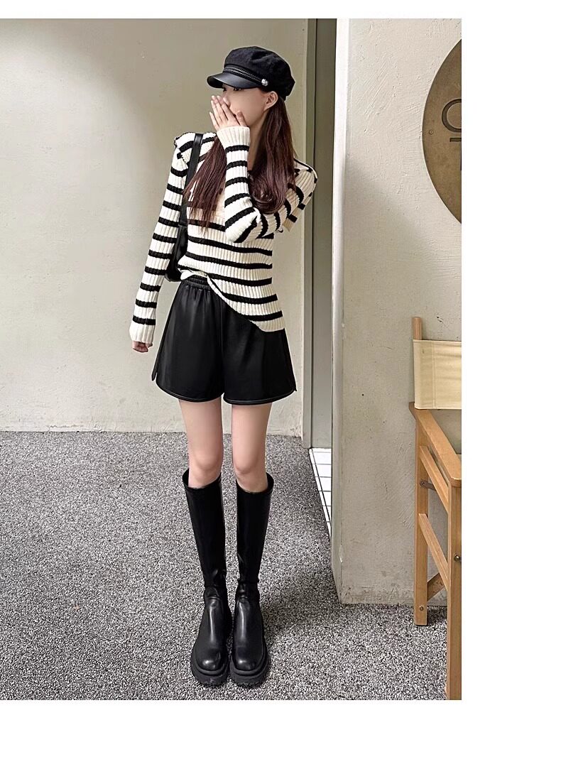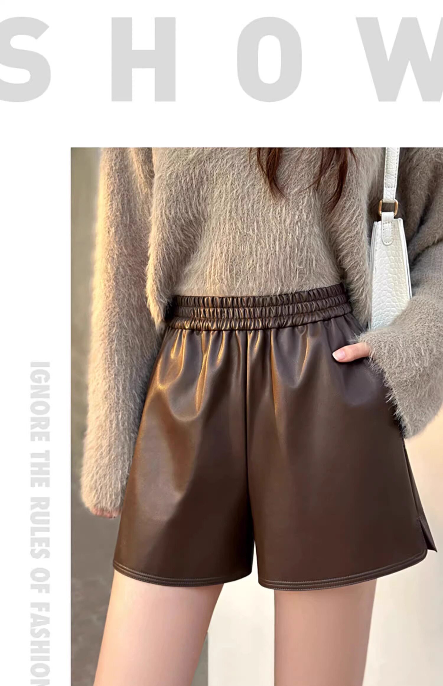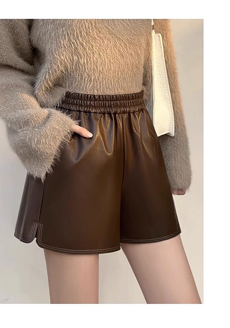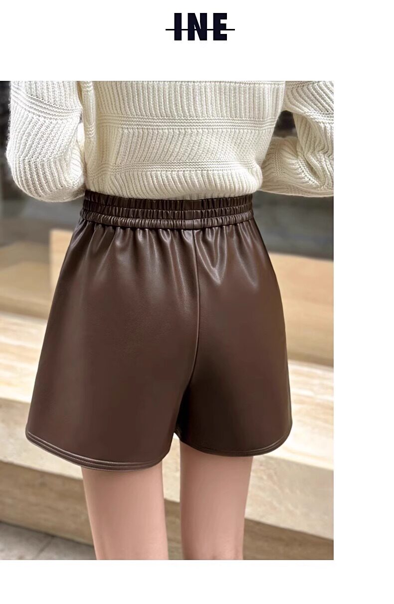 皮短褲女2023新款秋冬季外穿高腰大碼靴褲黑色百搭a字濶腿小皮褲