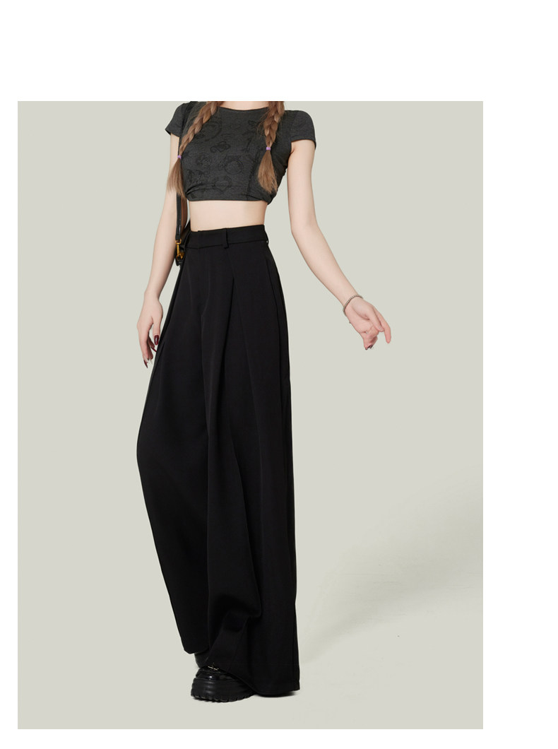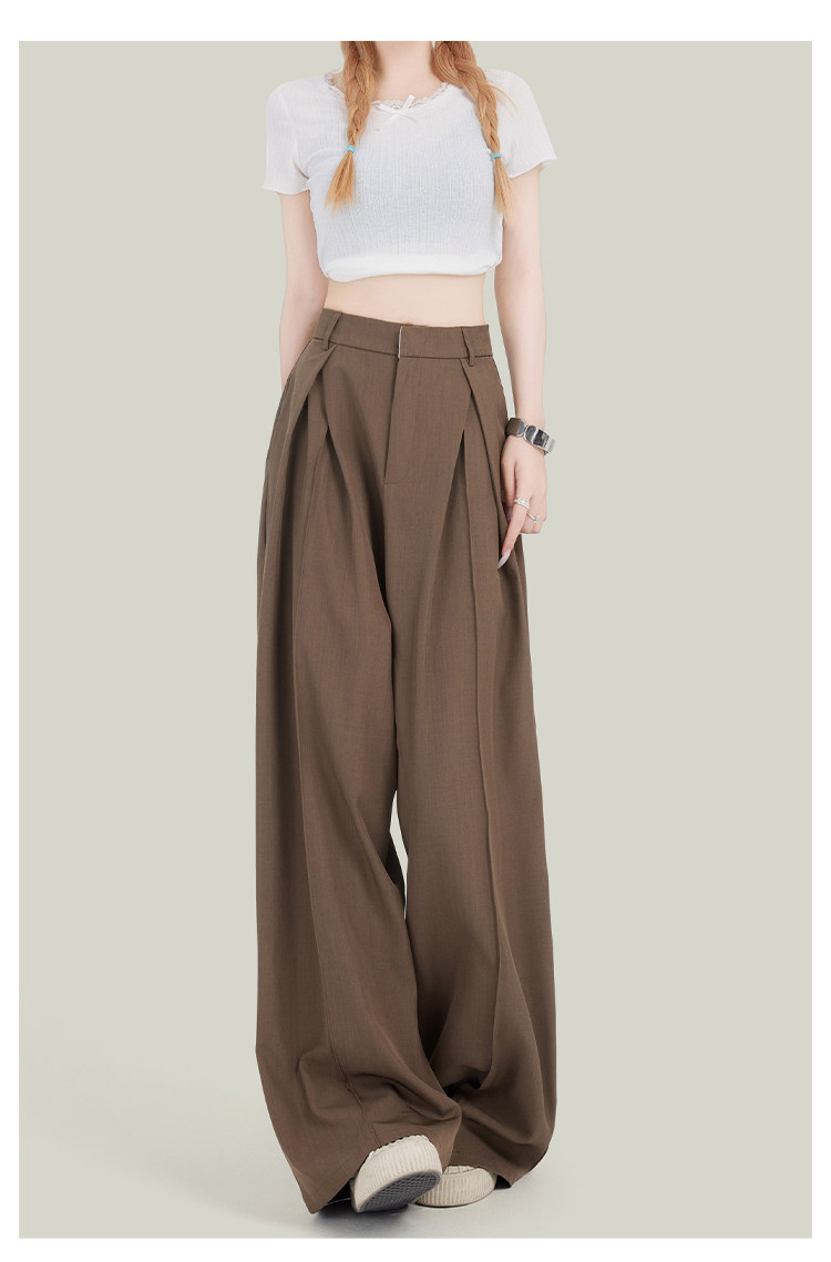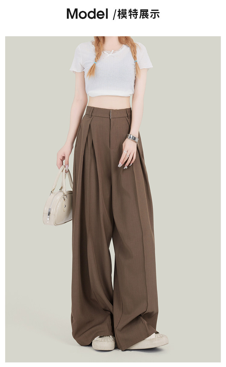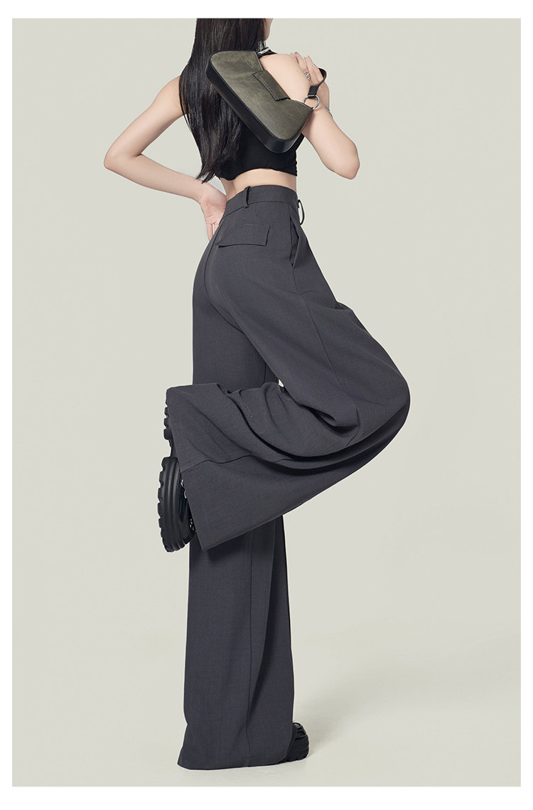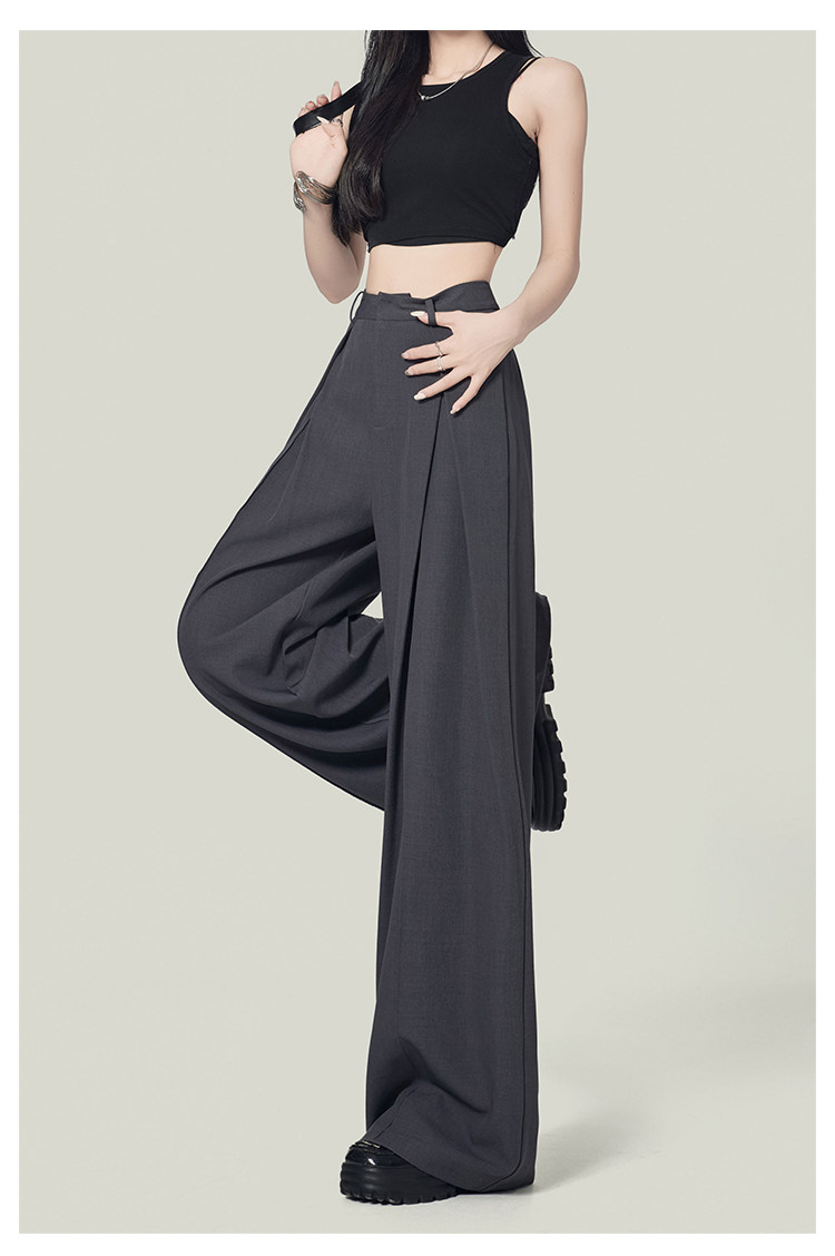 Forever 21灰色褶皺西裝濶腿休閒褲女夏小個子百搭顯高直筒拖地褲