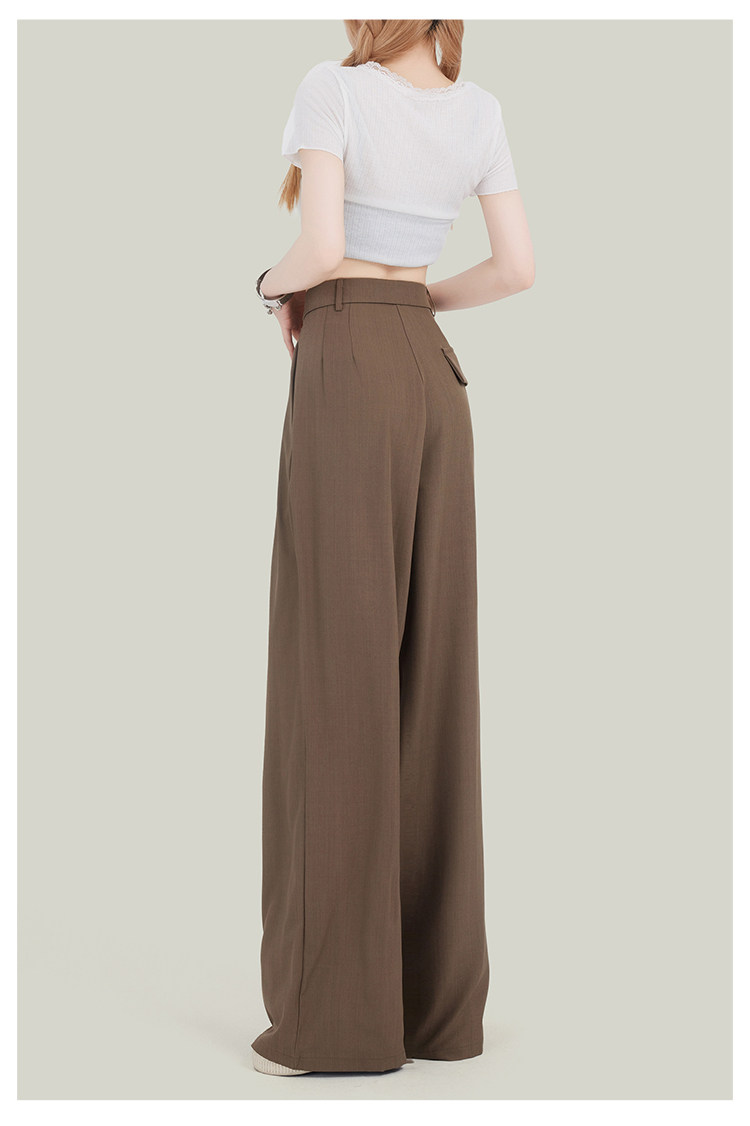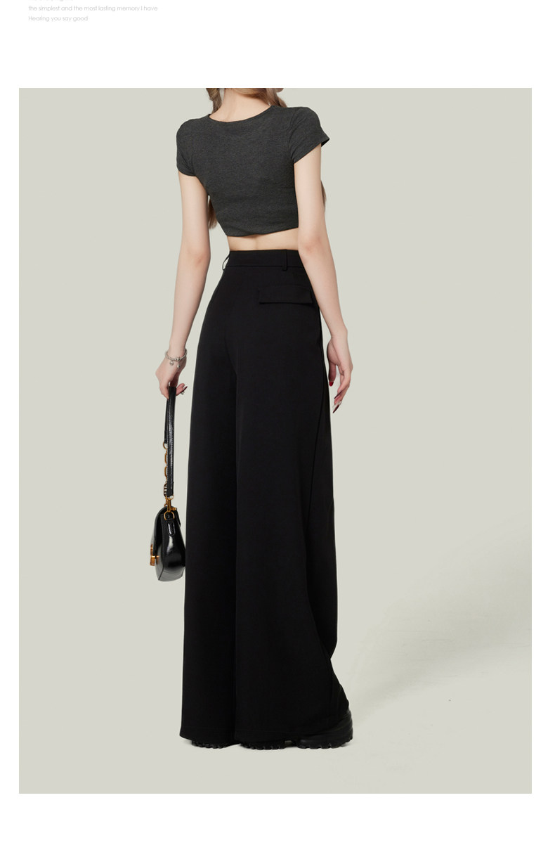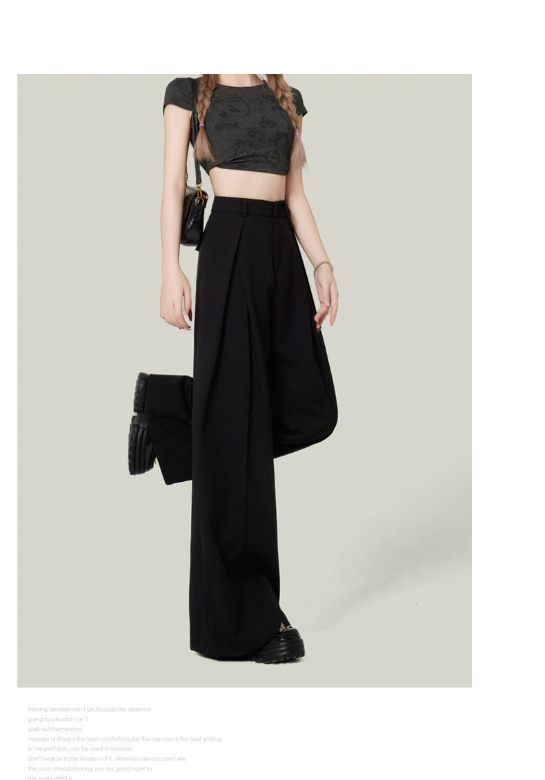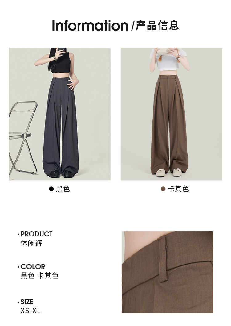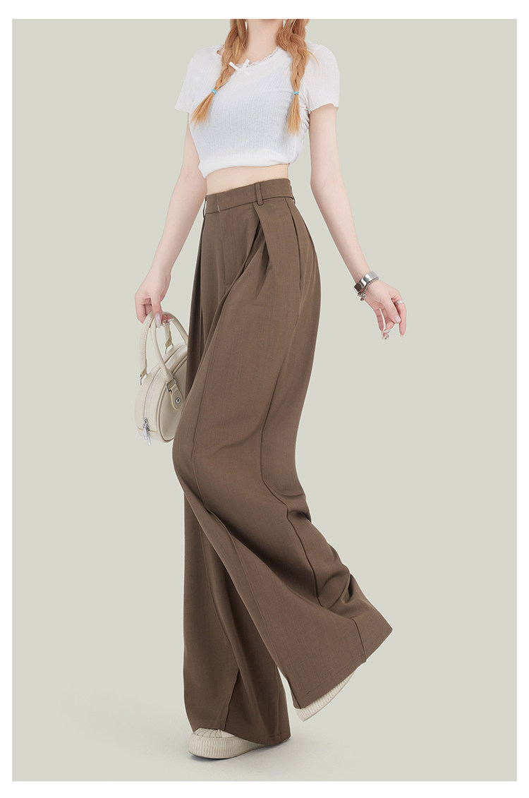 Forever 21灰色褶皺西裝濶腿休閒褲女夏小個子百搭顯高直筒拖地褲