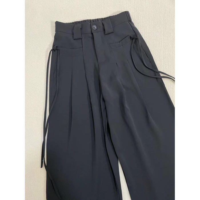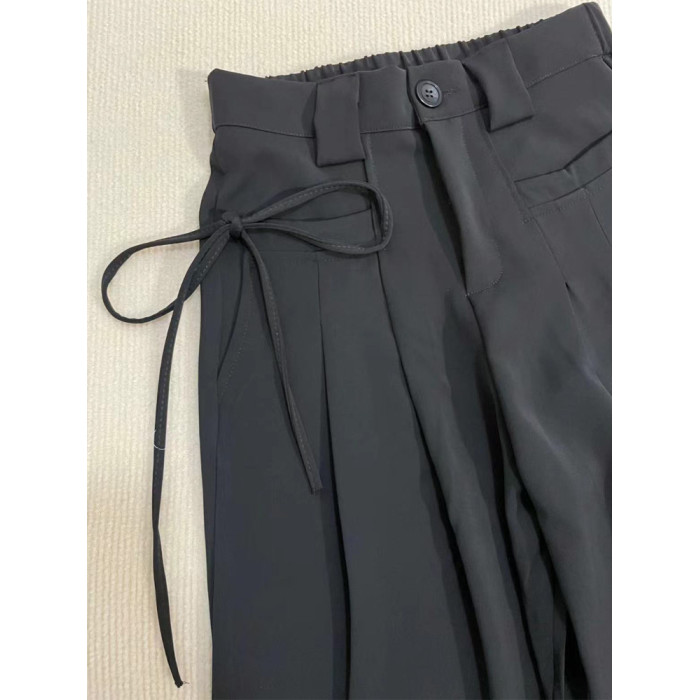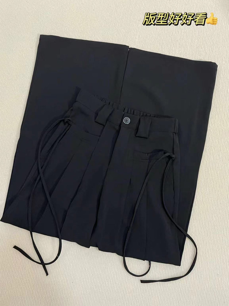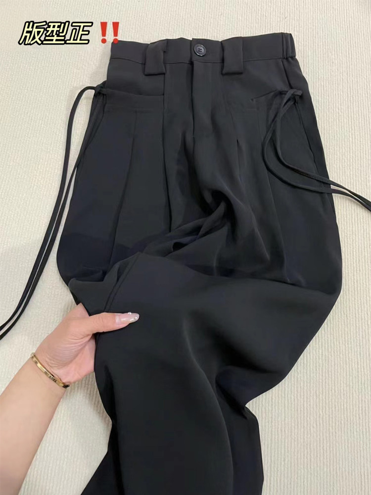 梨形身材黑色休閒褲女秋季新款大碼胖mm高腰寬鬆顯瘦西裝濶腿褲子