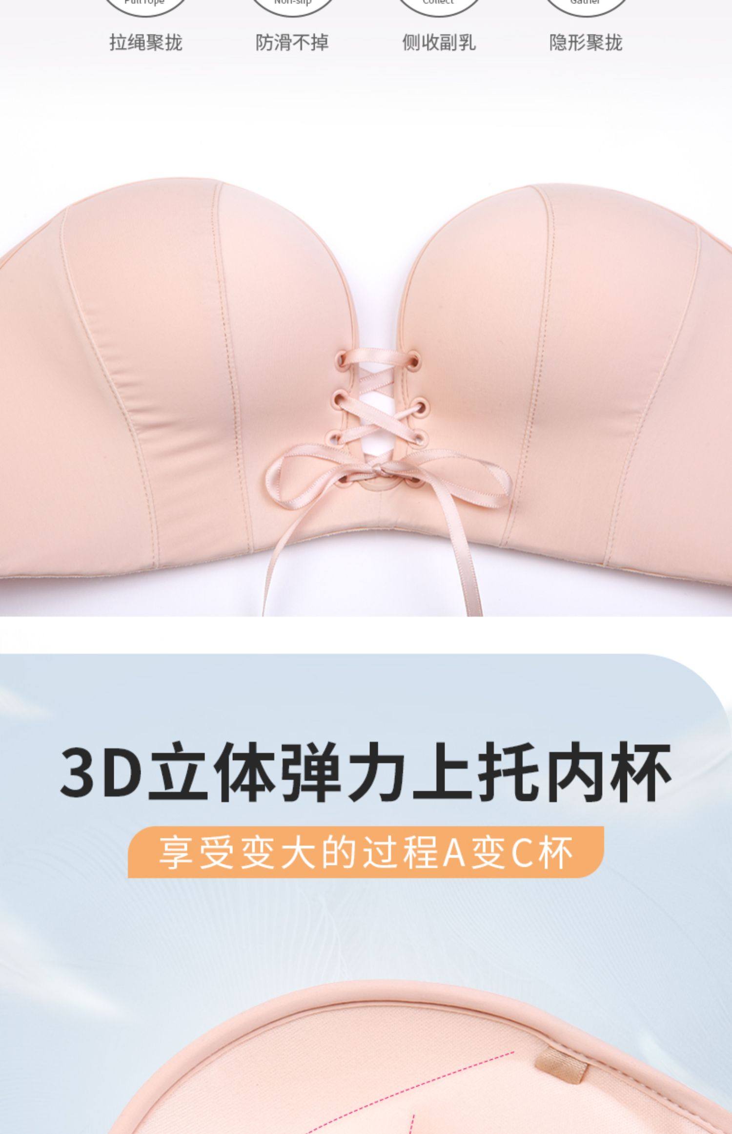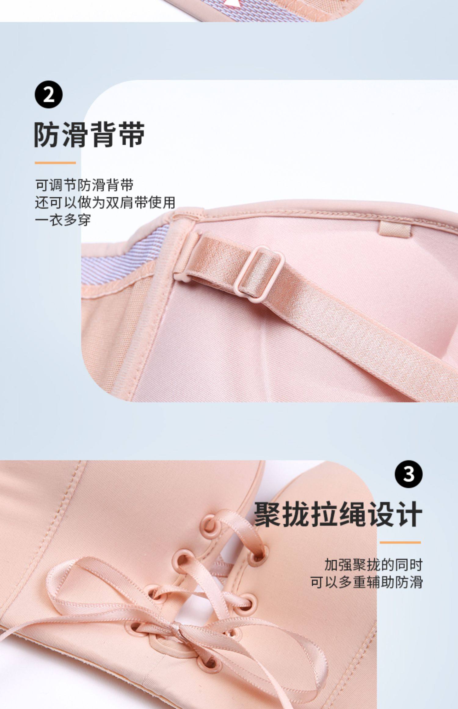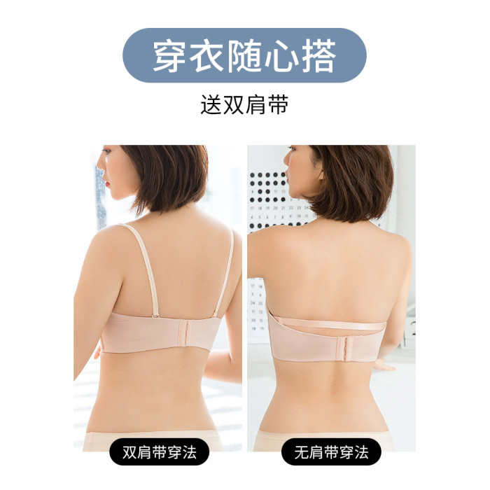 無肩帶內衣女小胸聚攏防滑上托抹胸婚紗用大胸隱形加厚美背文胸貼