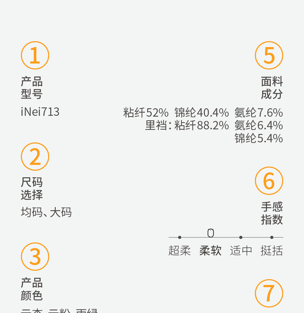 | 材質成分 | 粘膠纖維(粘纖)52% 聚醯胺纖維(錦綸)40.4% 聚氨酯彈性纖維(氨綸)7.6% |