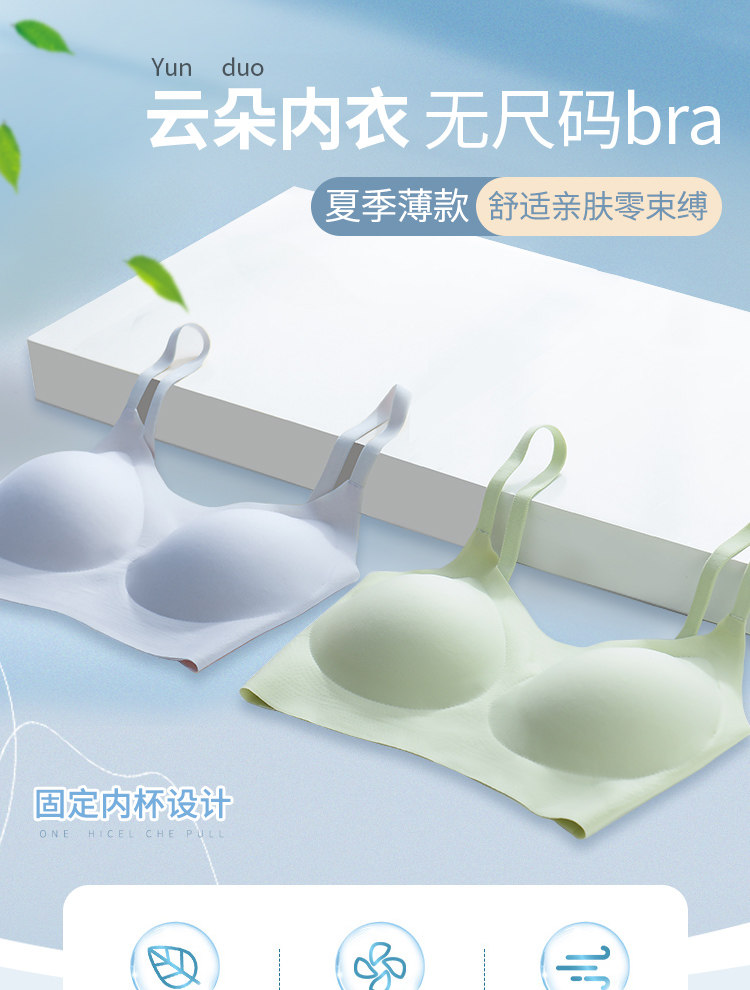 雲朵無尺碼無痕內衣女夏季薄款大胸顯小胸胸罩抹胸運動背心式文胸