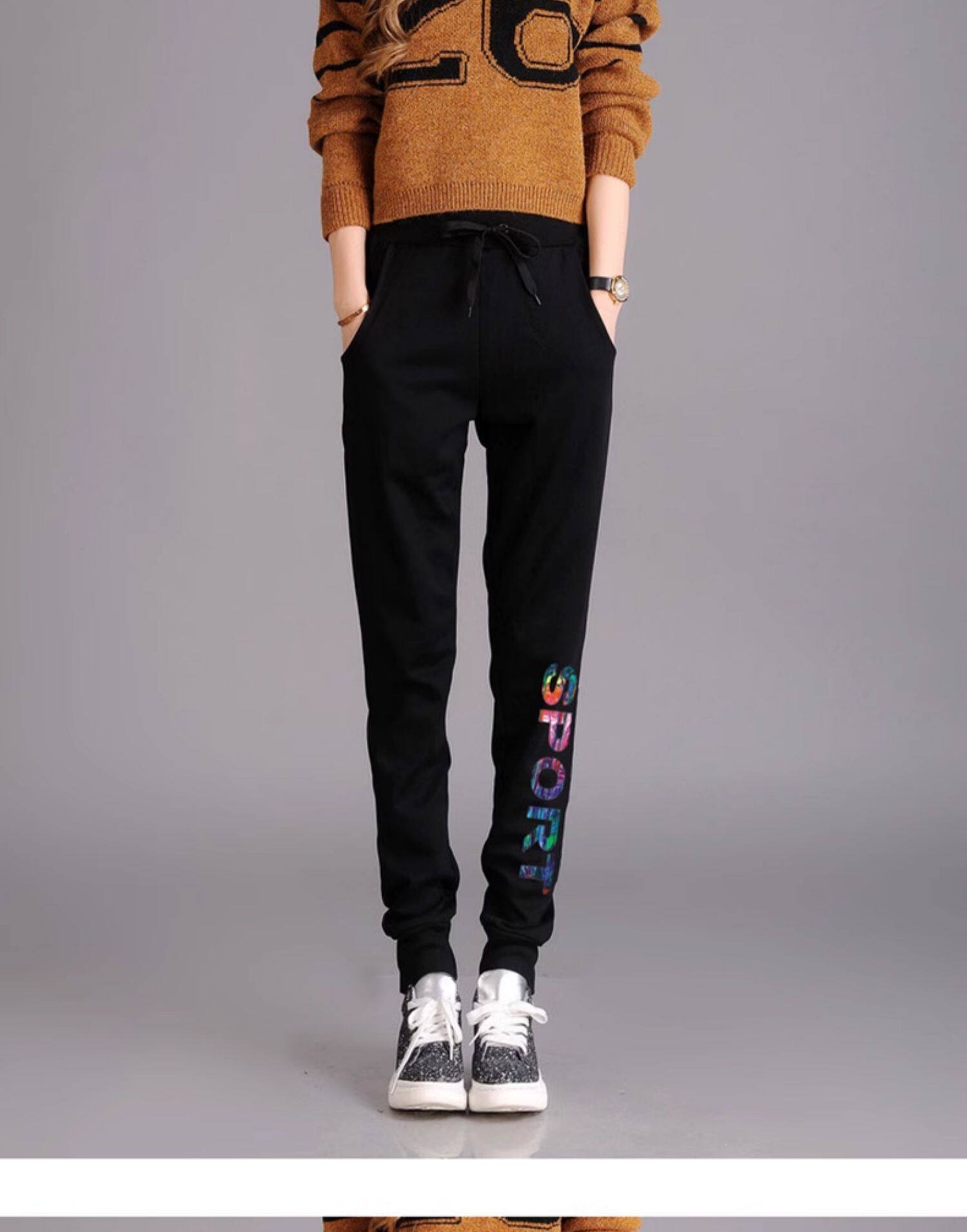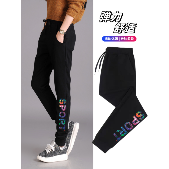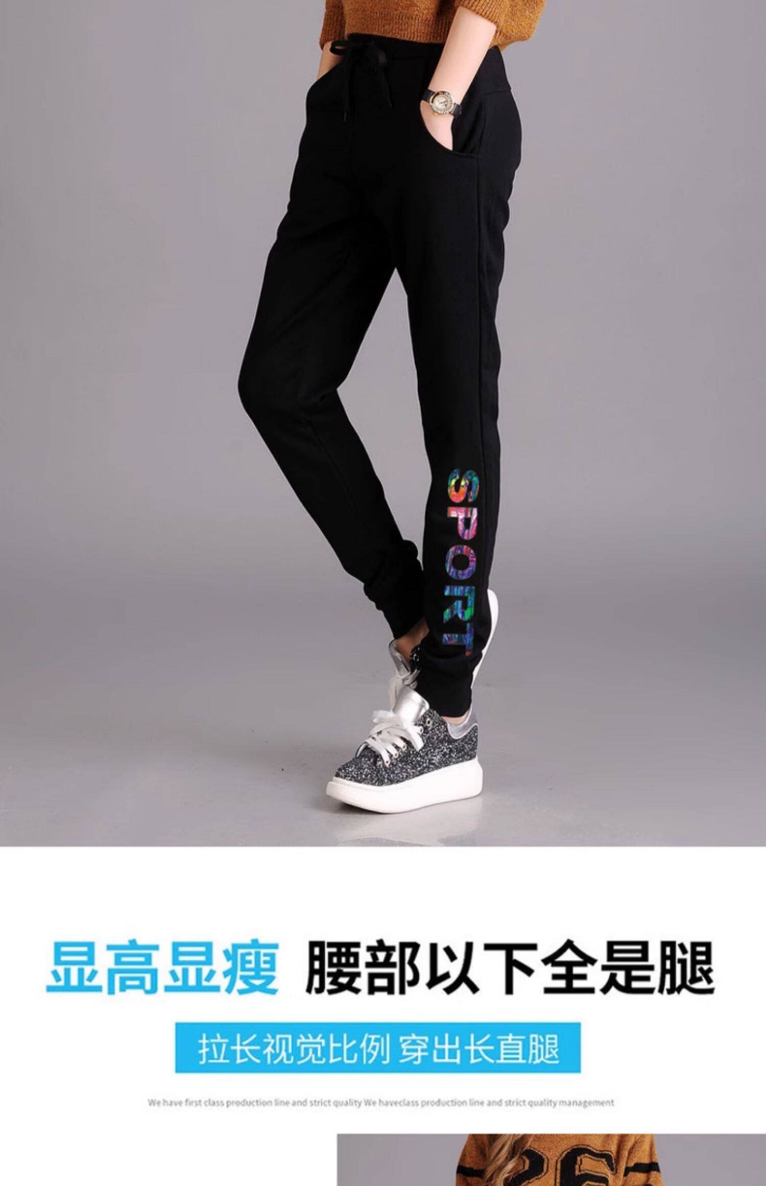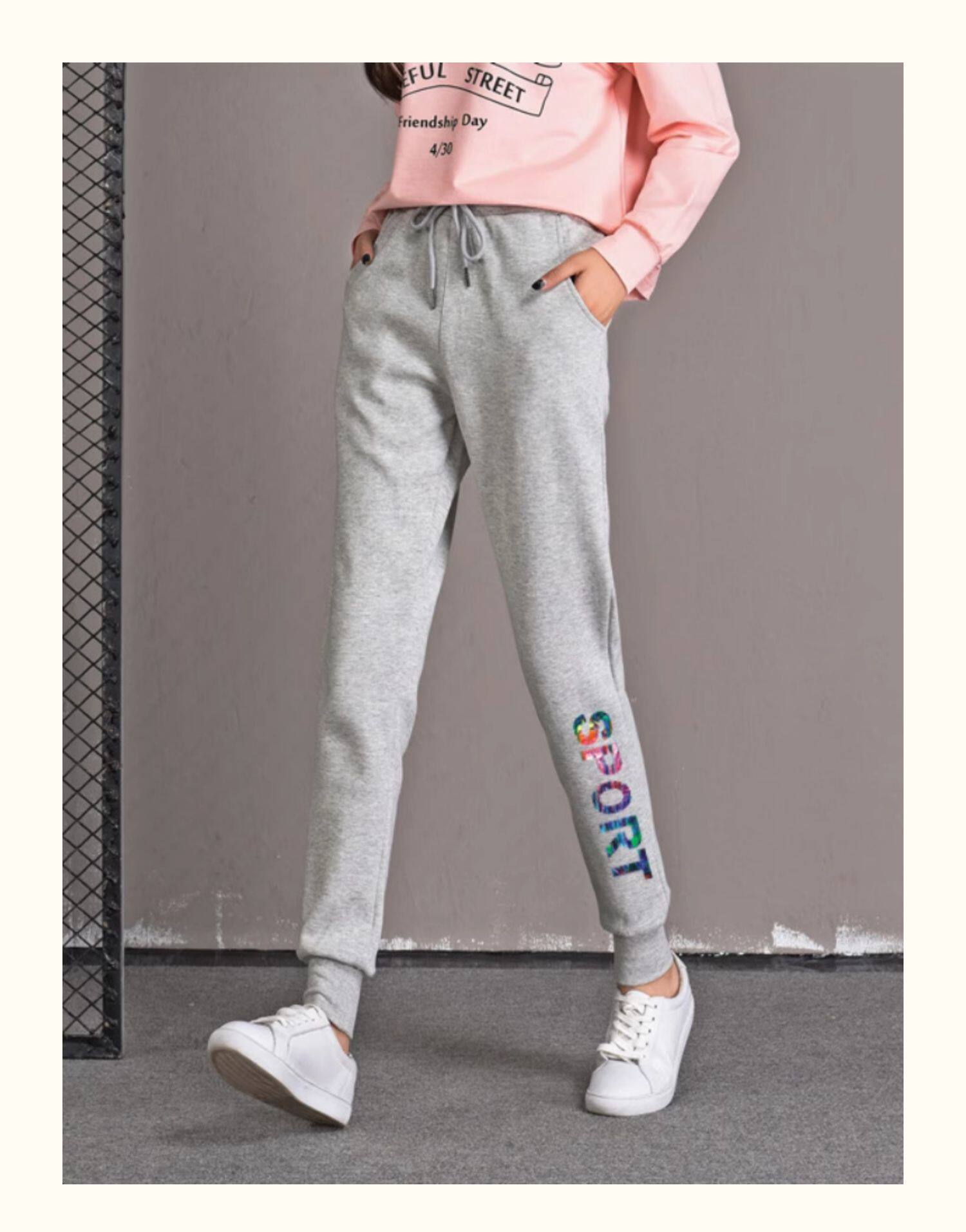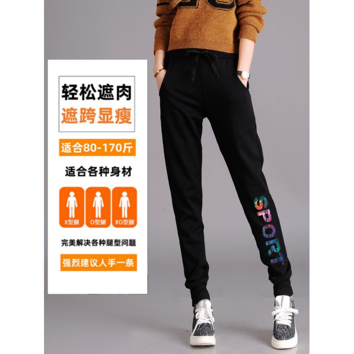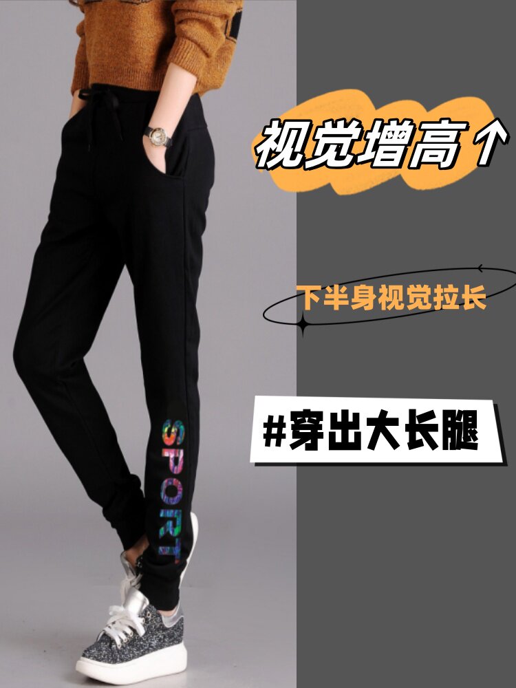 秋冬款運動褲女加絨長褲高腰顯瘦寬鬆衛褲跑步收口休閒純棉小腳褲