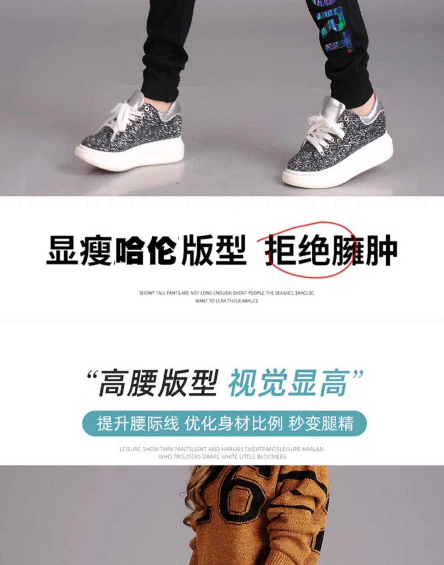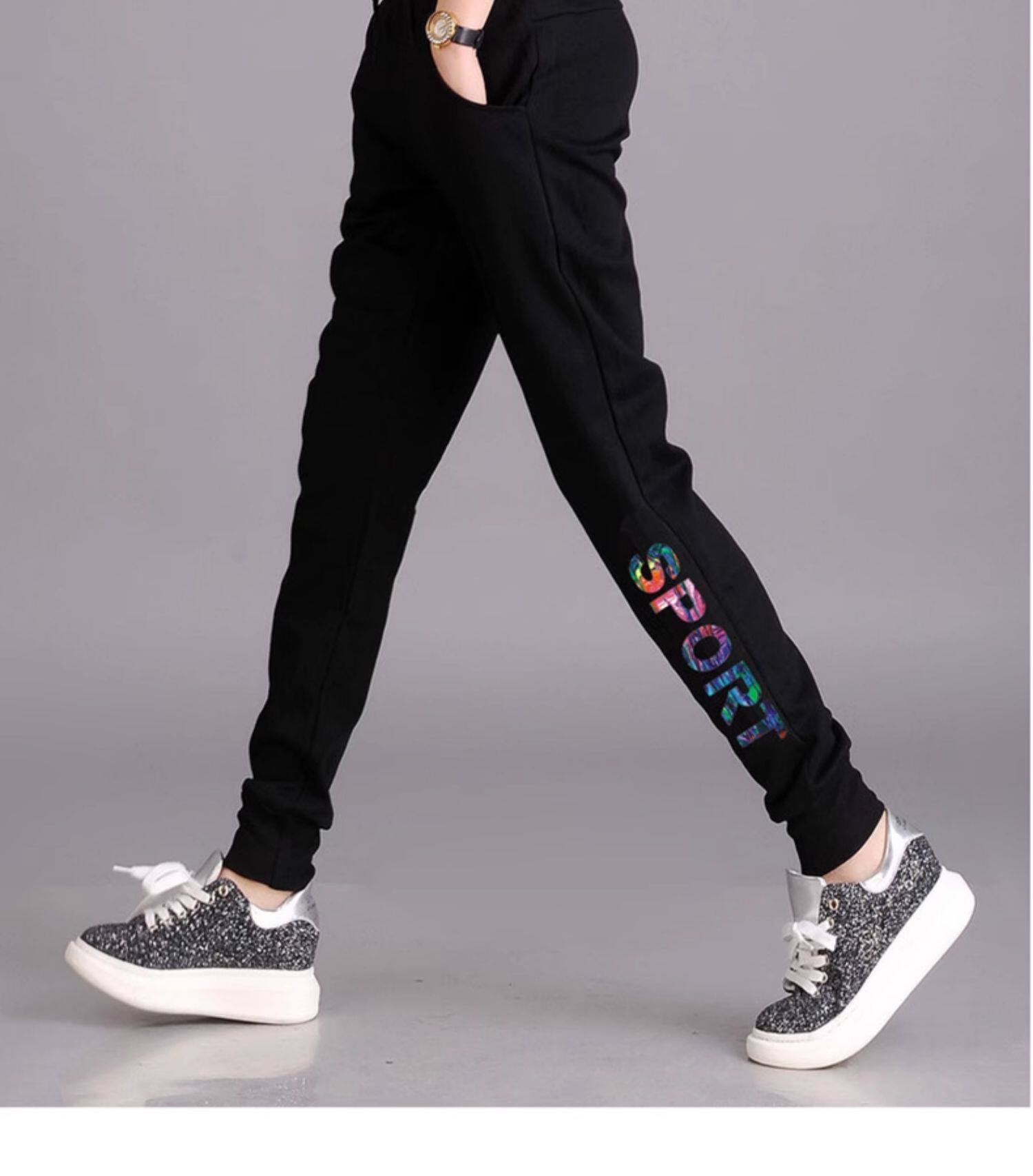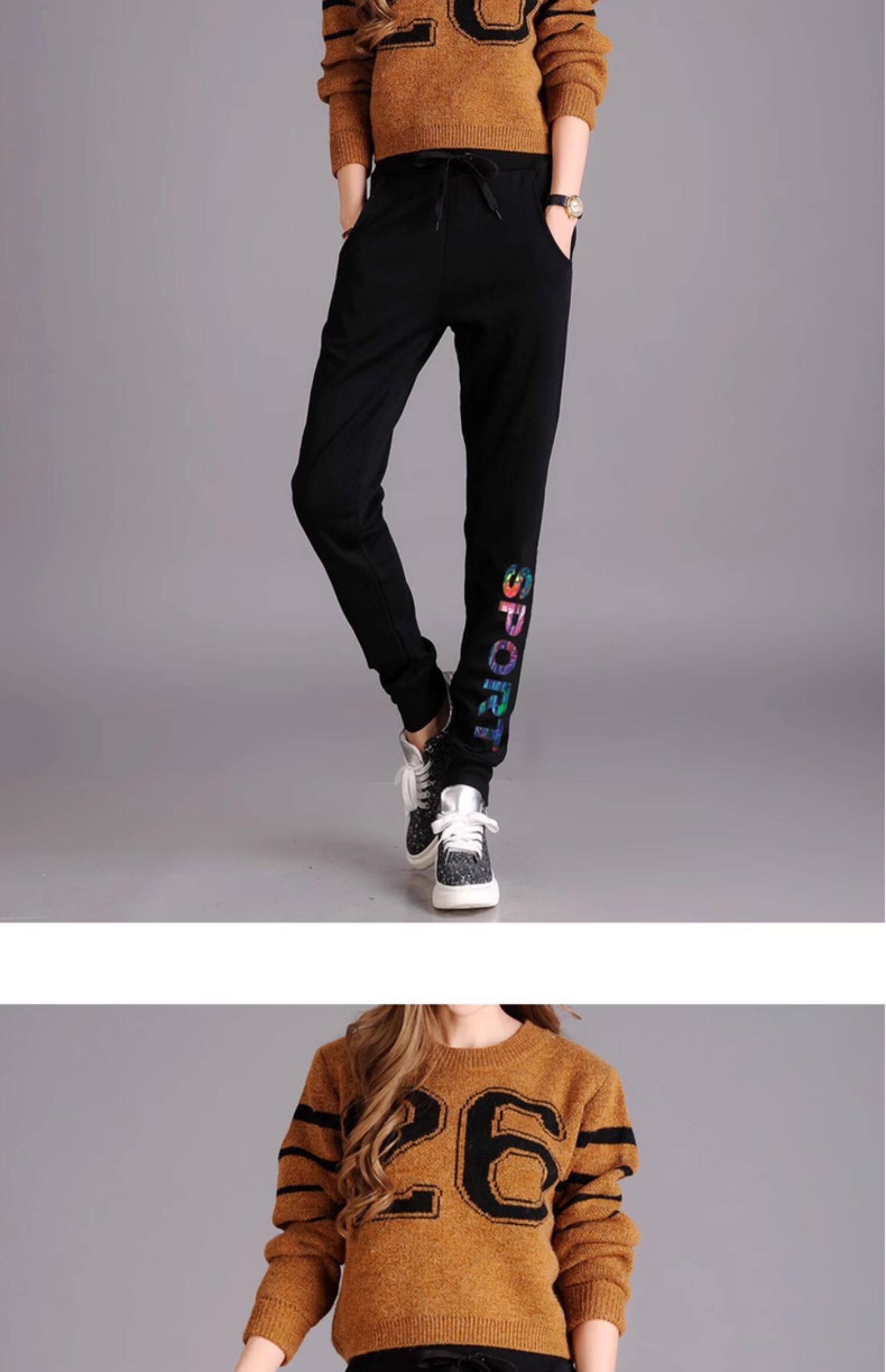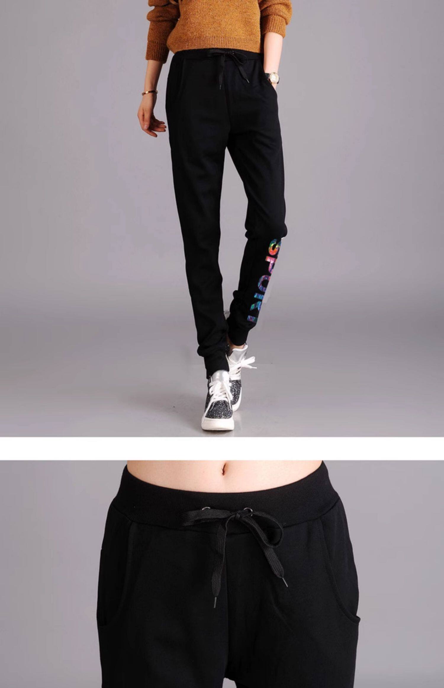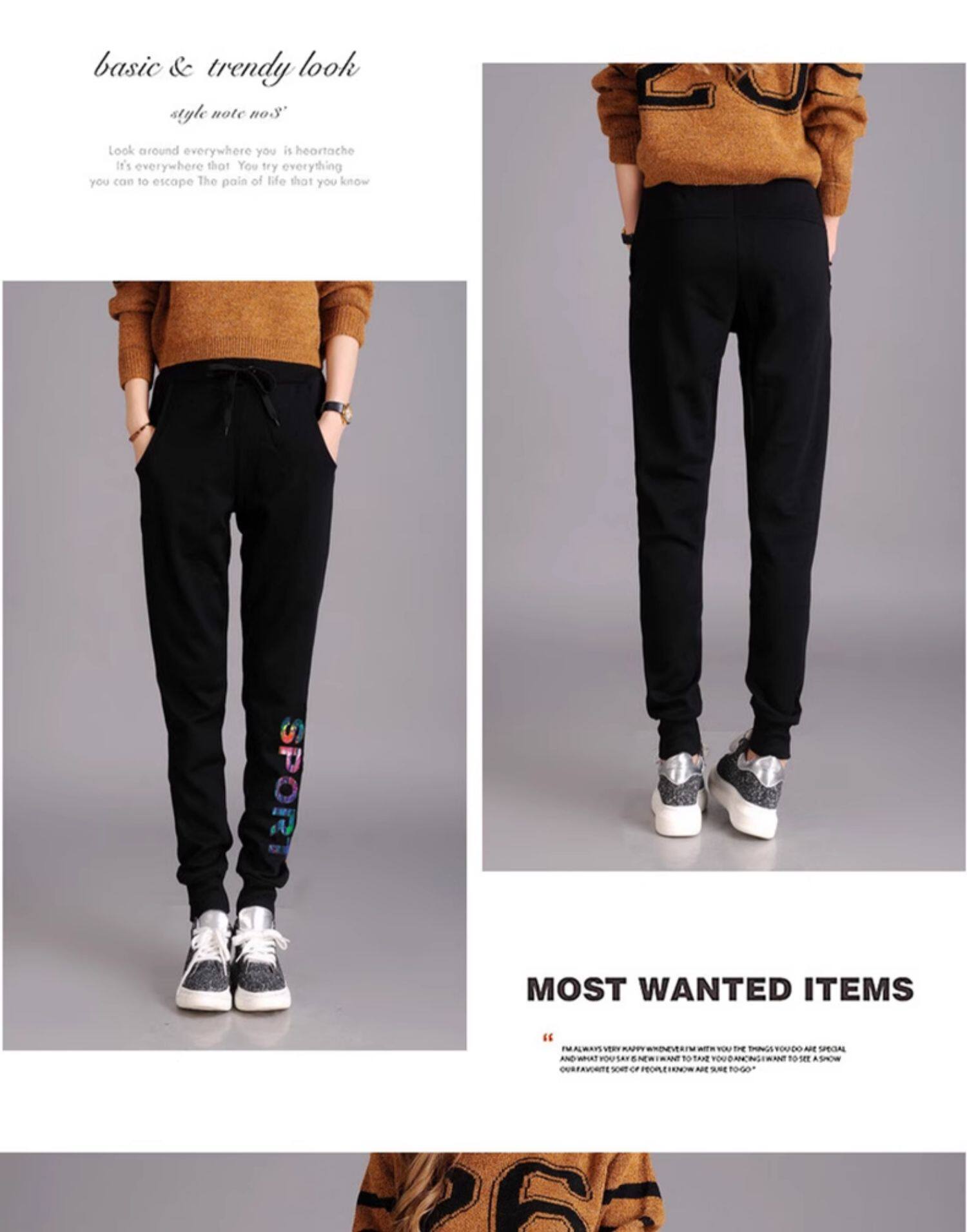 秋冬款運動褲女加絨長褲高腰顯瘦寬鬆衛褲跑步收口休閒純棉小腳褲