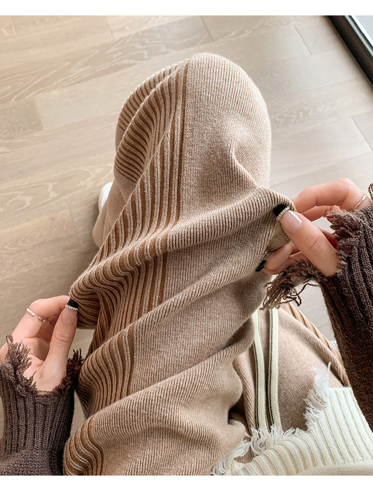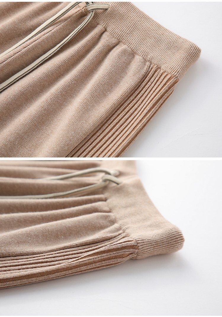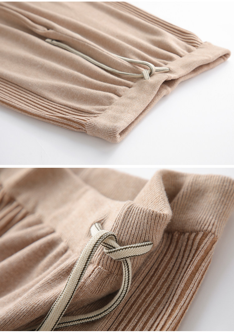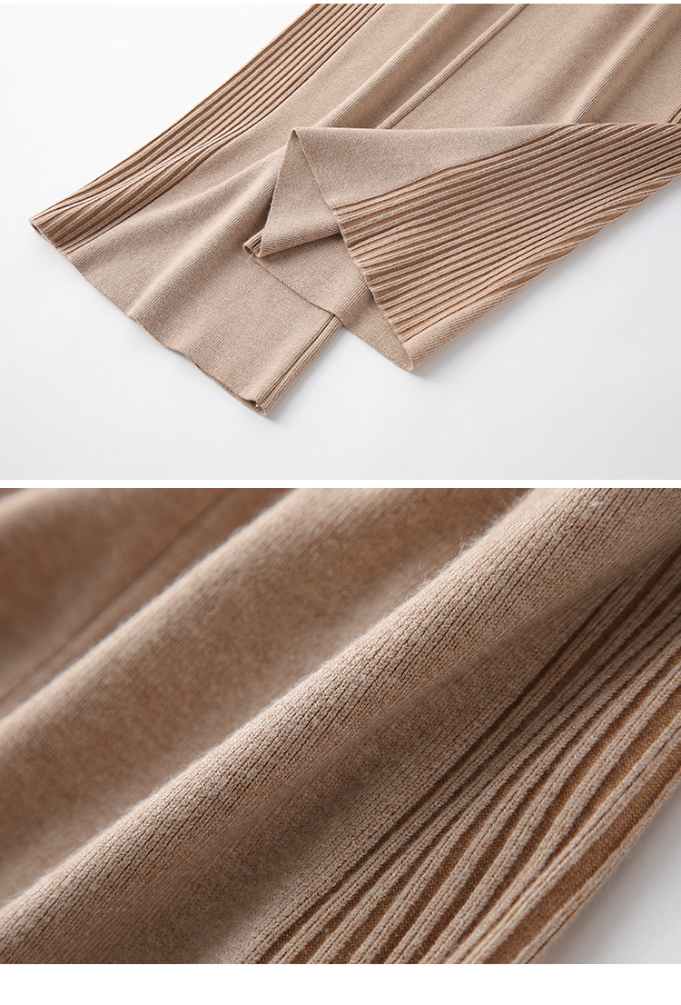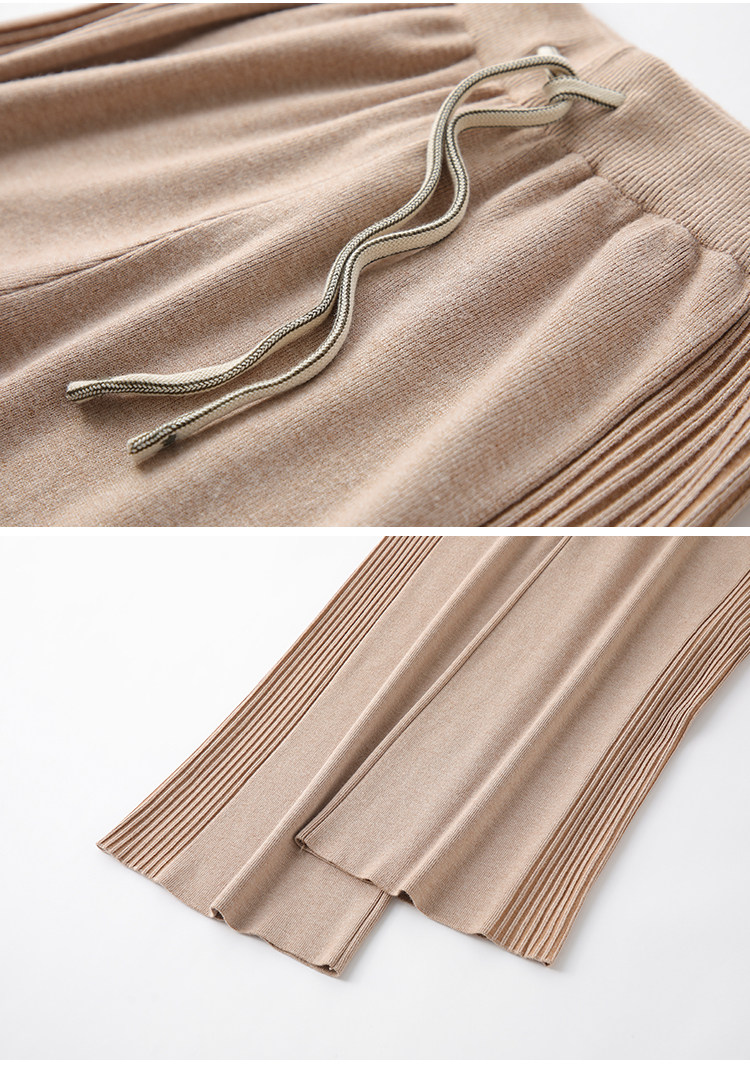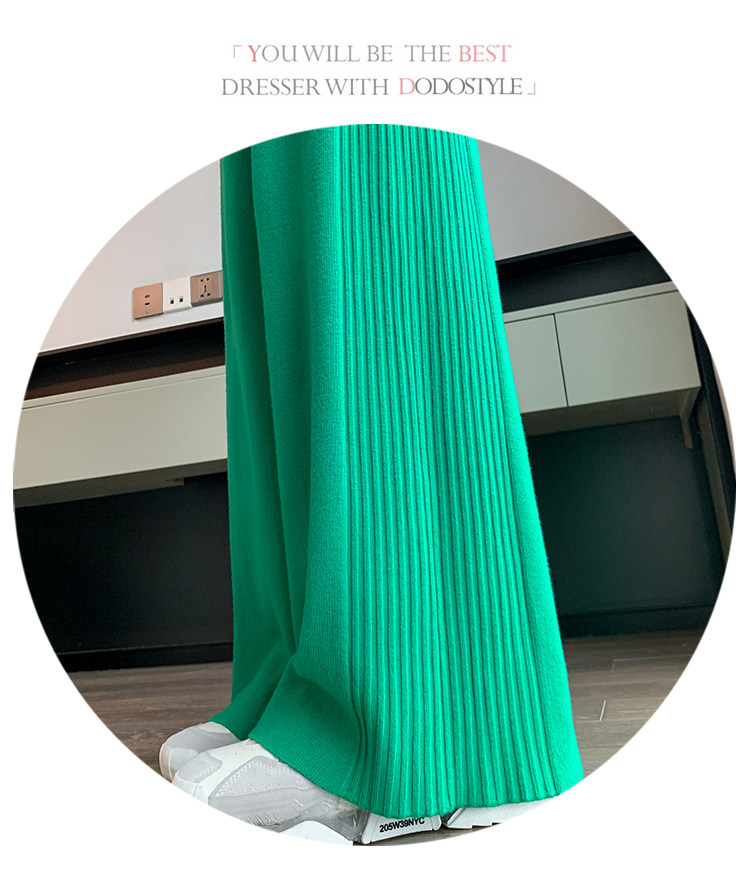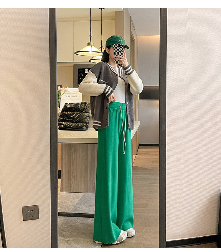設計感側邊壓褶坑條針織濶腿褲女秋冬加厚垂感寬鬆顯瘦拖地休閒褲