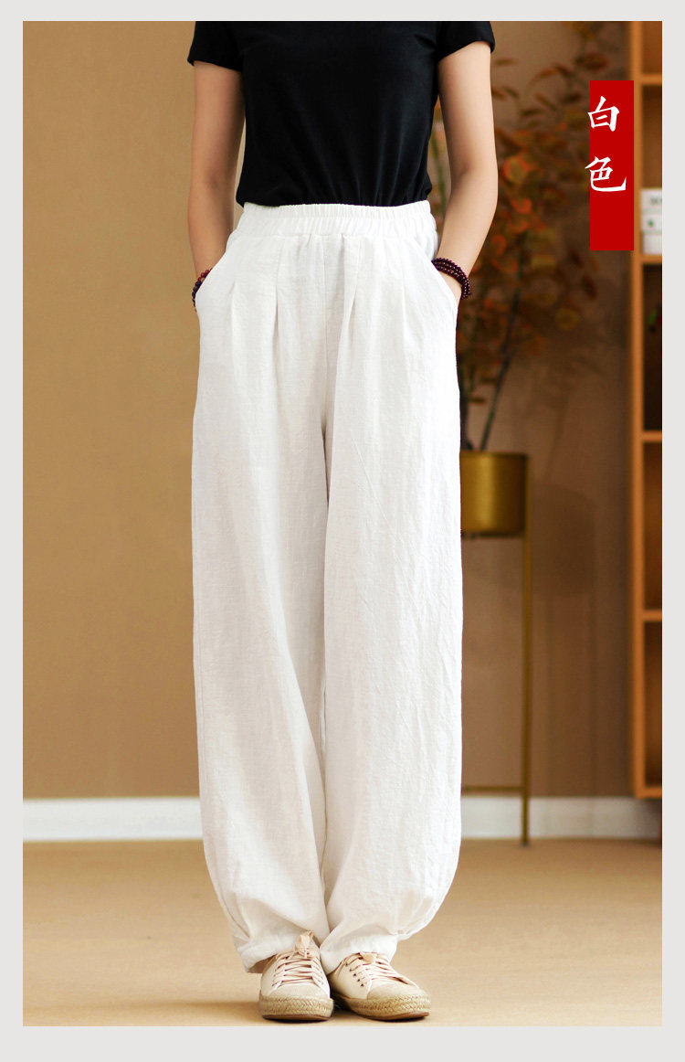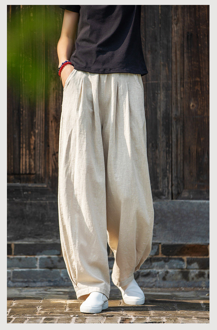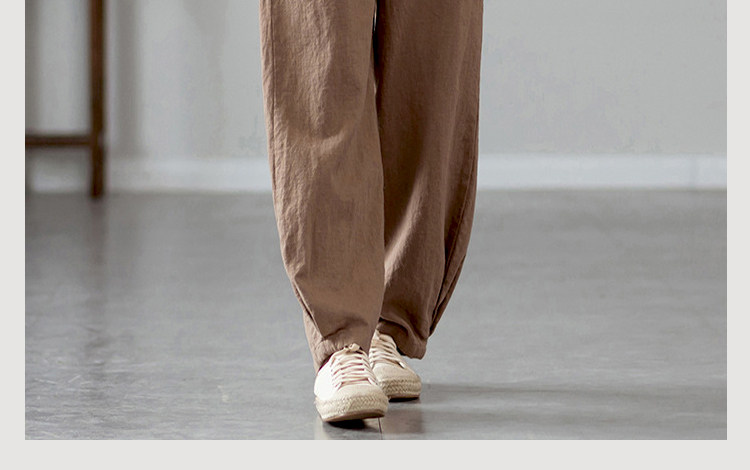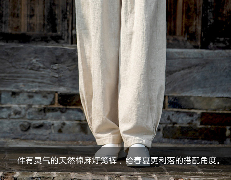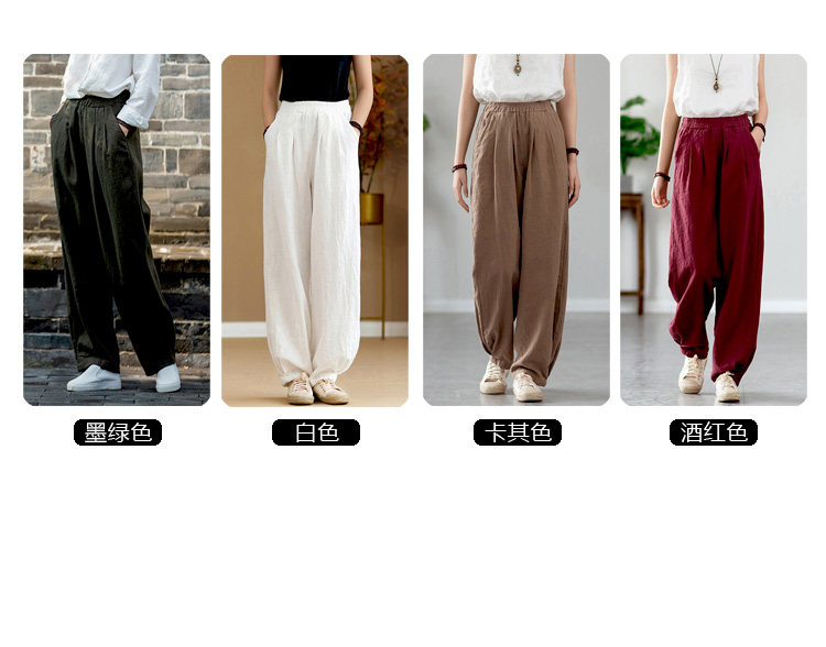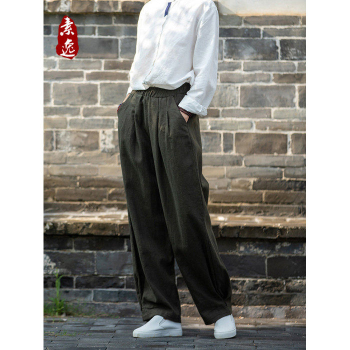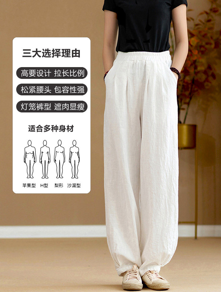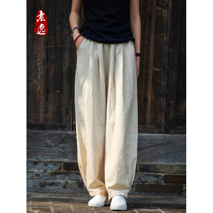 2025秋冬高級棉麻禪意文藝寬鬆顯瘦休閒長褲女亞麻燈籠褲太極褲