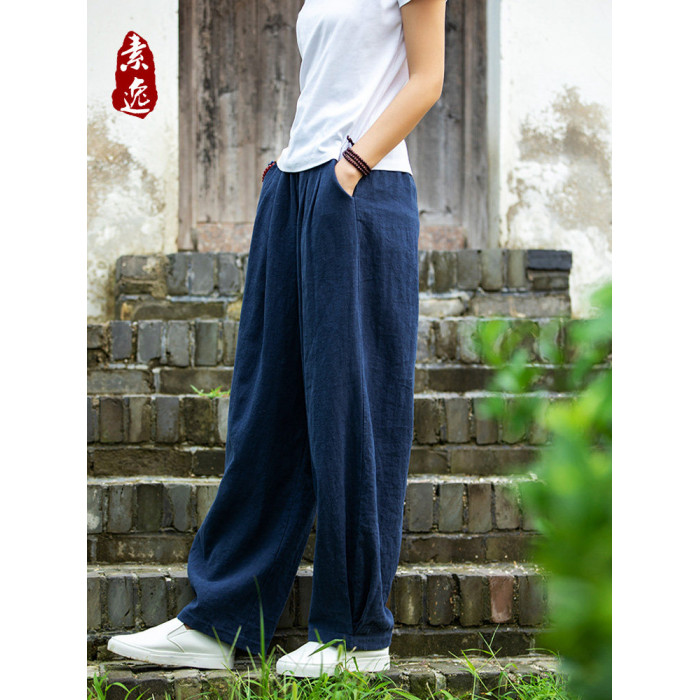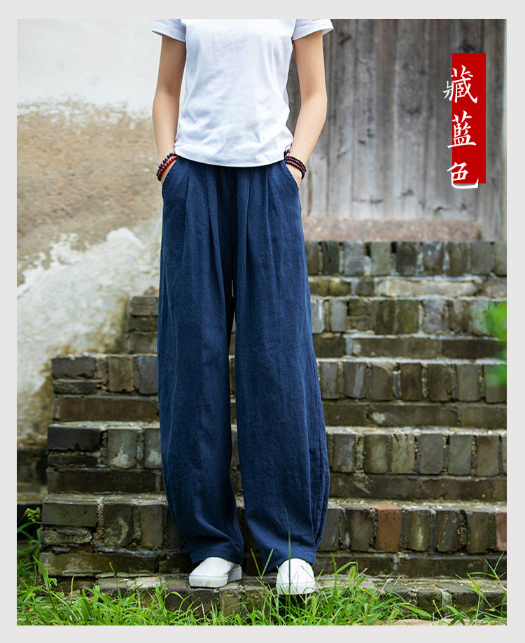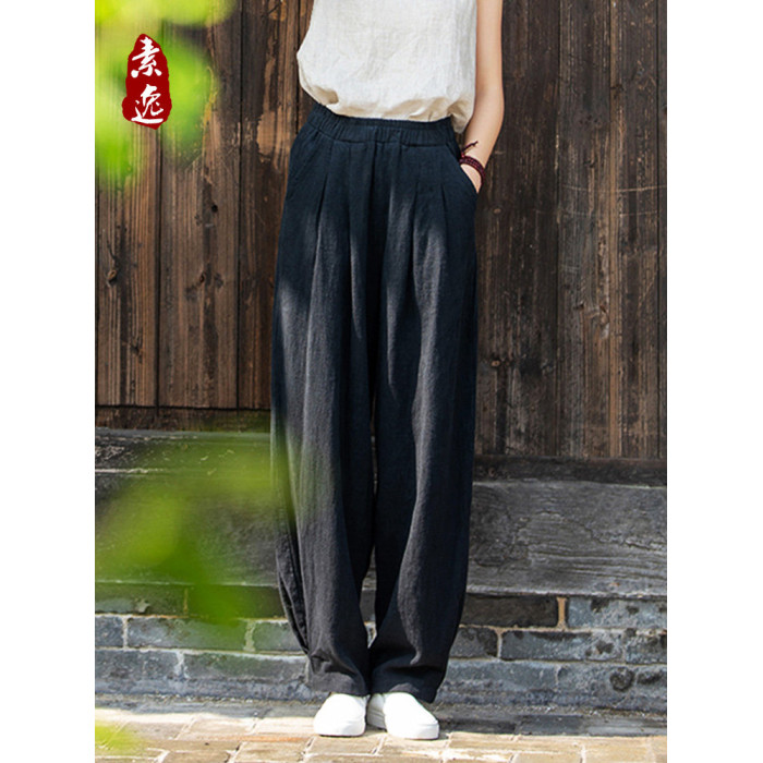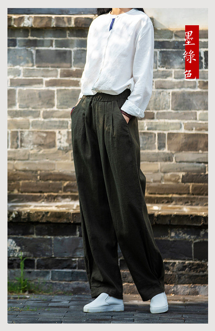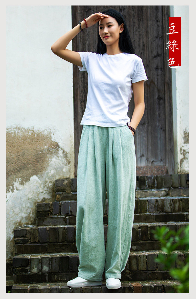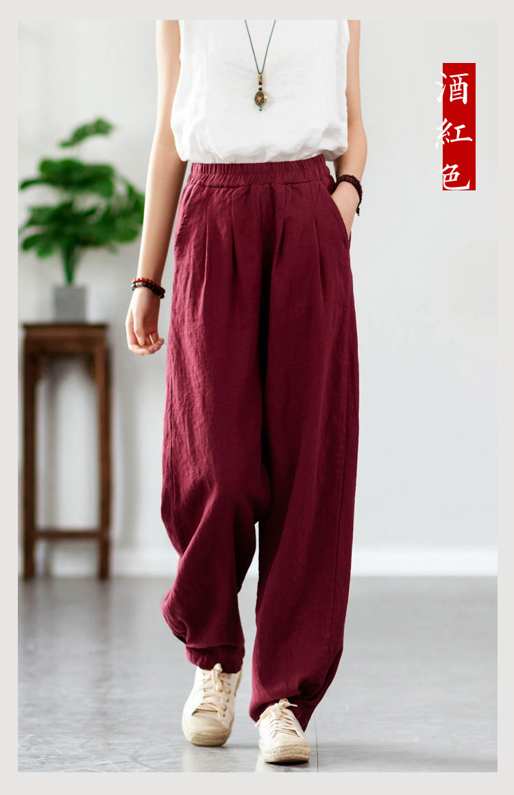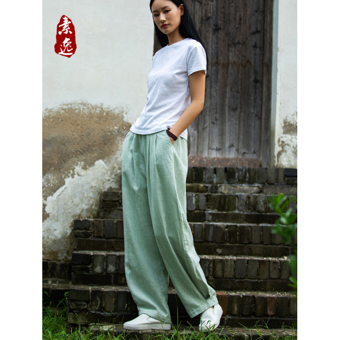 2025秋冬高級棉麻禪意文藝寬鬆顯瘦休閒長褲女亞麻燈籠褲太極褲