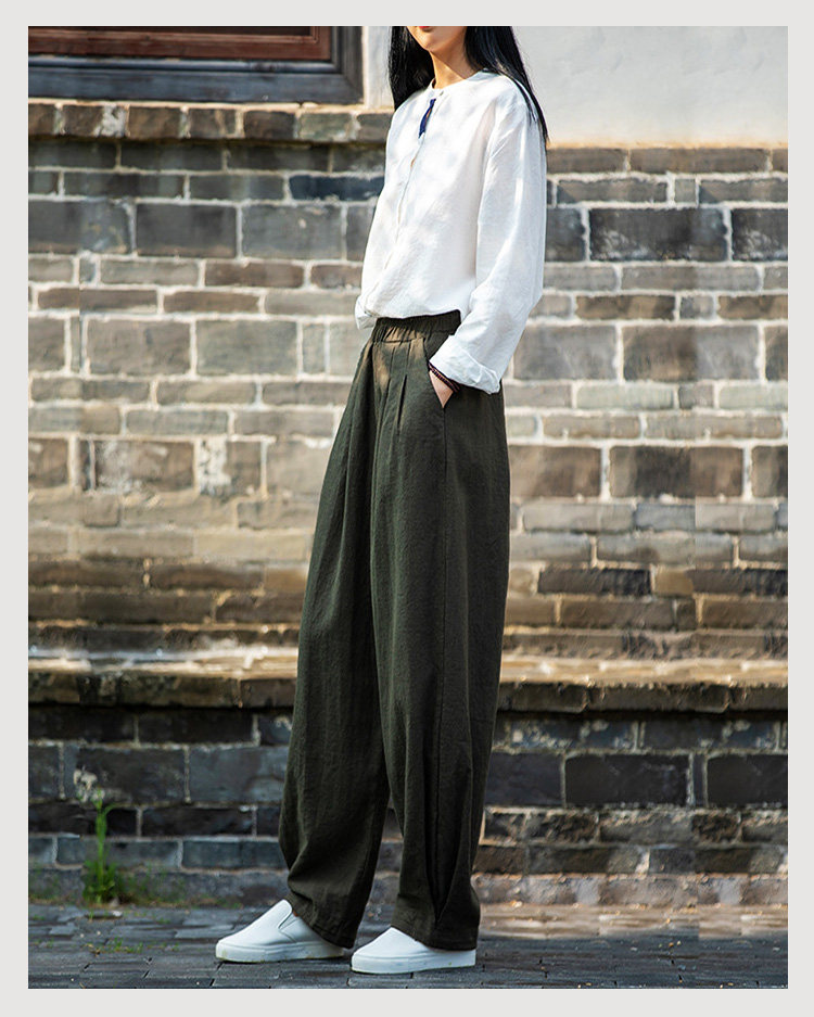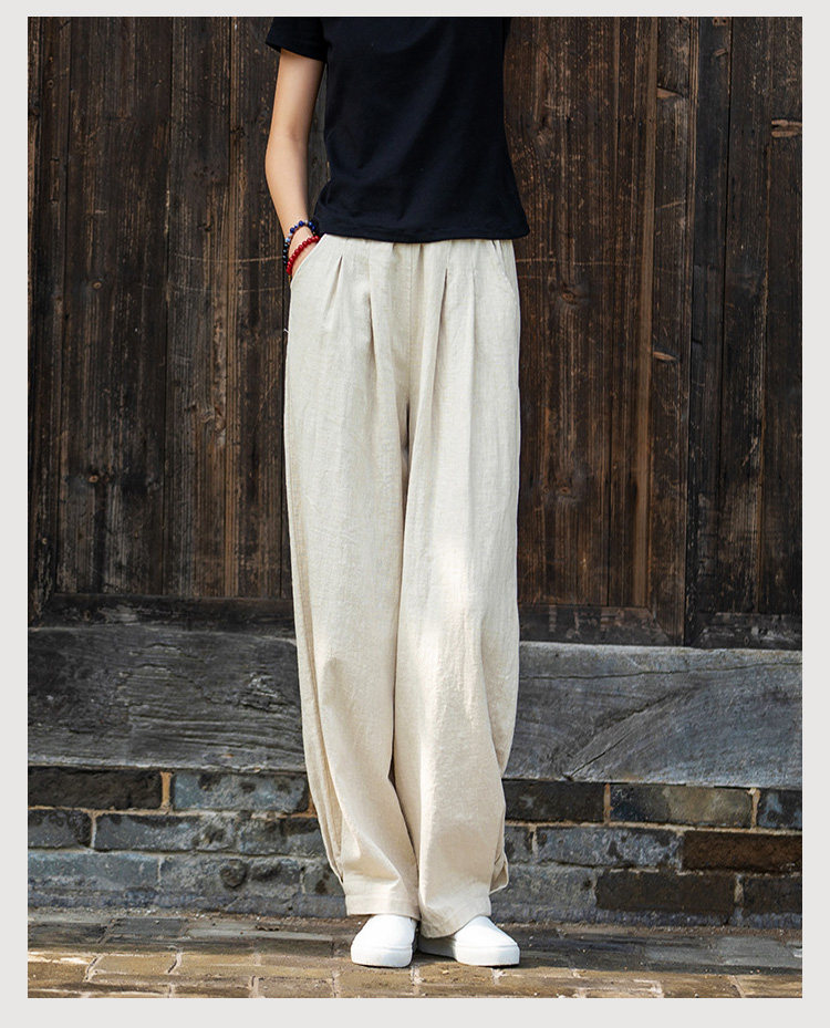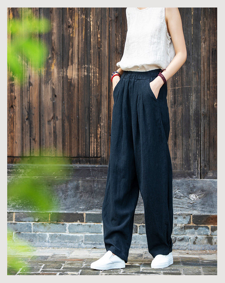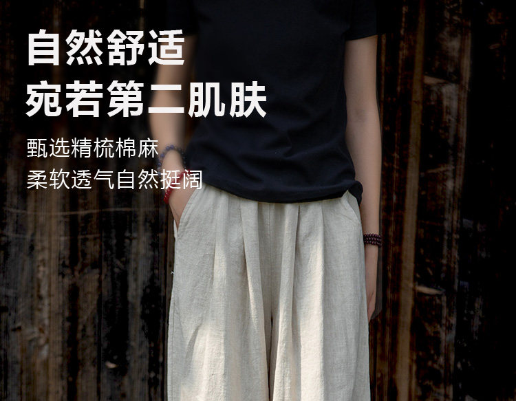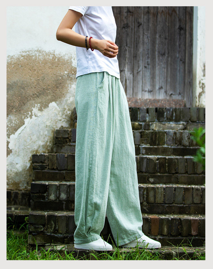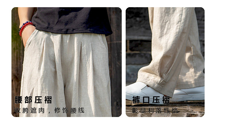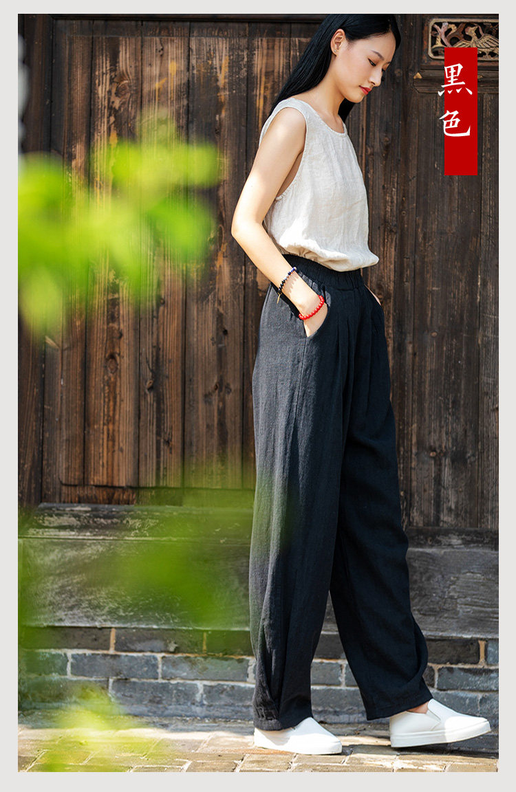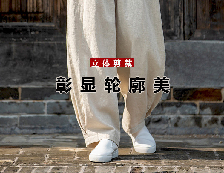 2025秋冬高級棉麻禪意文藝寬鬆顯瘦休閒長褲女亞麻燈籠褲太極褲