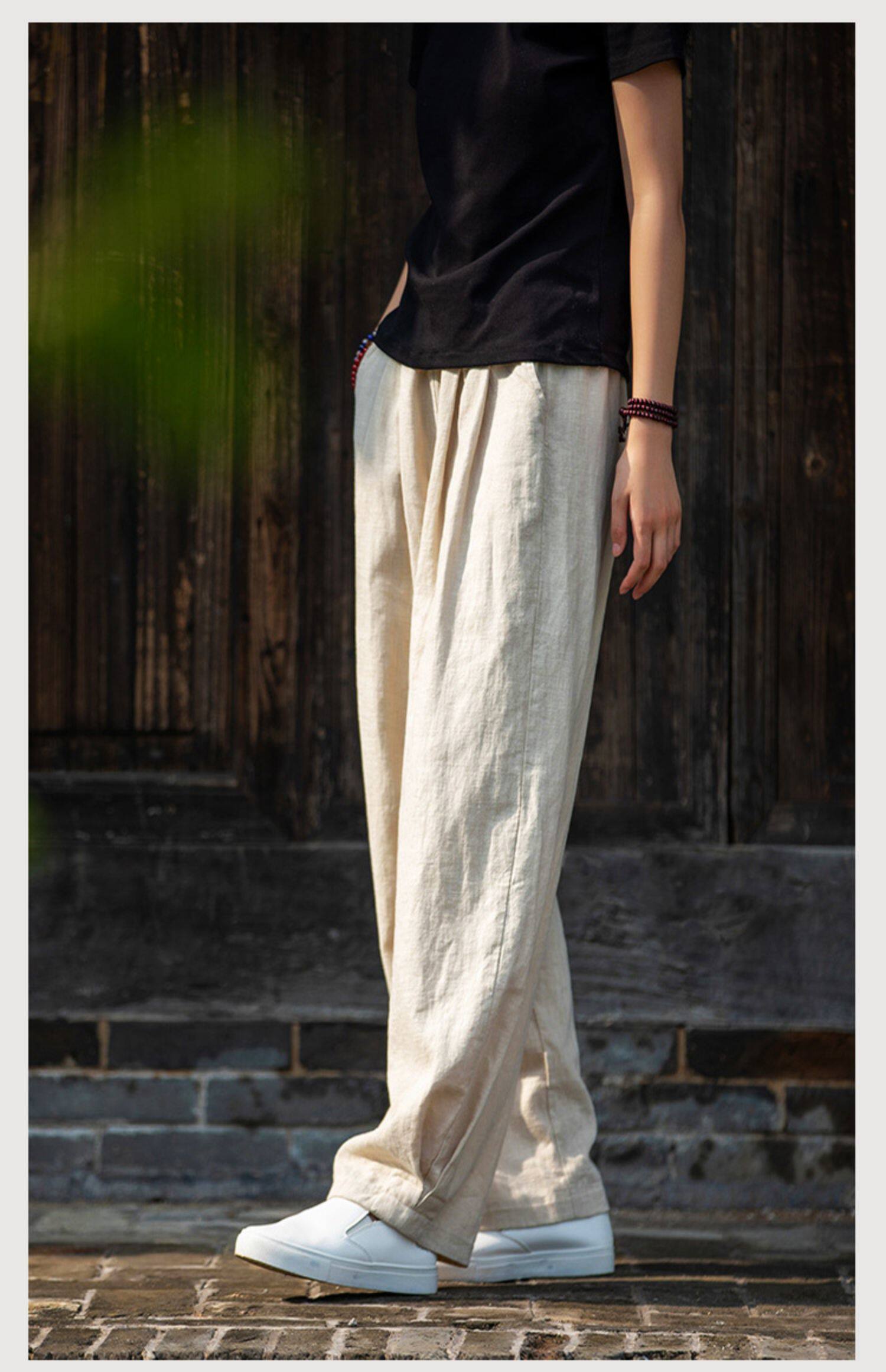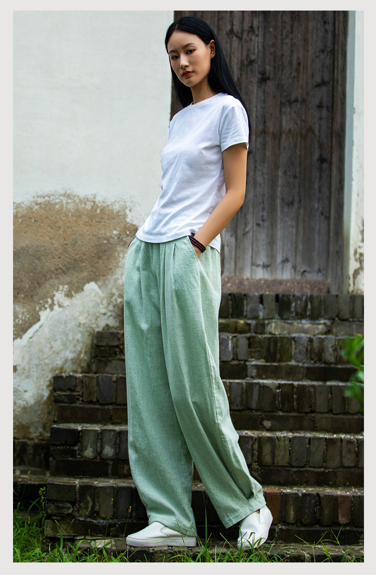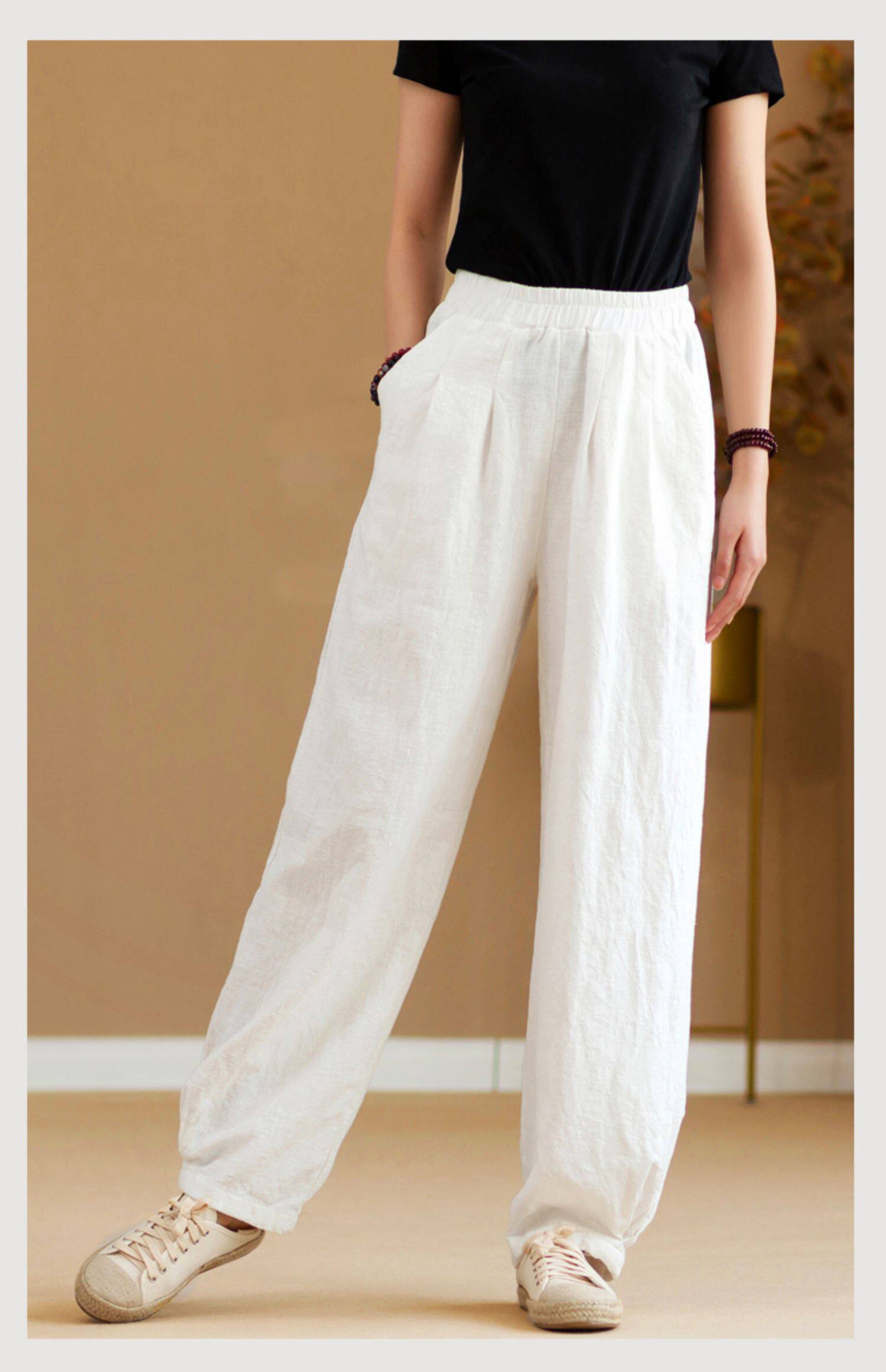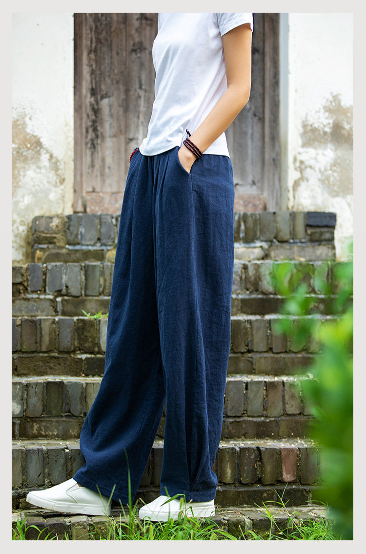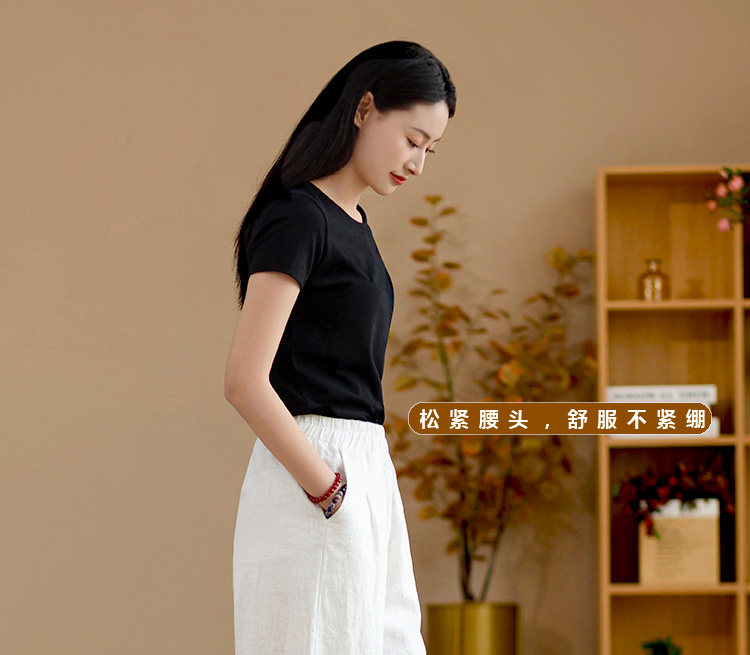 2025秋冬高級棉麻禪意文藝寬鬆顯瘦休閒長褲女亞麻燈籠褲太極褲