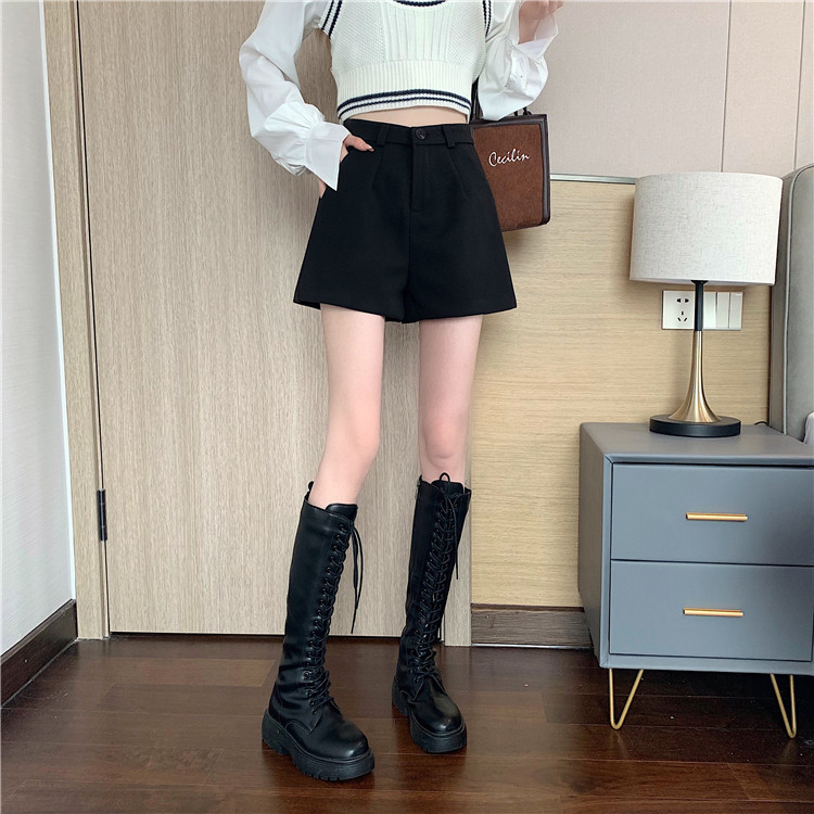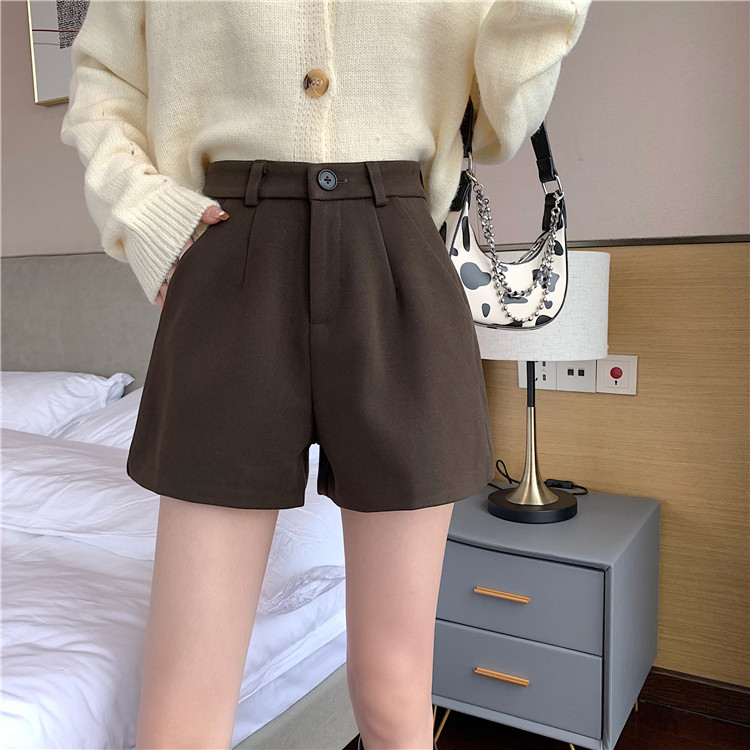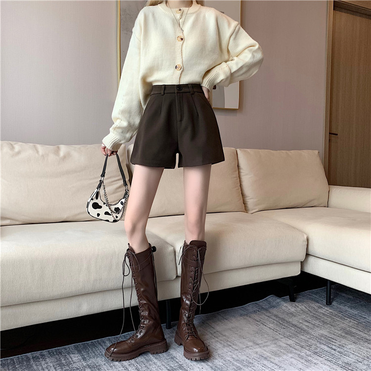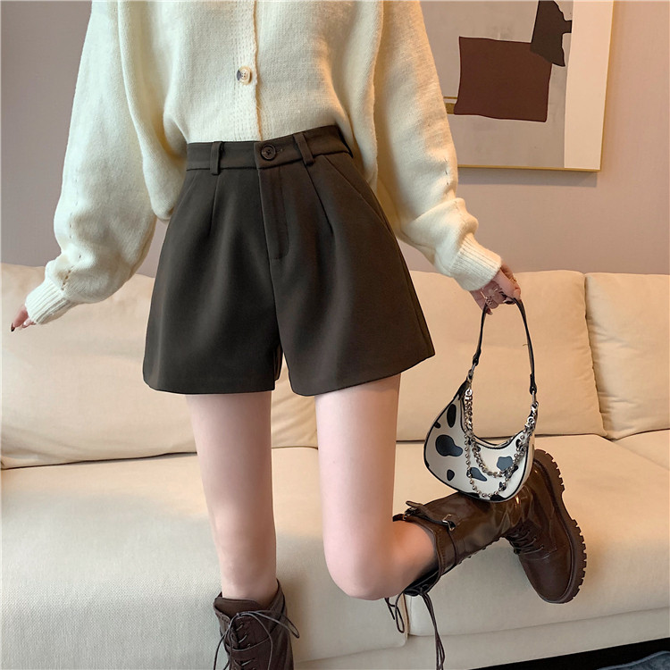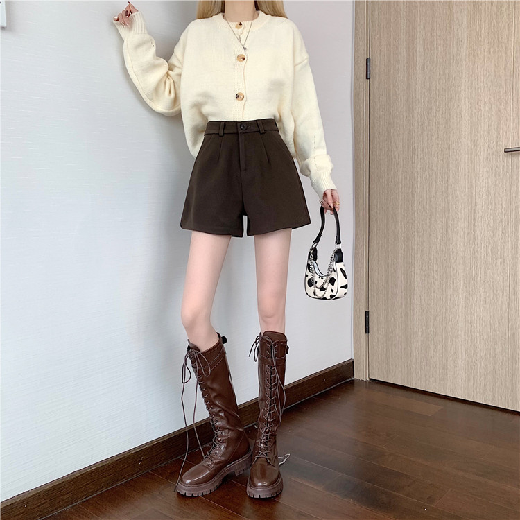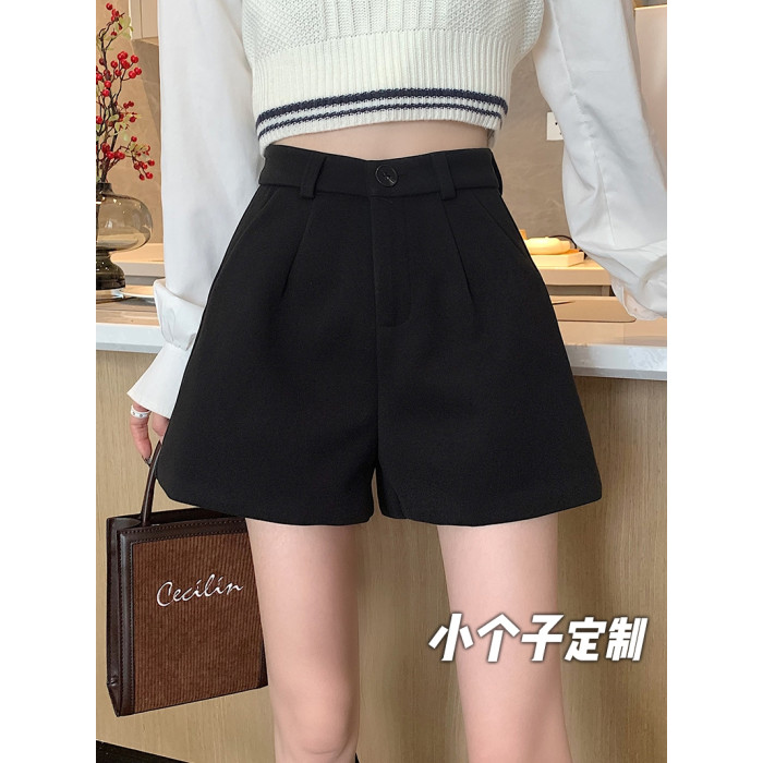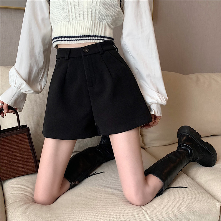 150瘦小個子毛呢短褲女145高腰a字直筒濶腿xs顯高穿搭配靴褲秋冬