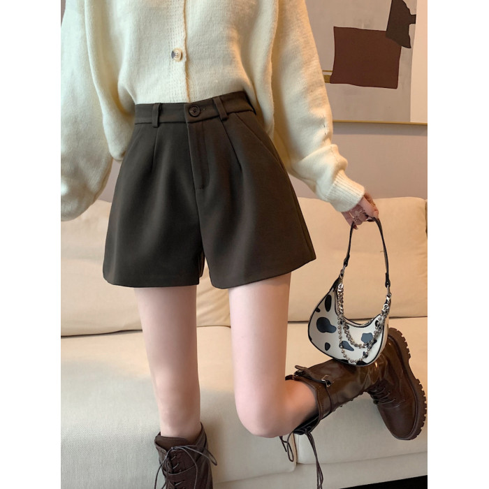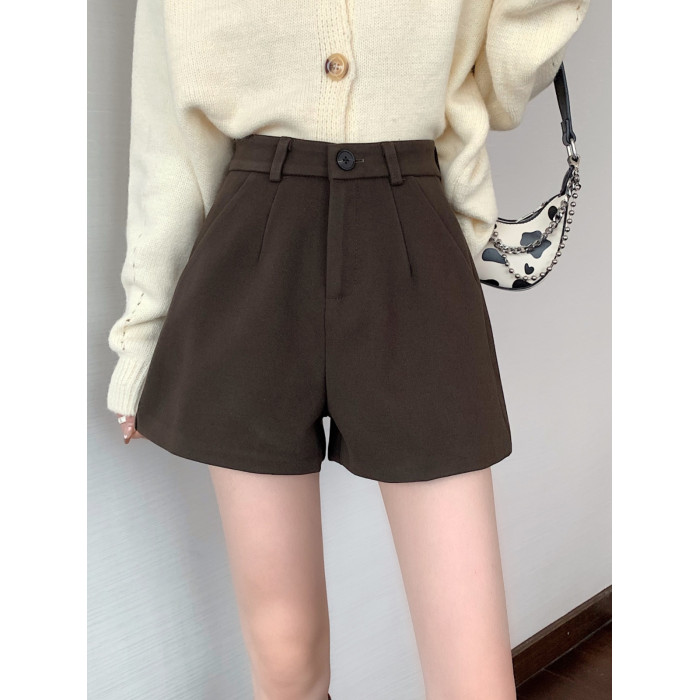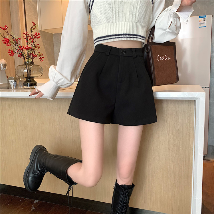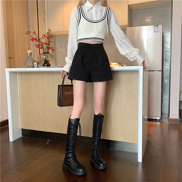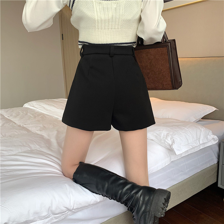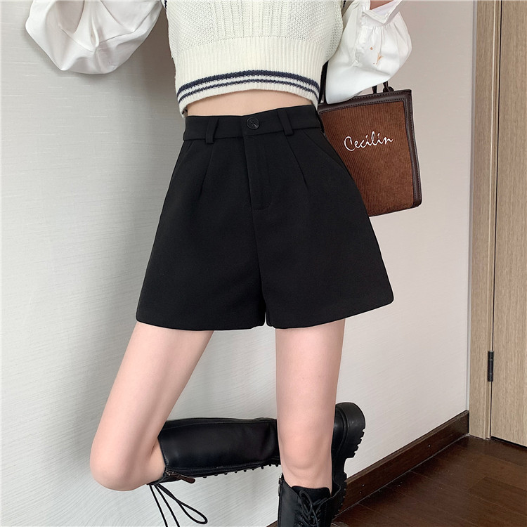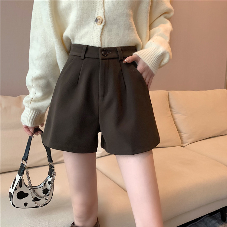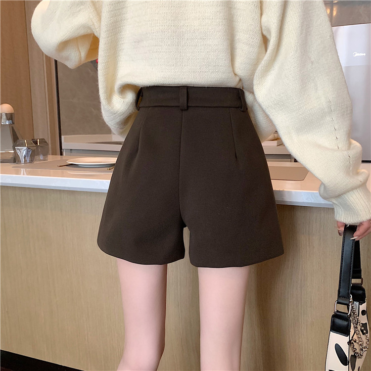 150瘦小個子毛呢短褲女145高腰a字直筒濶腿xs顯高穿搭配靴褲秋冬