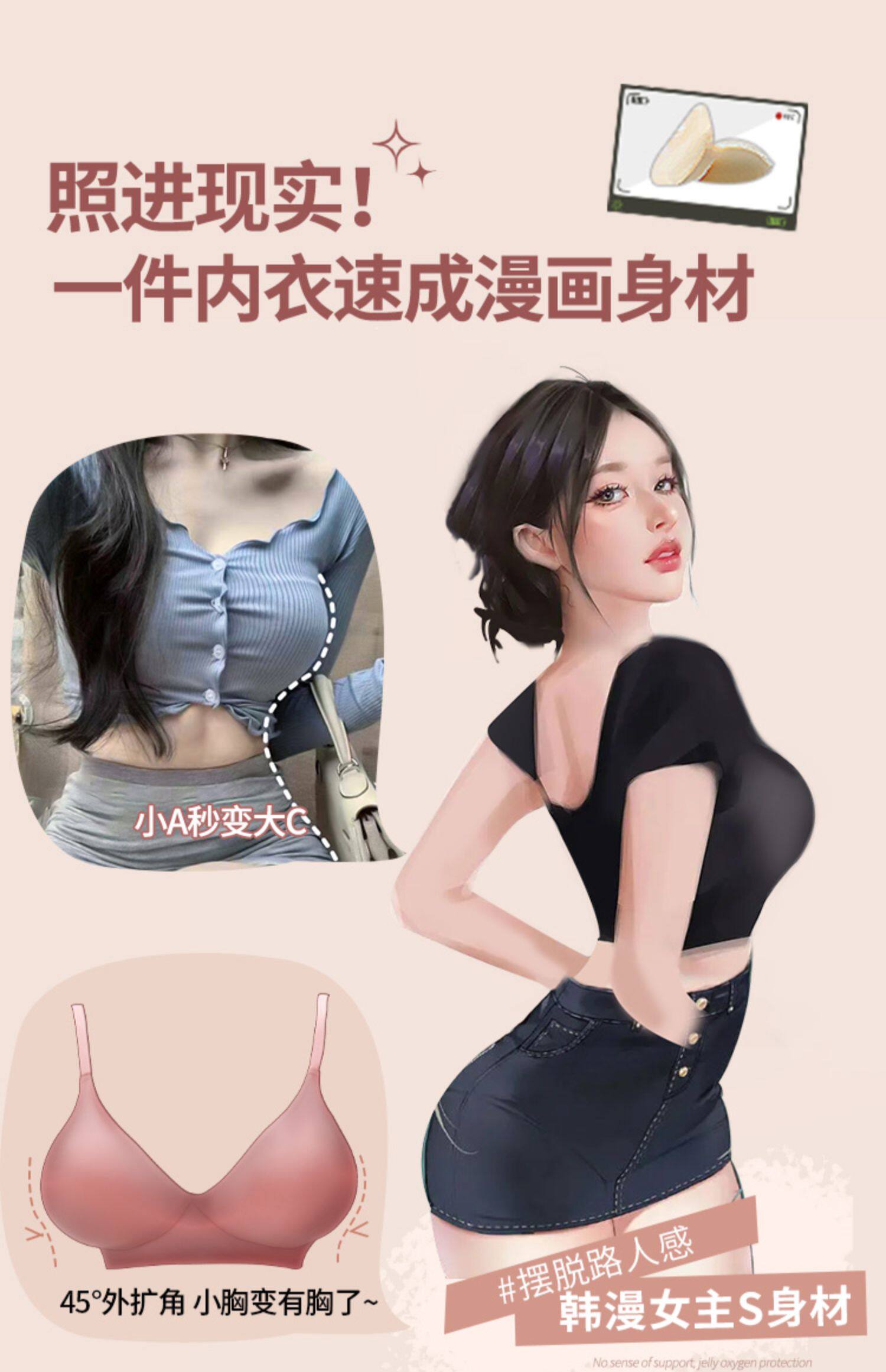 韓國外擴漫畫型圓胸內衣女小胸聚攏加厚顯胸大顯腰細防下垂文胸罩