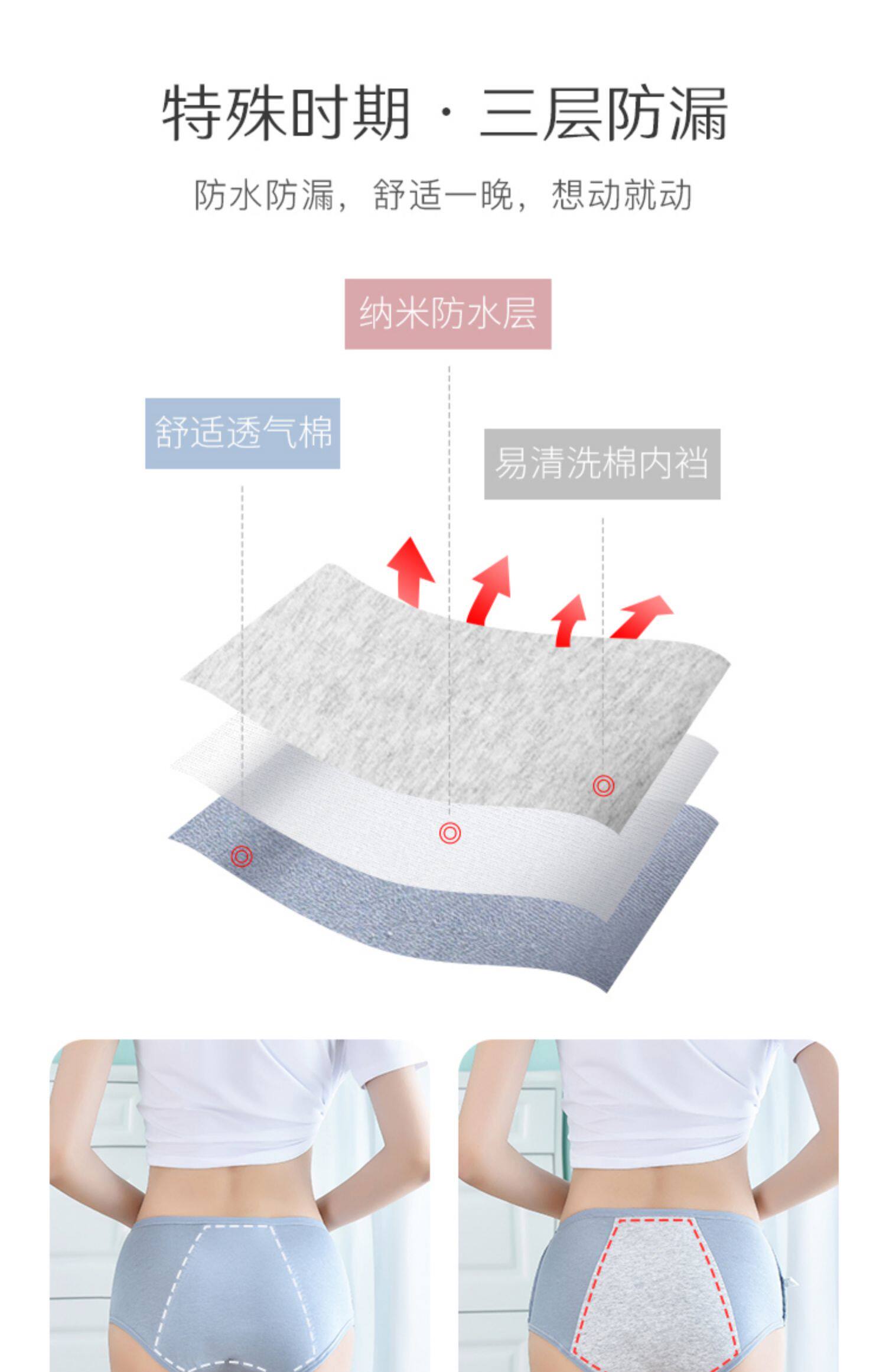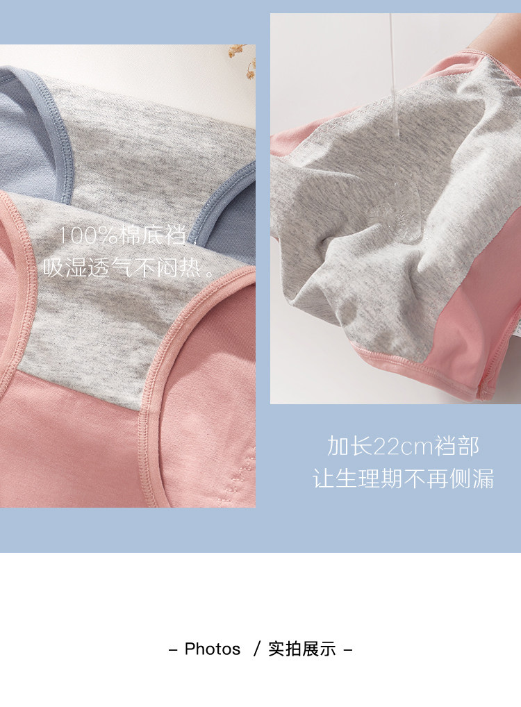 4條裝 生理內褲女士中腰月經期專用透氣防漏純棉抗菌大姨媽衛生褲