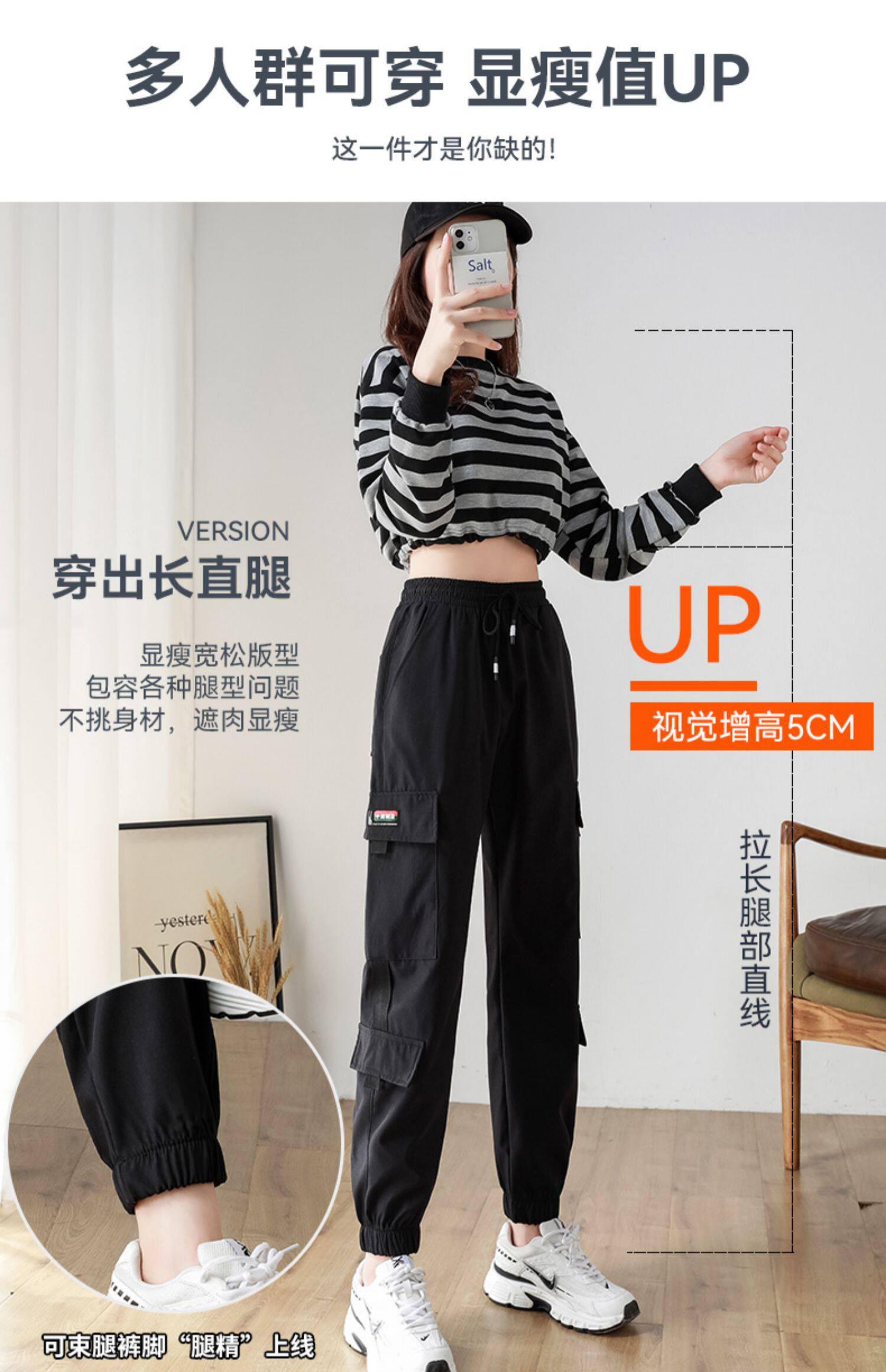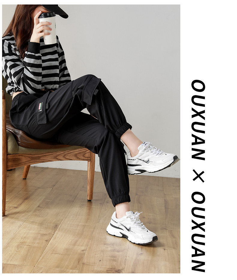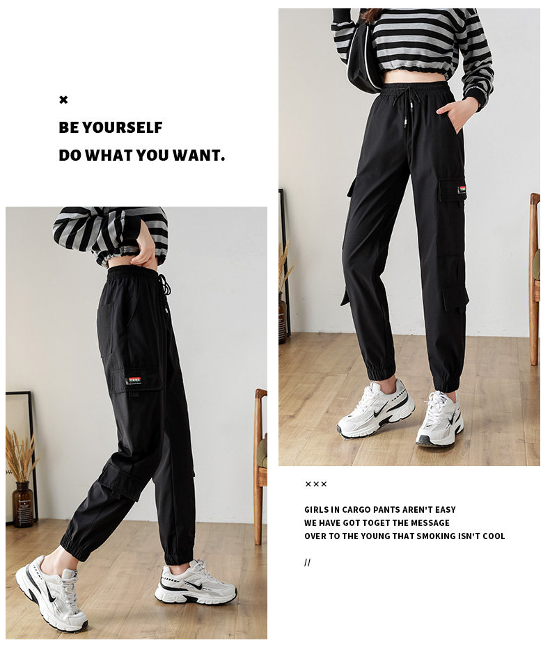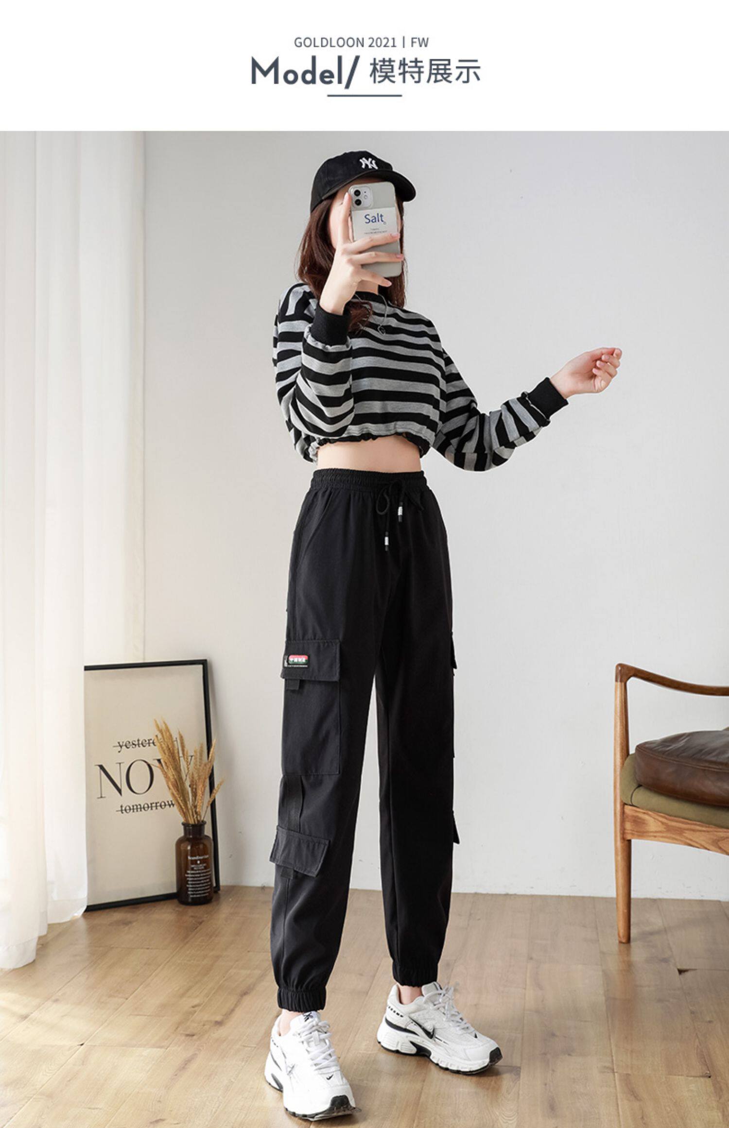 黑色工裝褲女2025新款秋冬寬鬆束腳褲加絨加厚小個子美式休閒長褲
