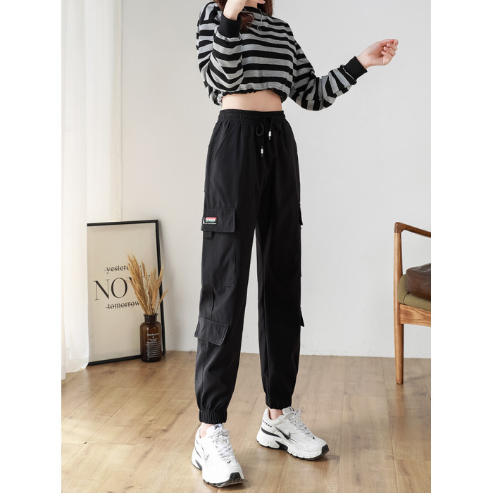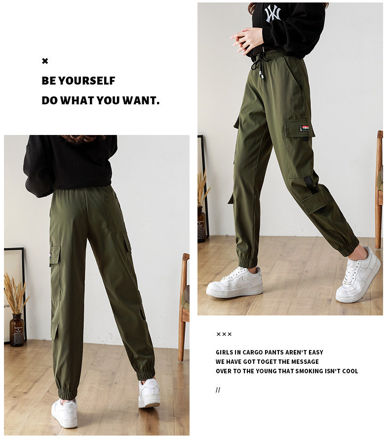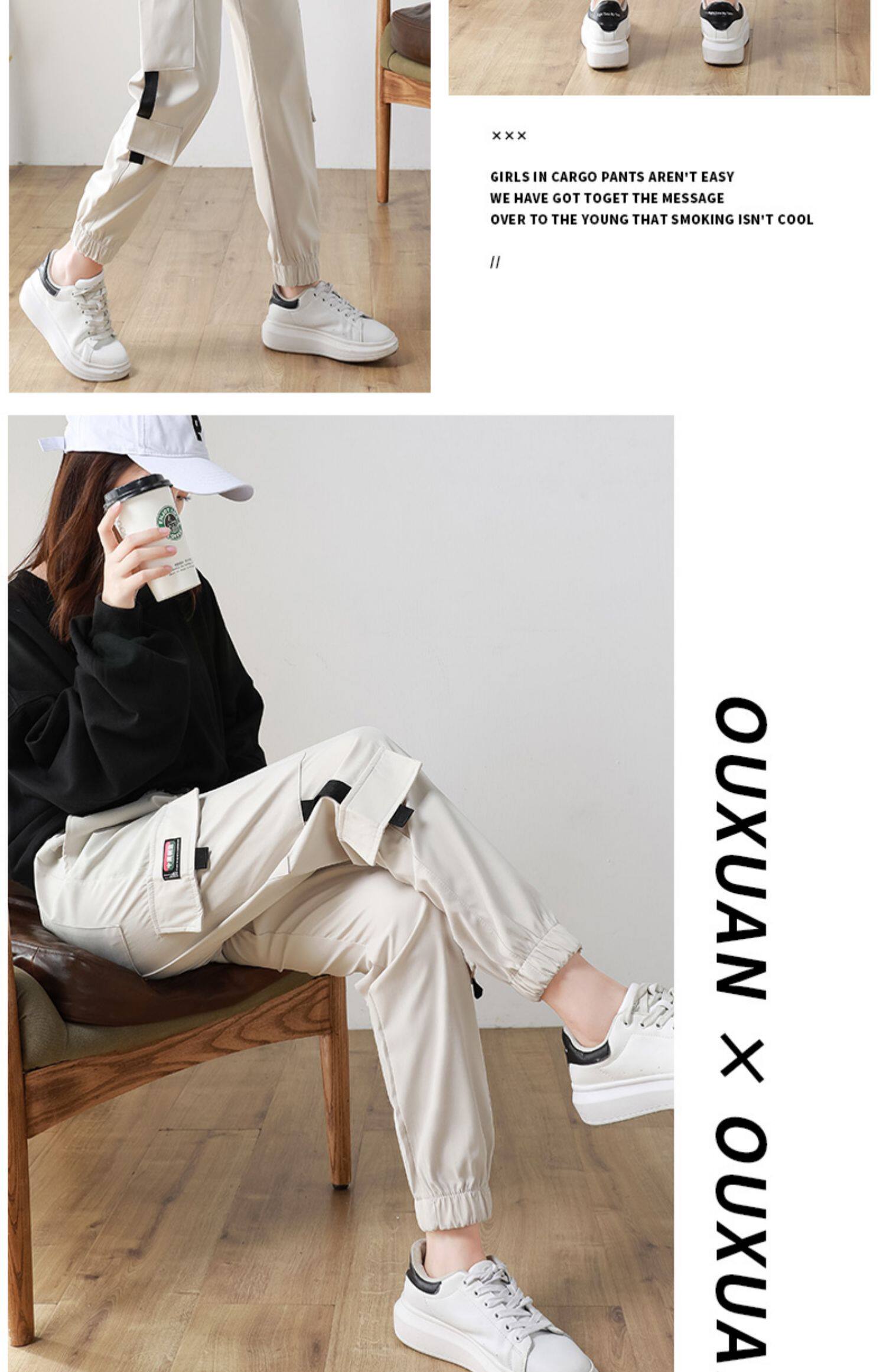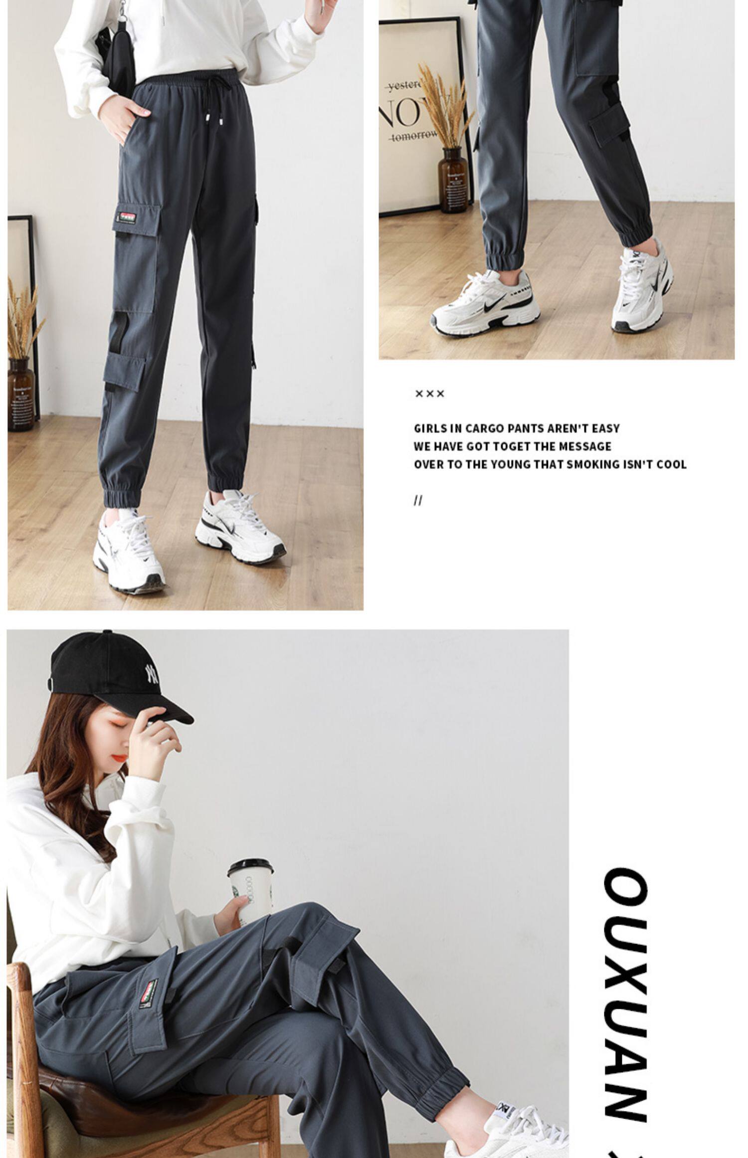 黑色工裝褲女2025新款秋冬寬鬆束腳褲加絨加厚小個子美式休閒長褲