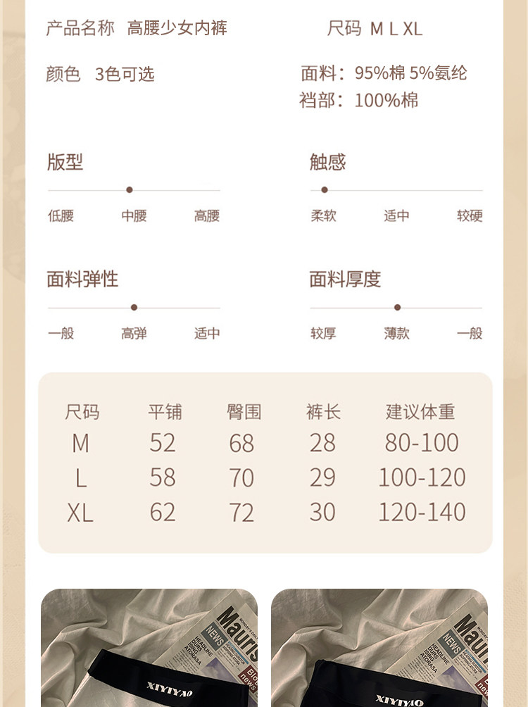 內褲女士純棉抗菌簡約高腰收腹大碼無痕全棉少女生新款三角短褲頭