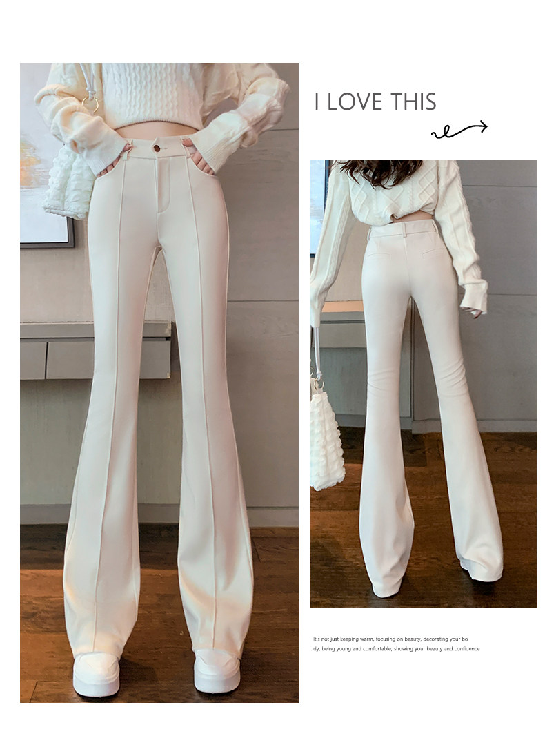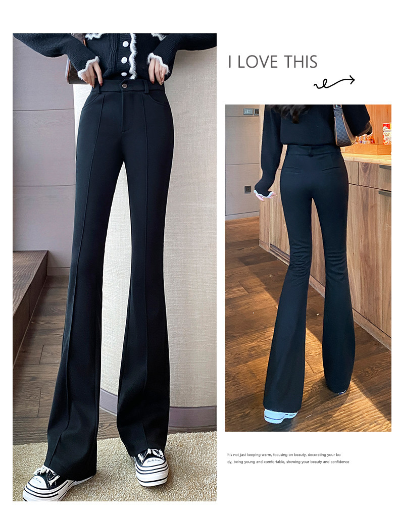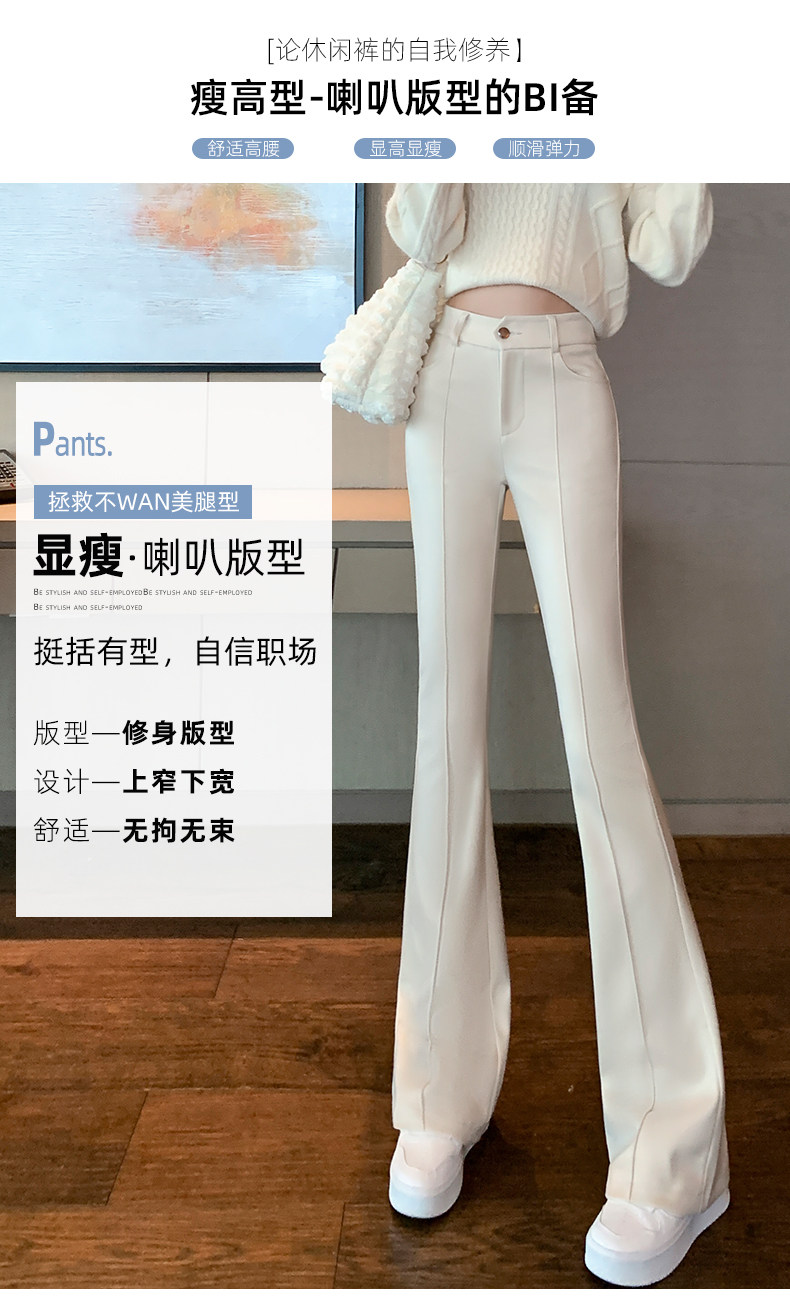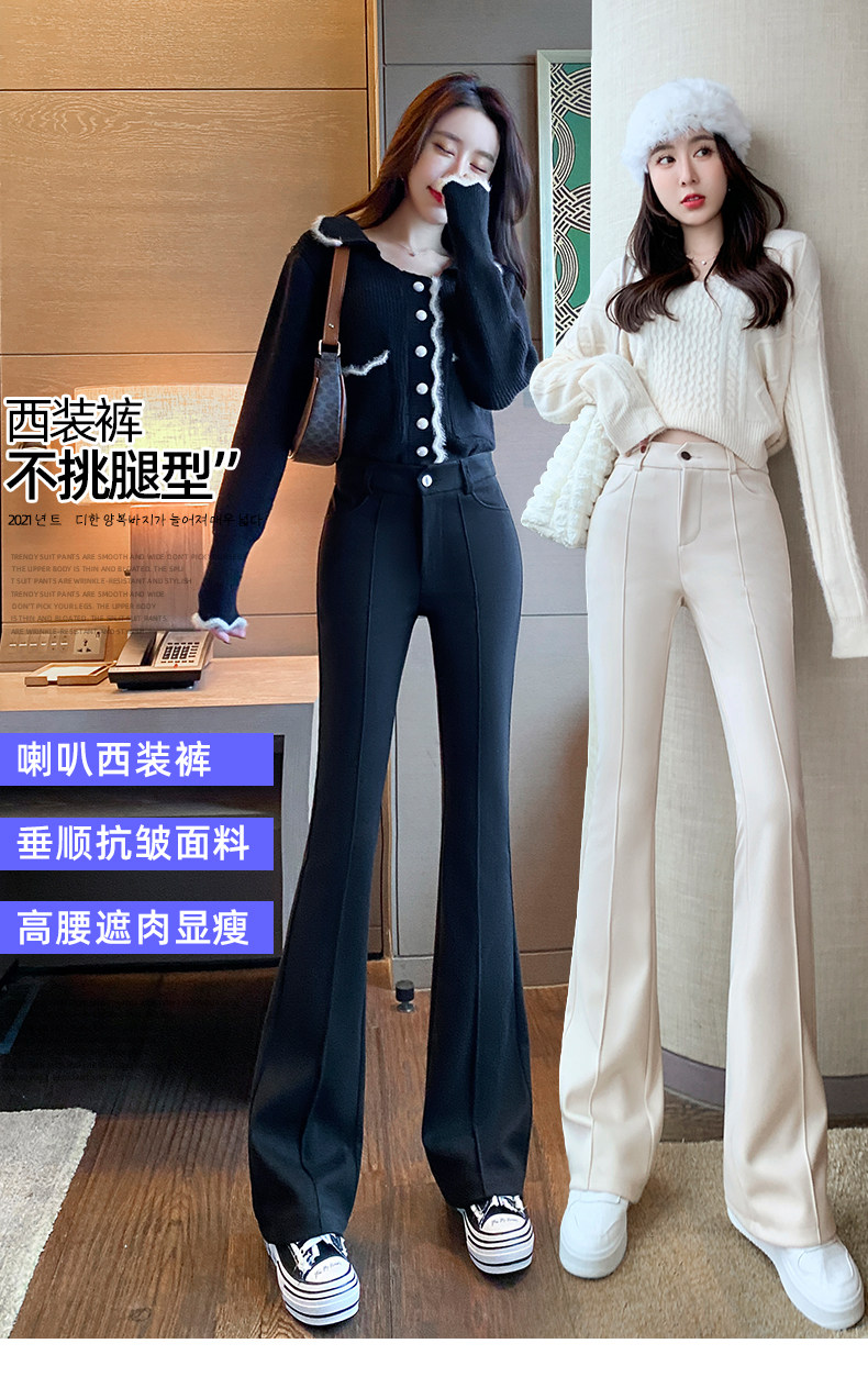 西裝微喇褲女秋冬外穿加絨加厚高腰修身喇叭褲垂感顯瘦毛呢休閒褲