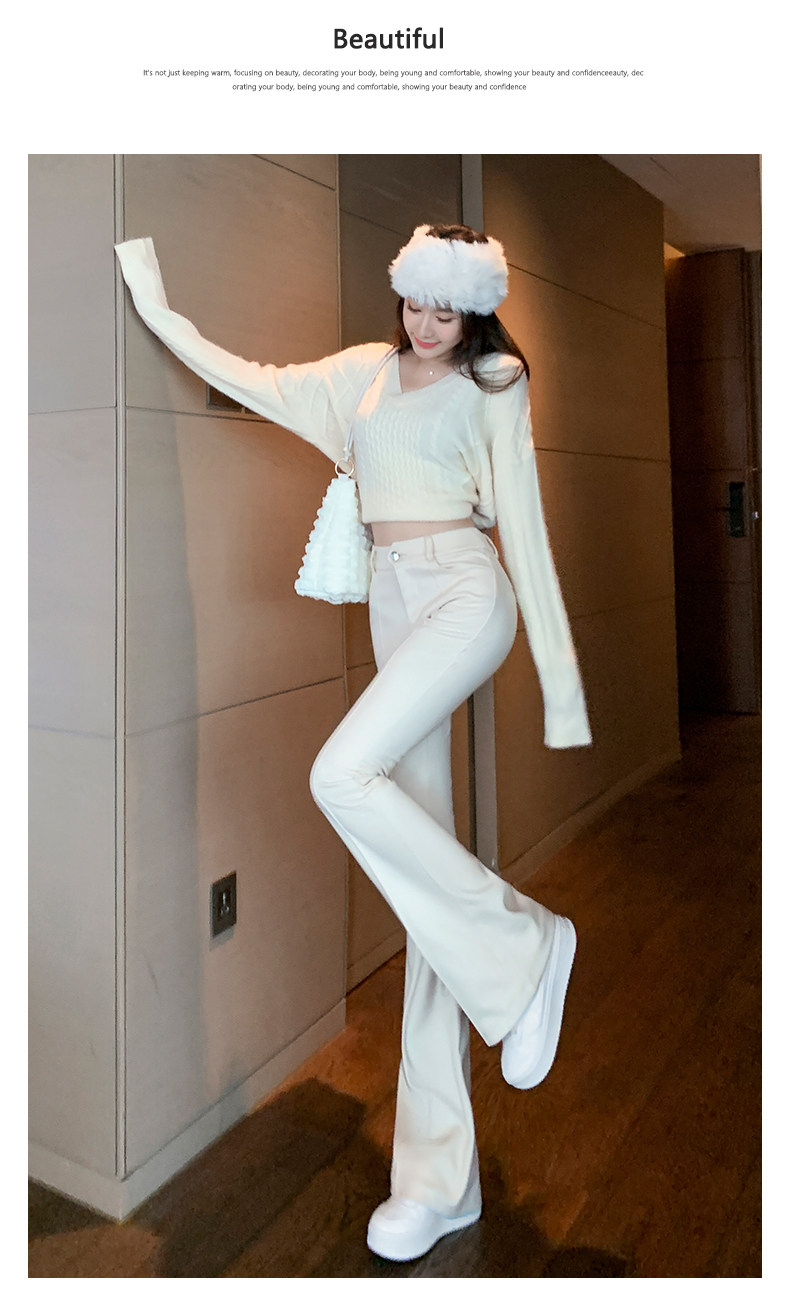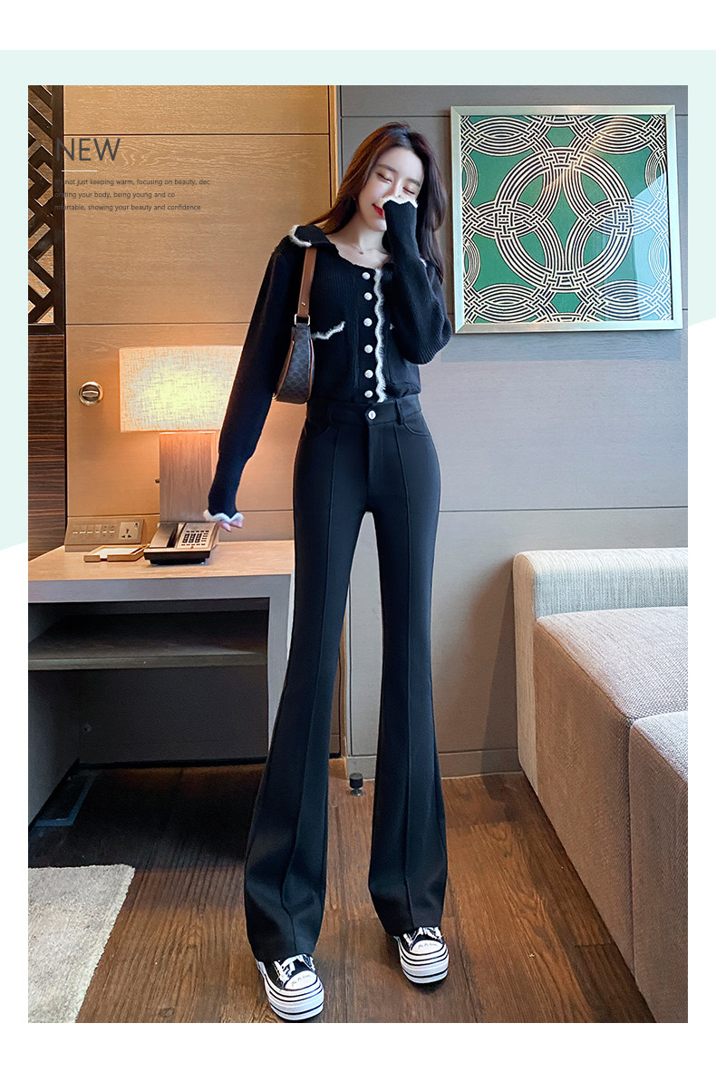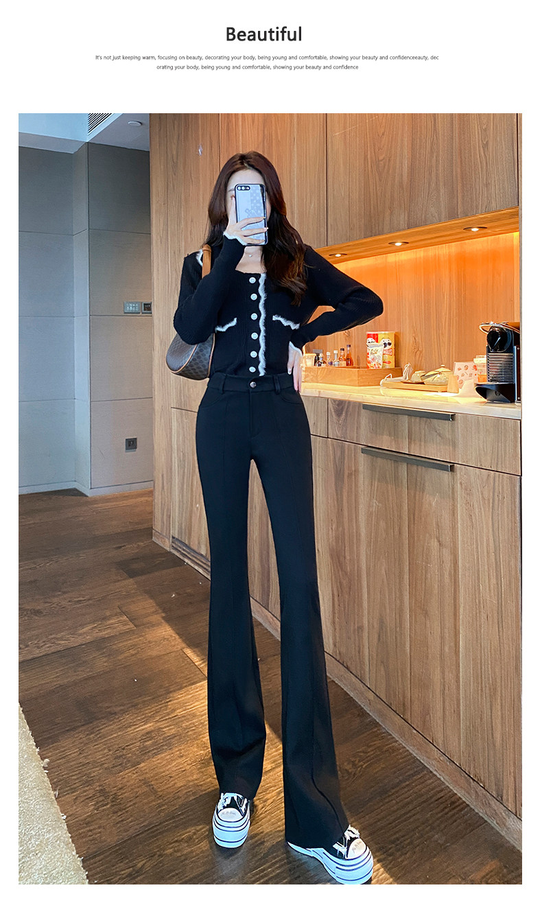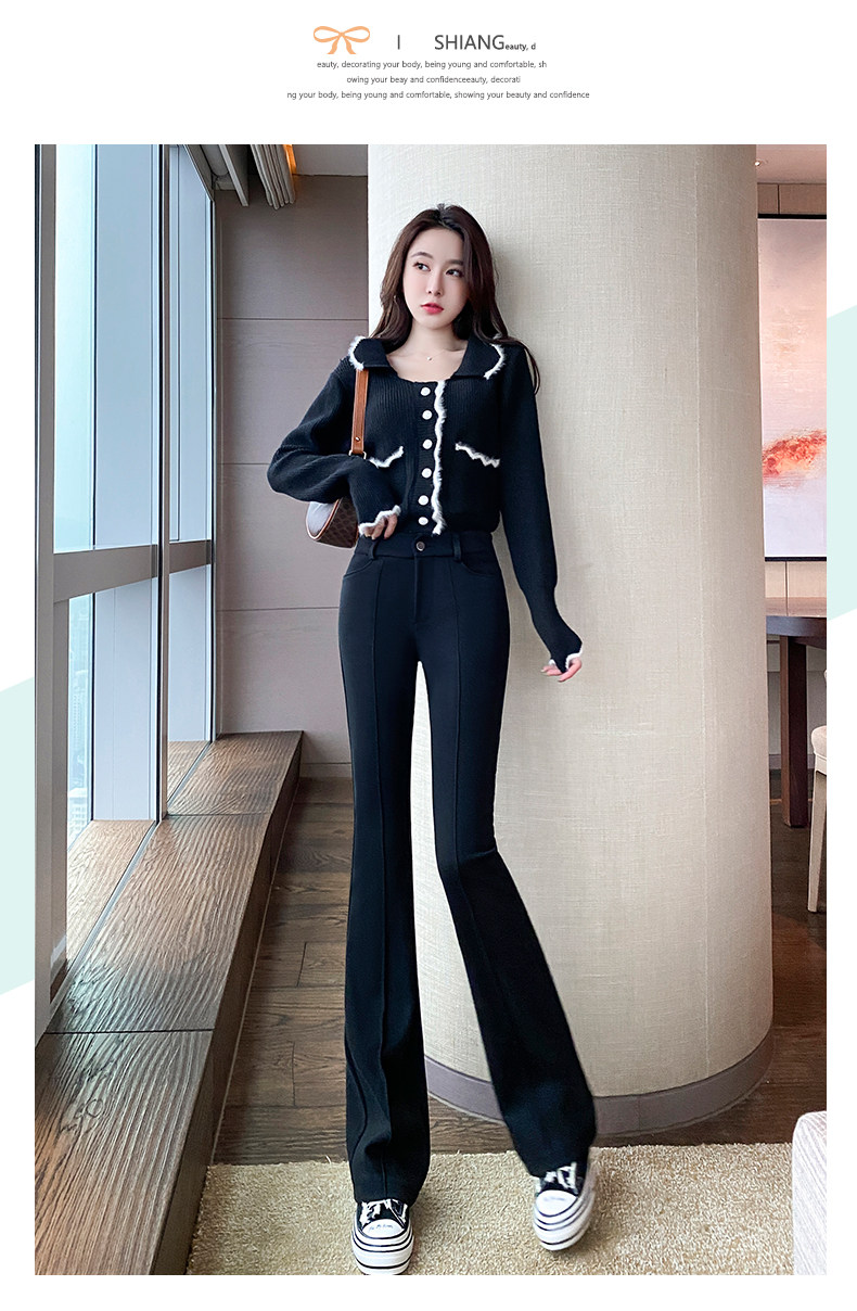 西裝微喇褲女秋冬外穿加絨加厚高腰修身喇叭褲垂感顯瘦毛呢休閒褲