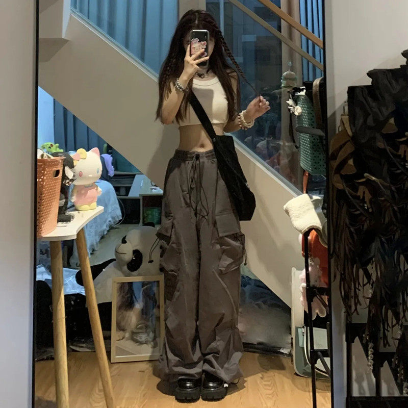 工裝褲女秋冬新款休閒褲束腳小個子顯瘦寬鬆2023冬季高腰加絨褲子
