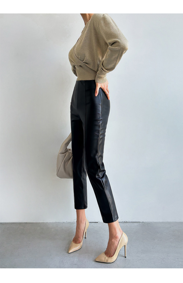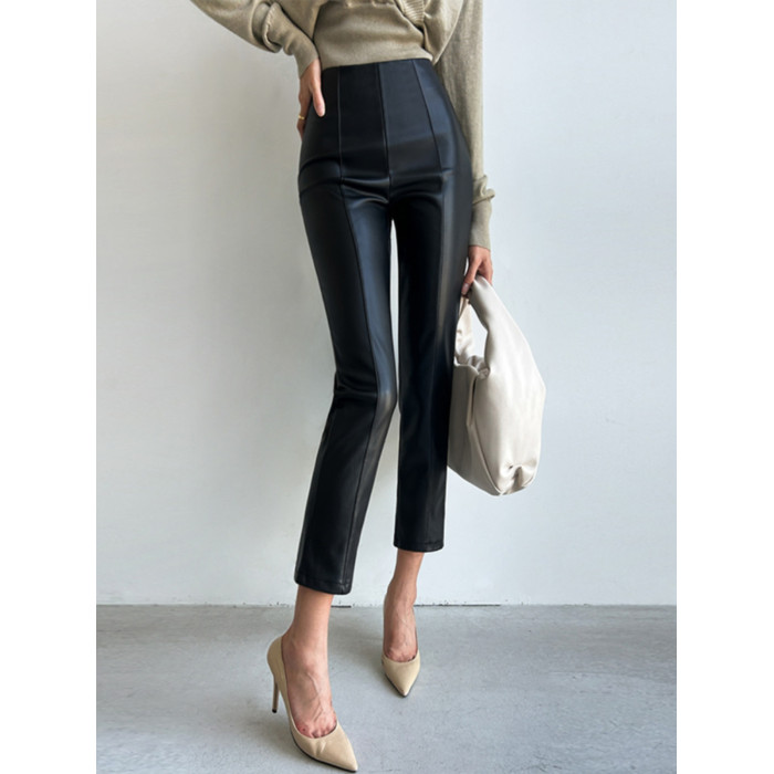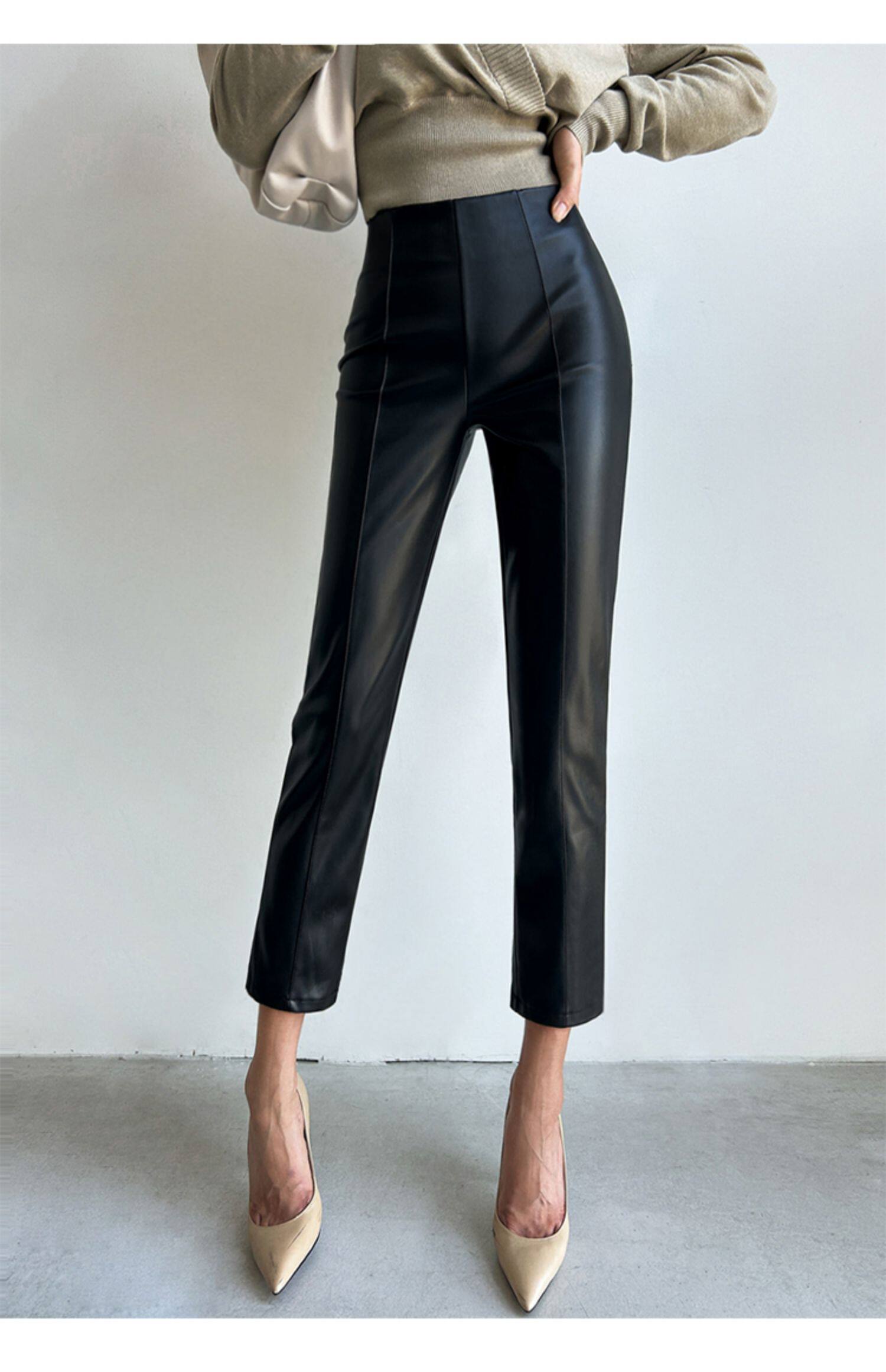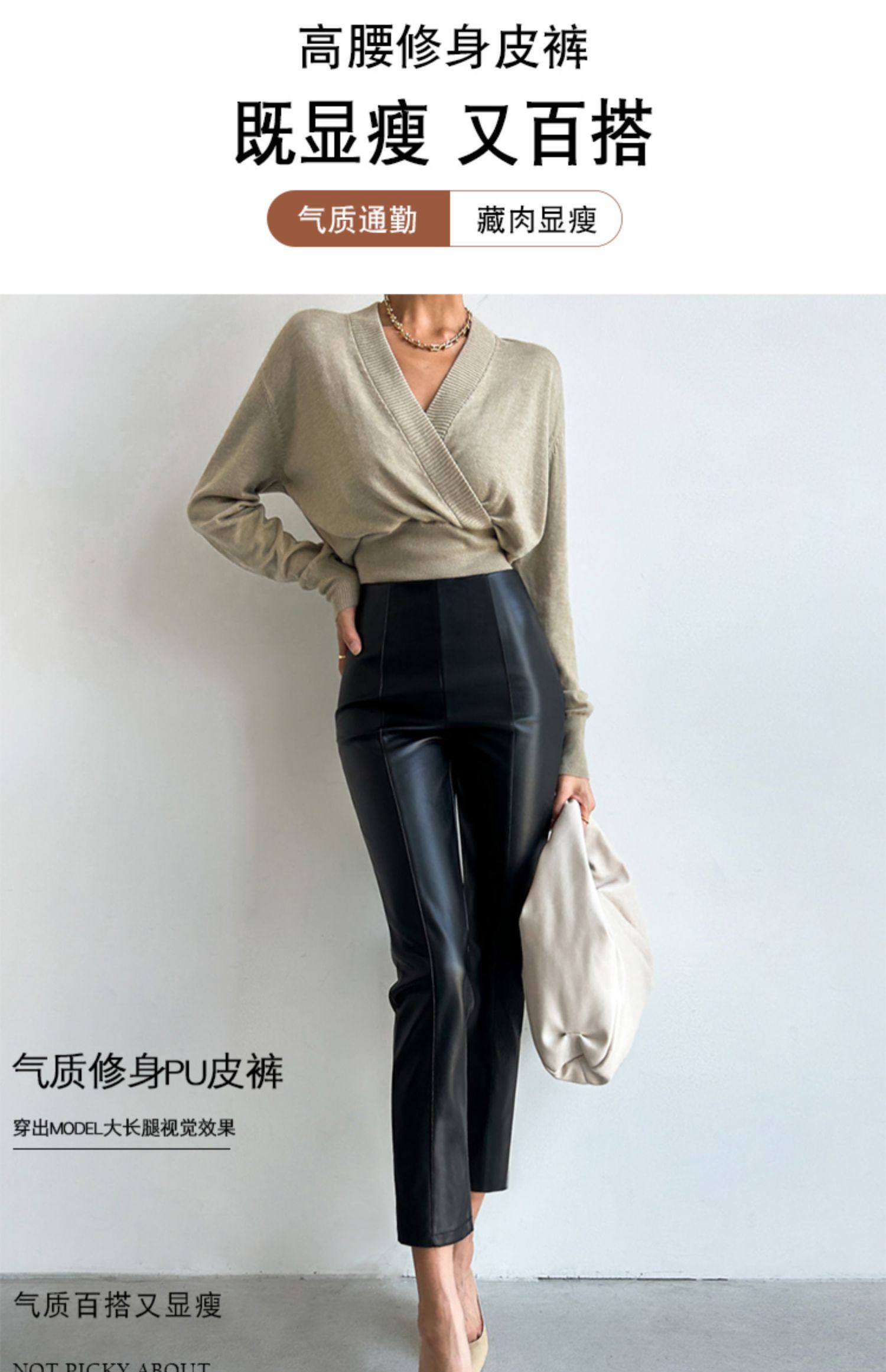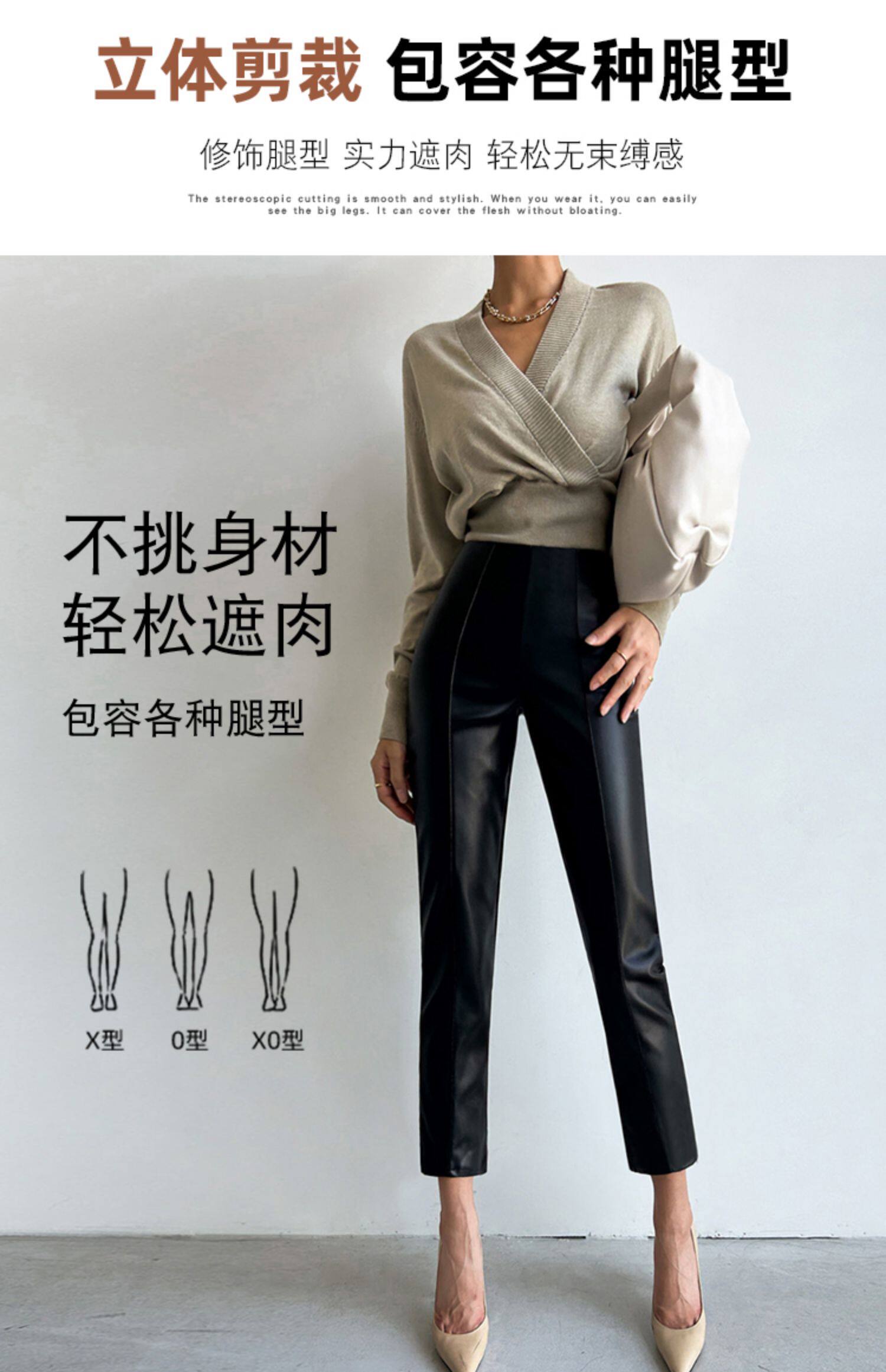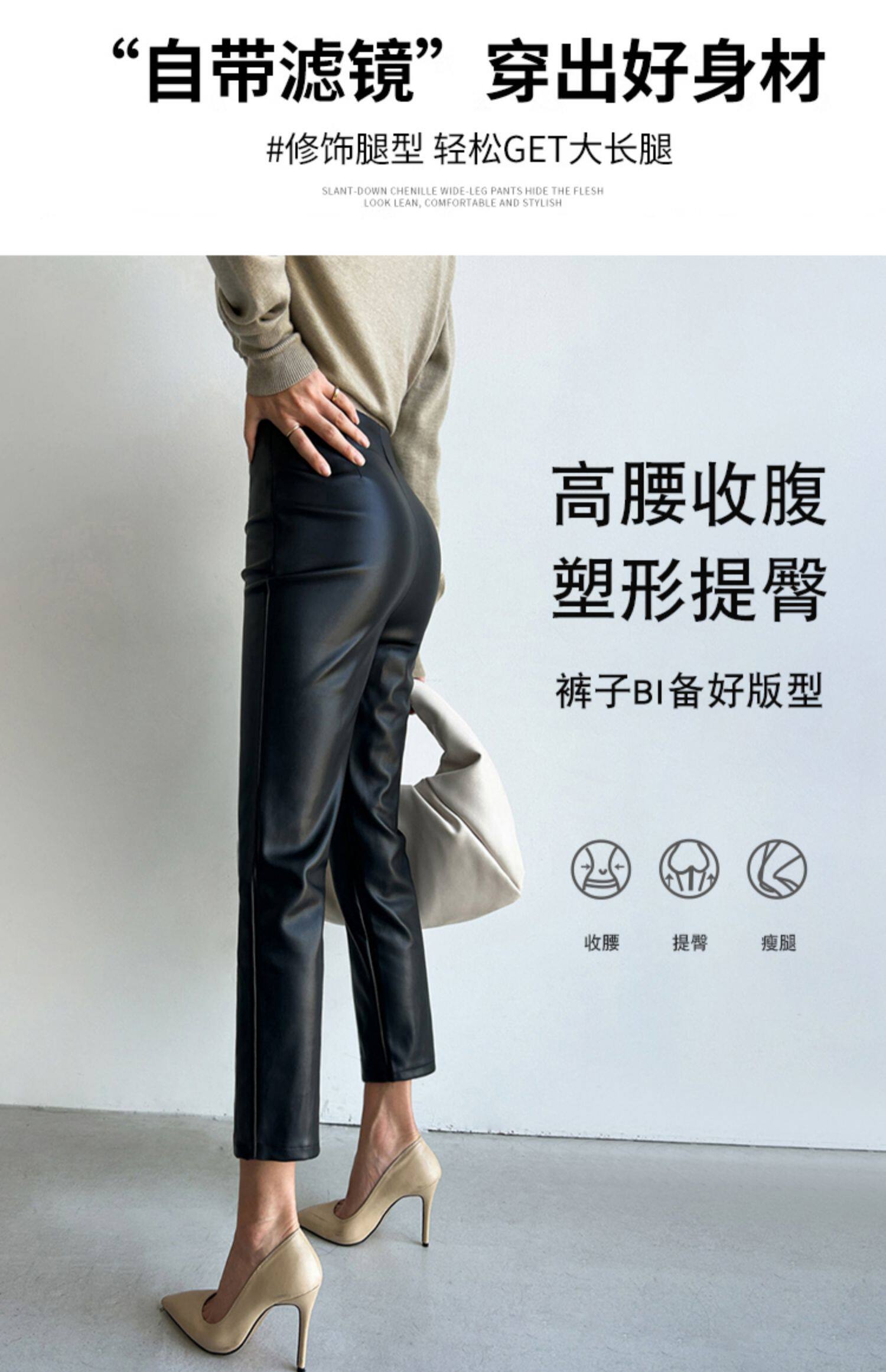 皮褲女士2025新款秋冬款外穿九分小腳褲小個子高級感pu皮打底褲子
