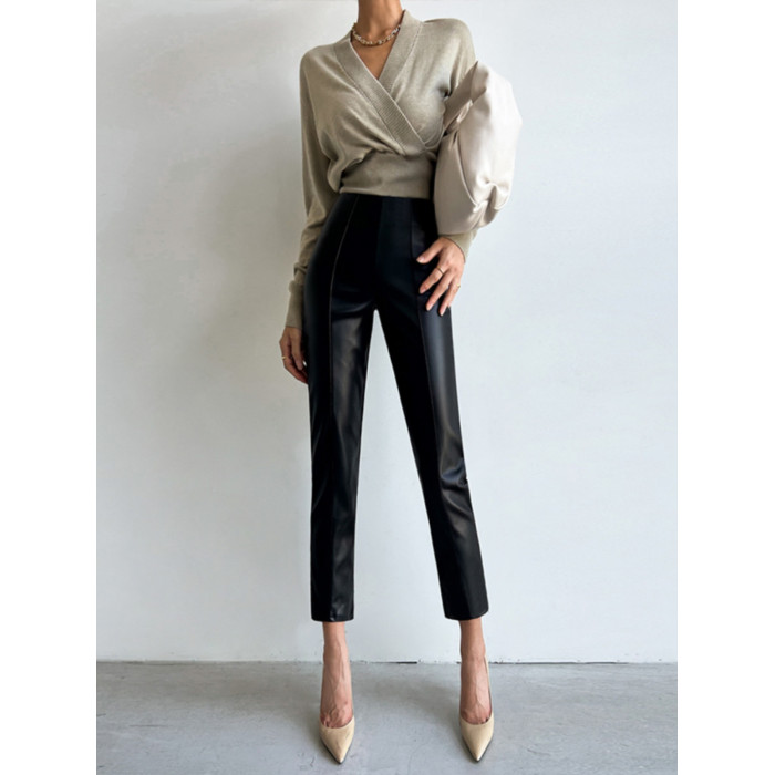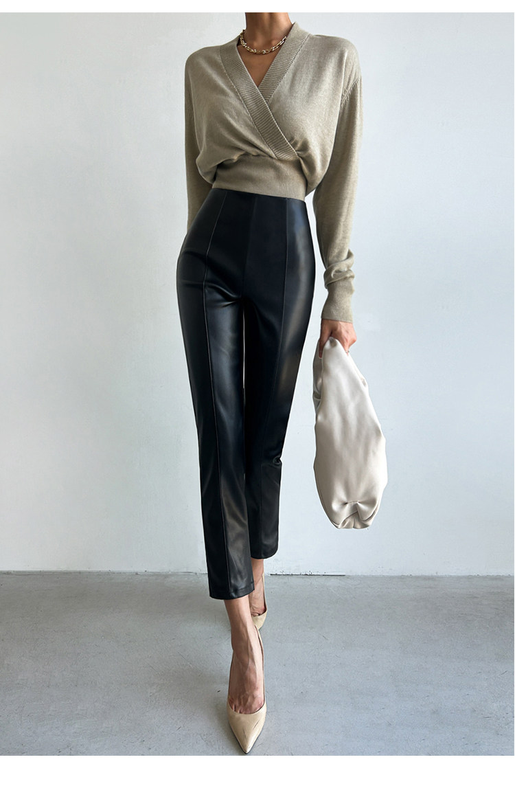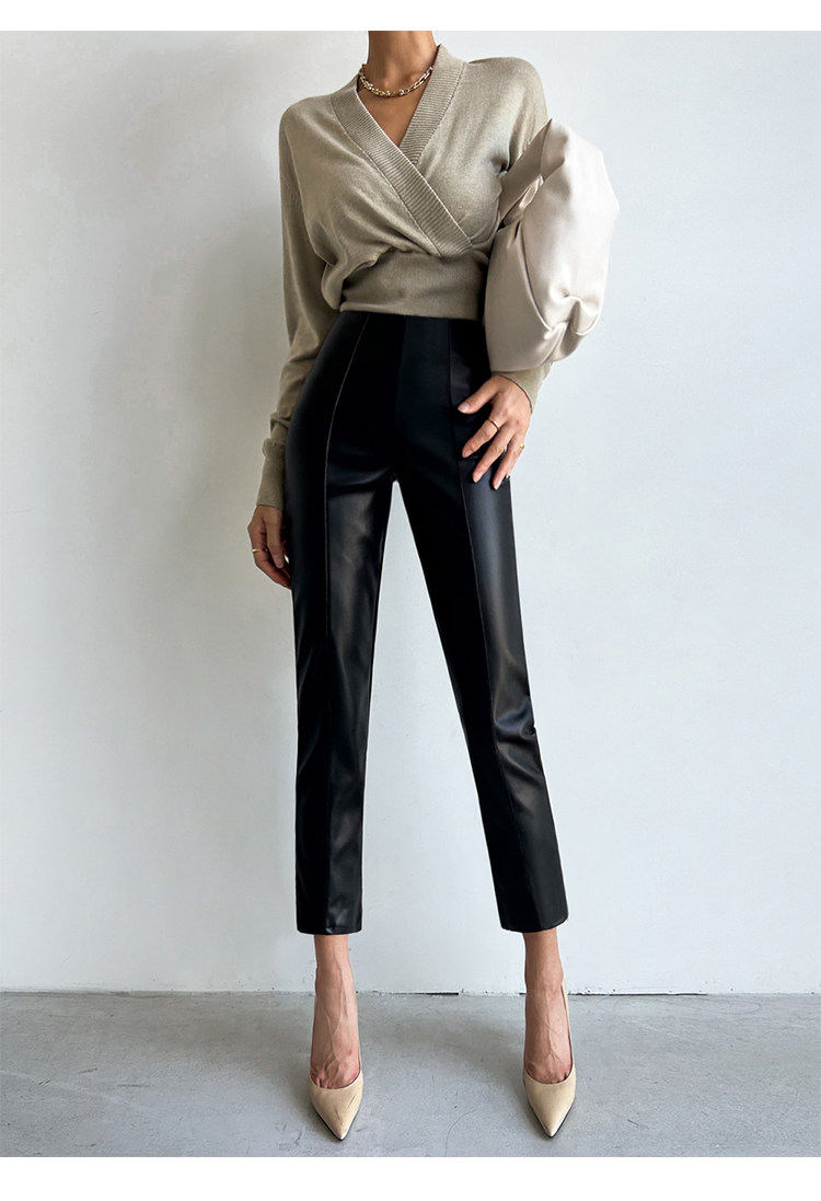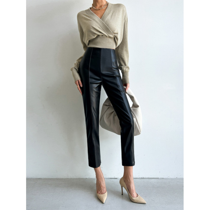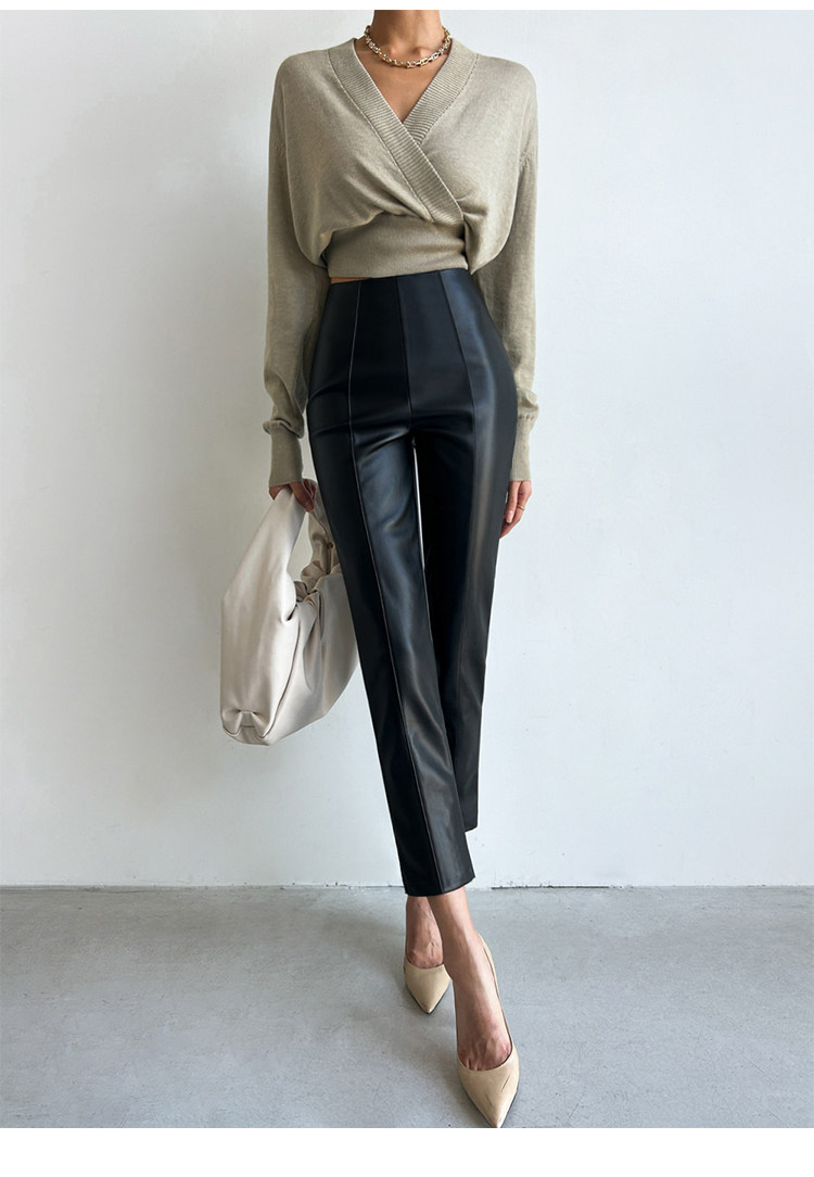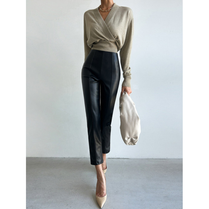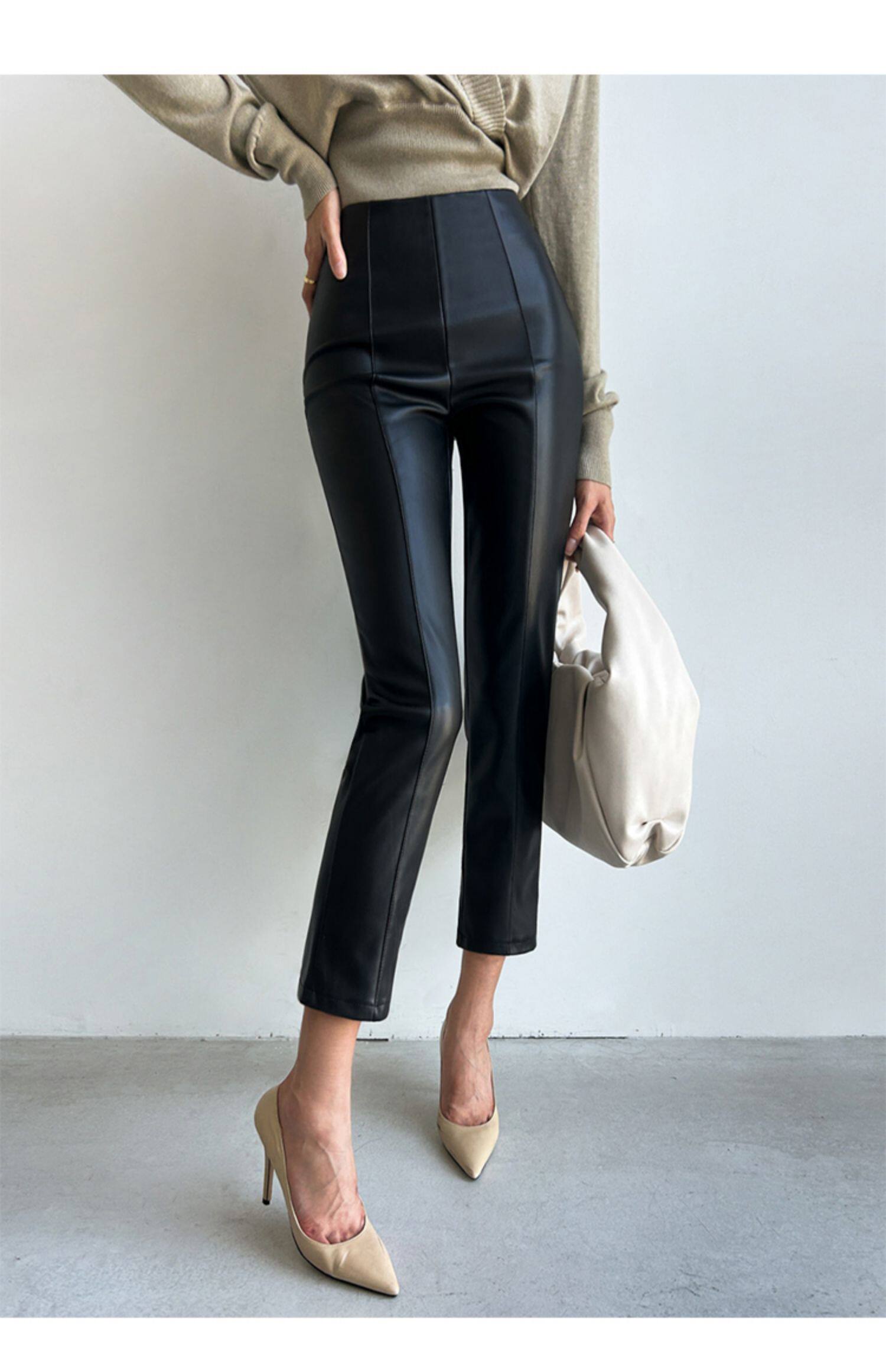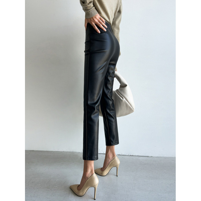 皮褲女士2025新款秋冬款外穿九分小腳褲小個子高級感pu皮打底褲子