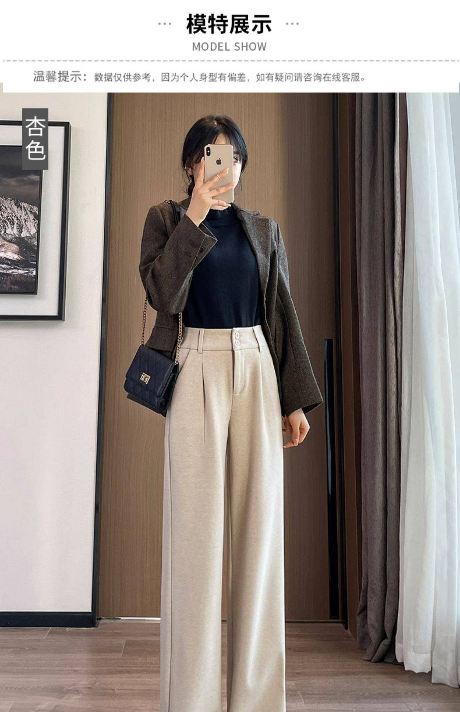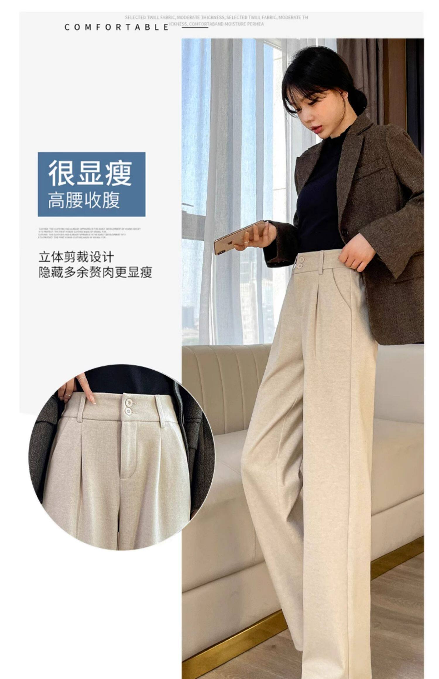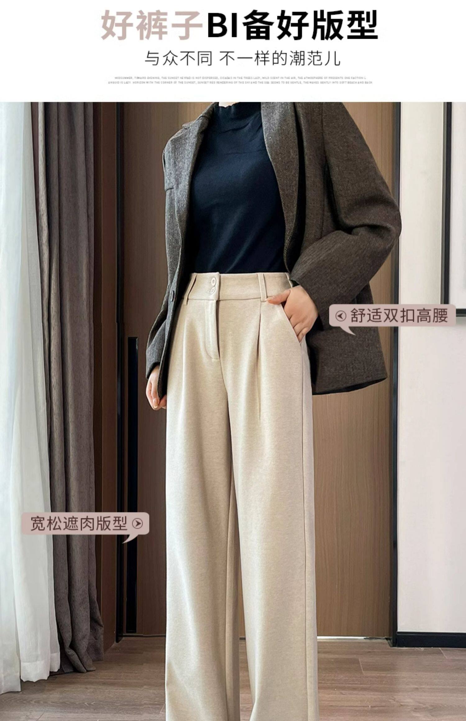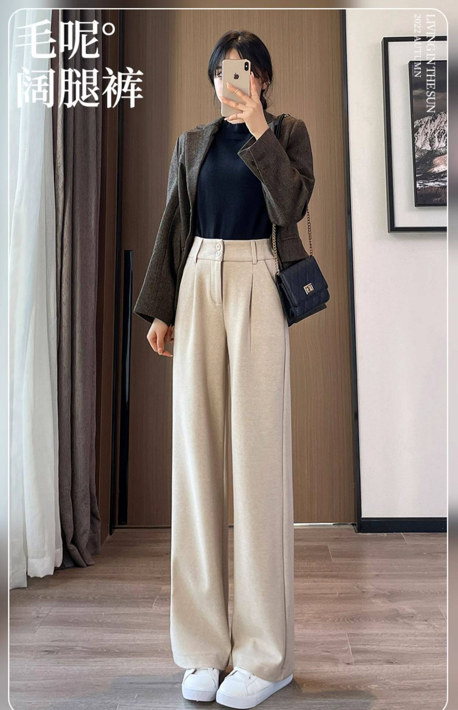 毛呢濶腿褲女春秋冬季2023爆款高腰垂感顯瘦加絨休閒拖地直筒褲子