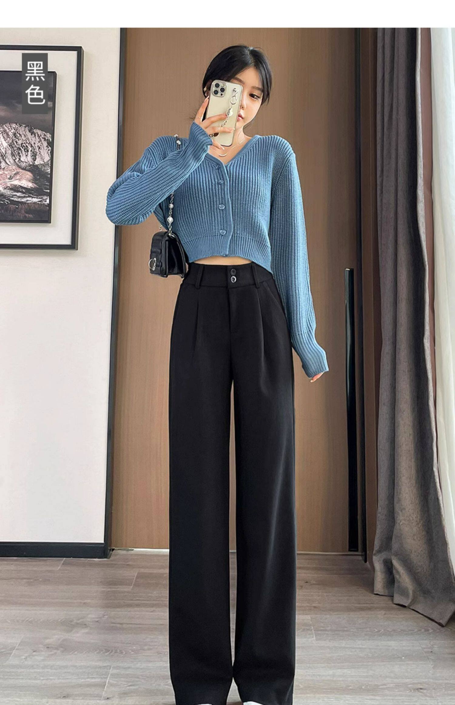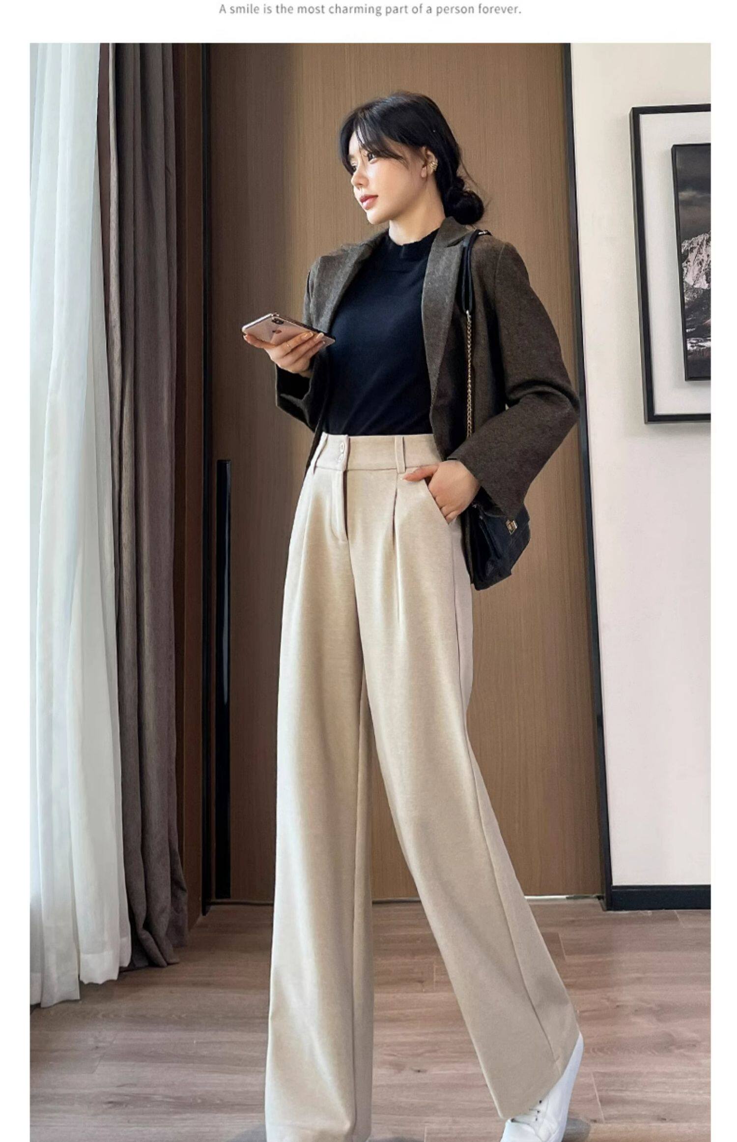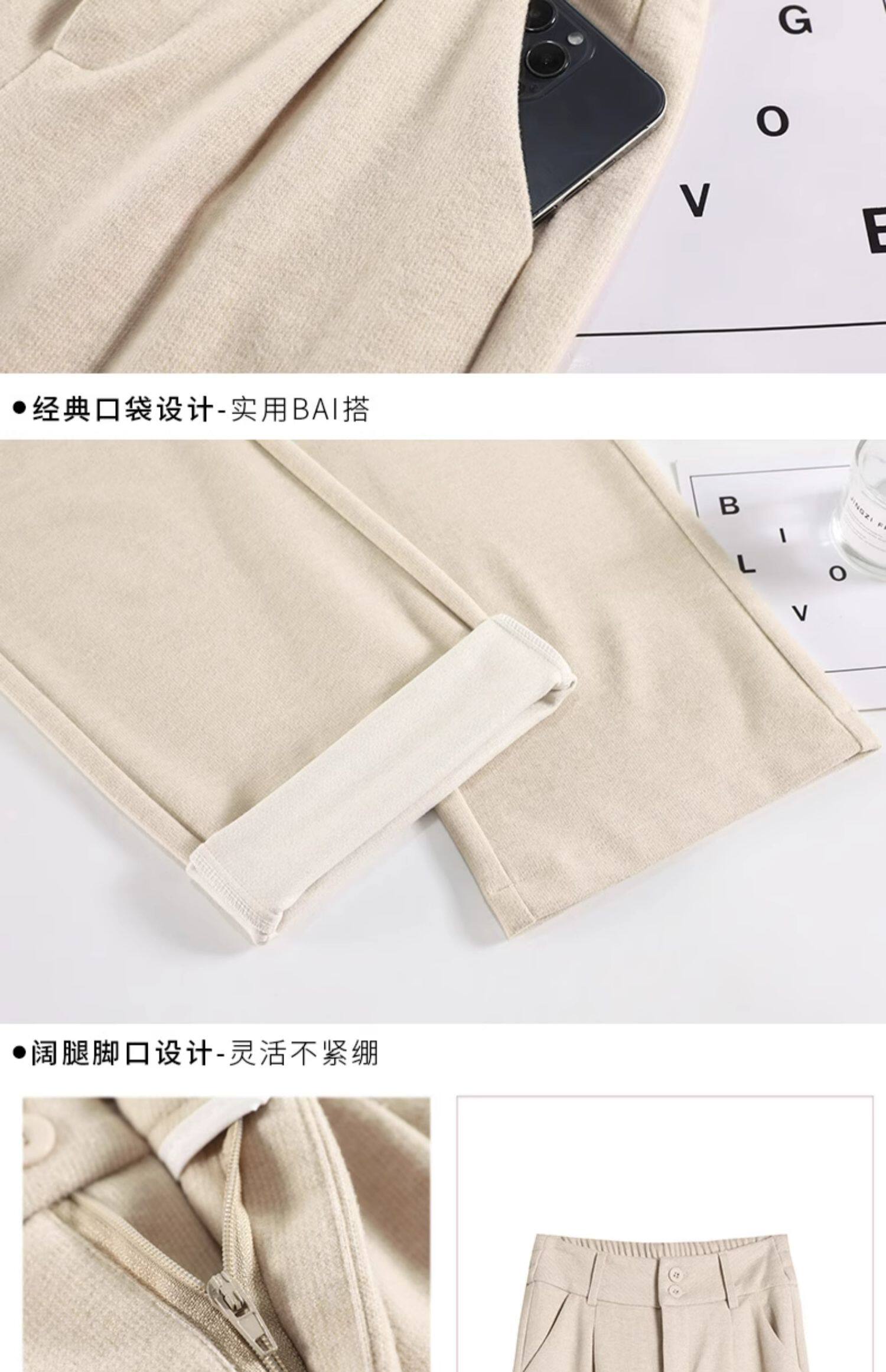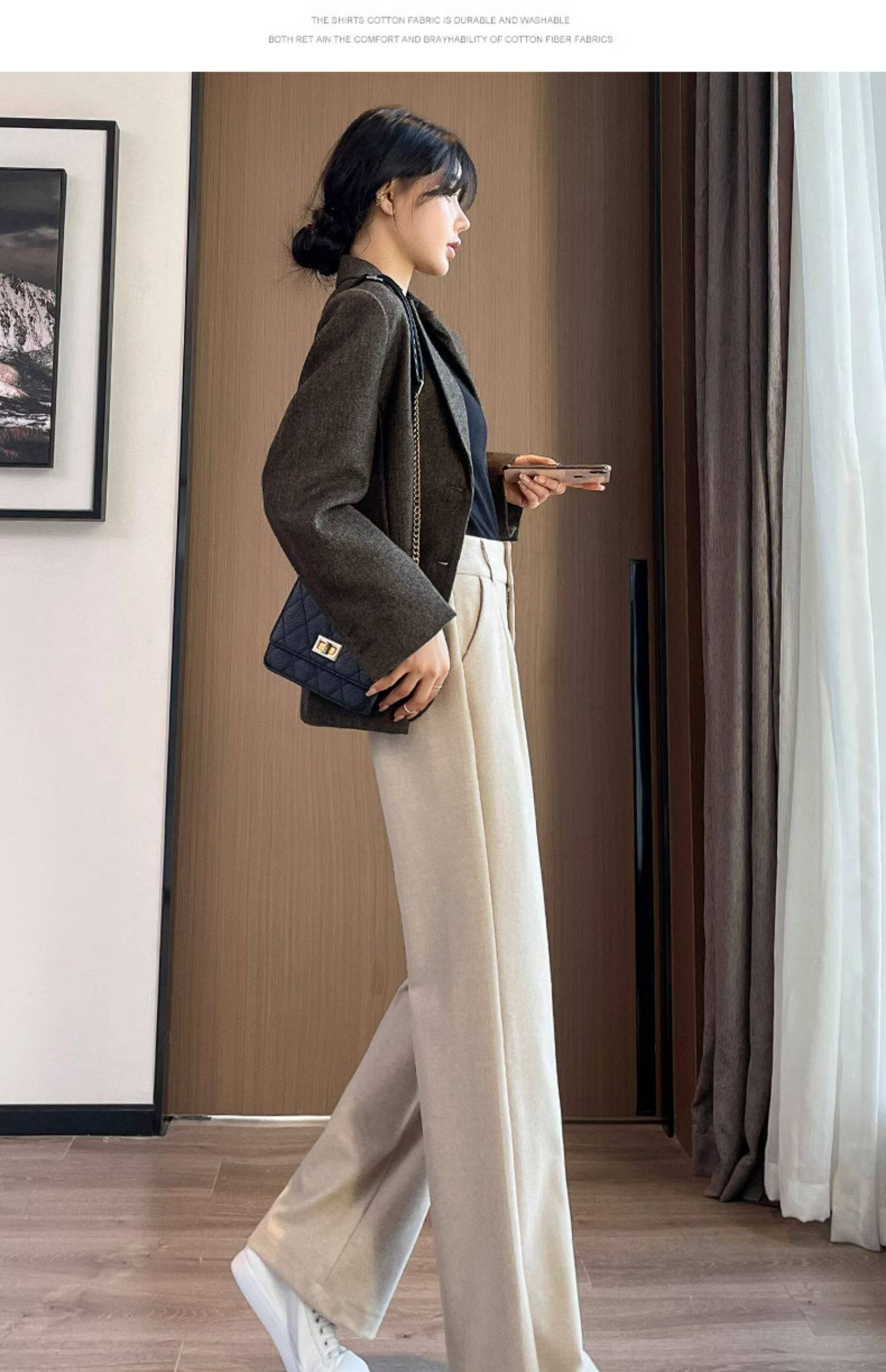 毛呢濶腿褲女春秋冬季2023爆款高腰垂感顯瘦加絨休閒拖地直筒褲子