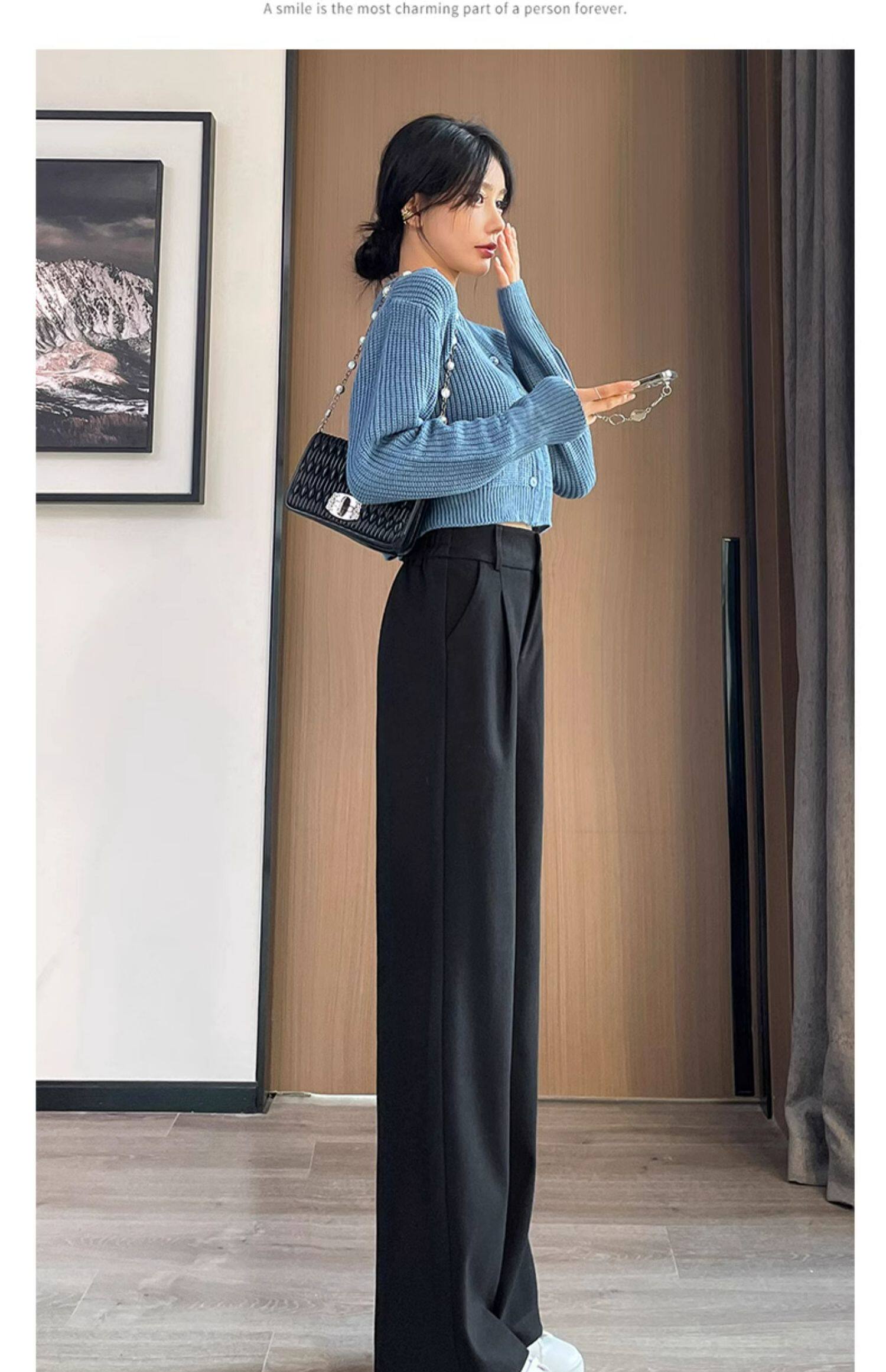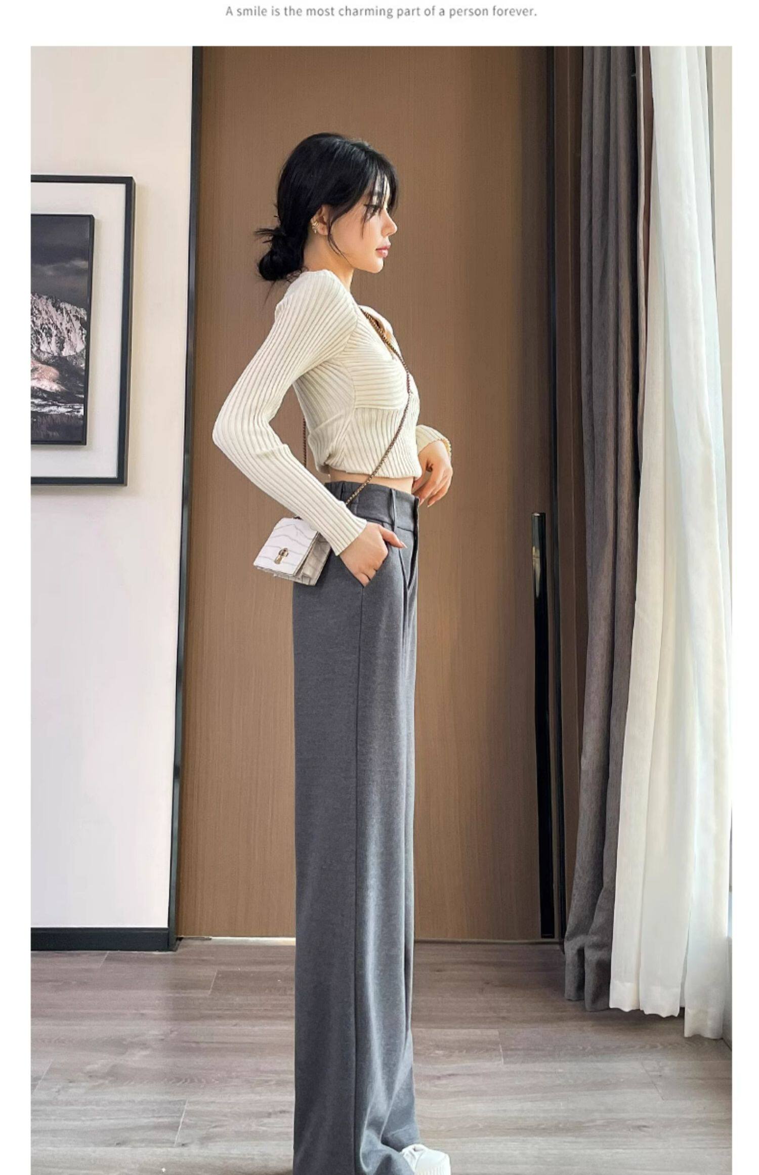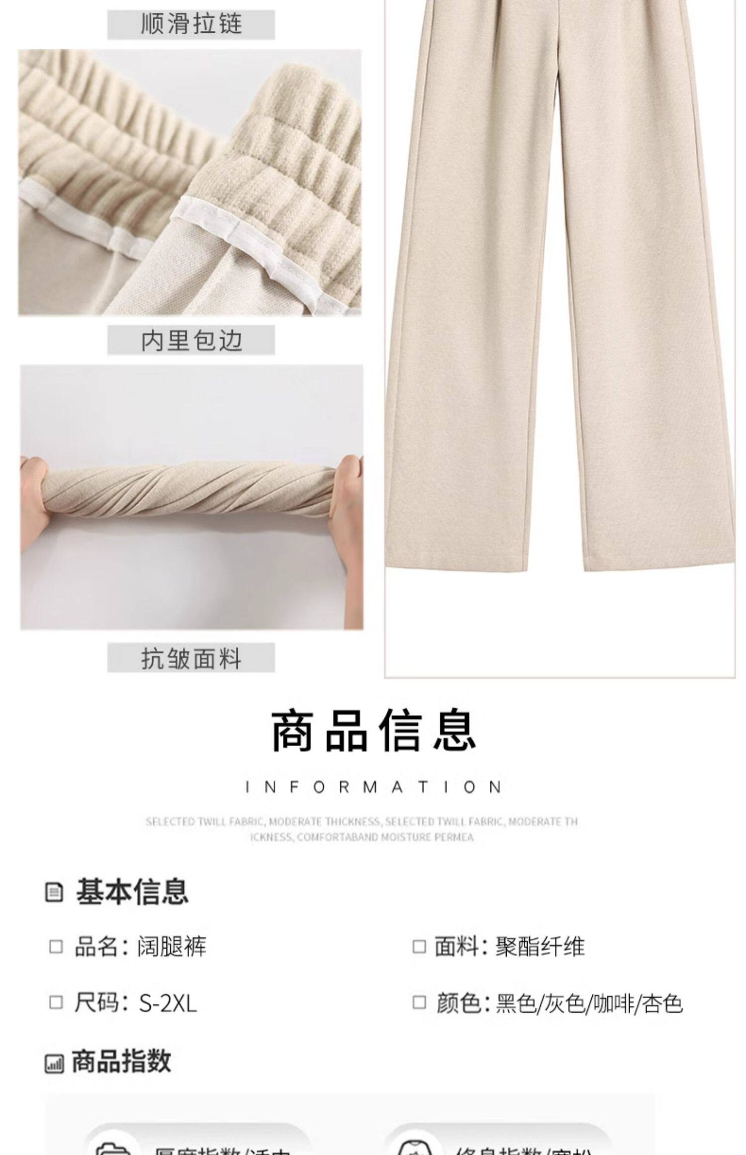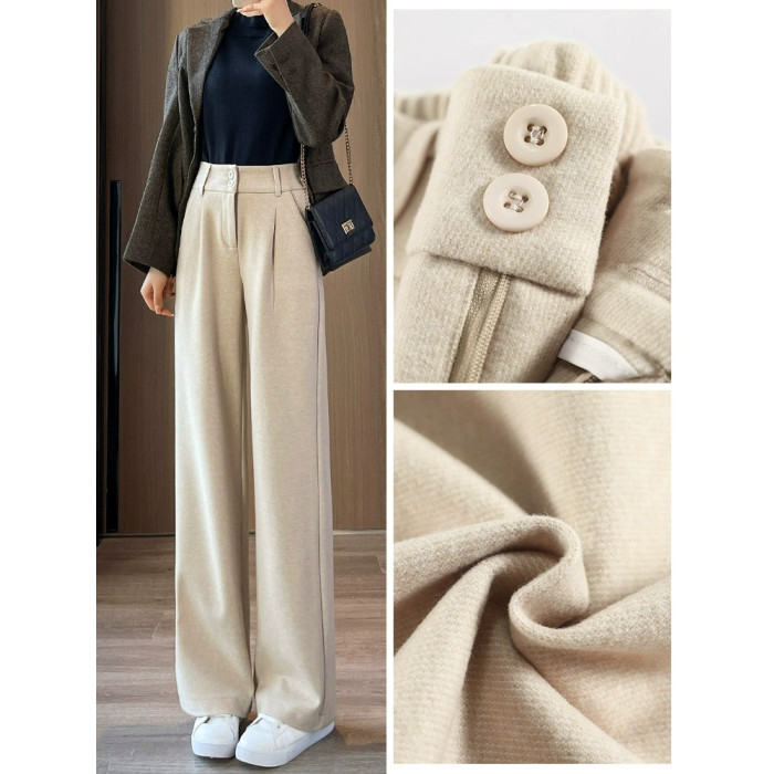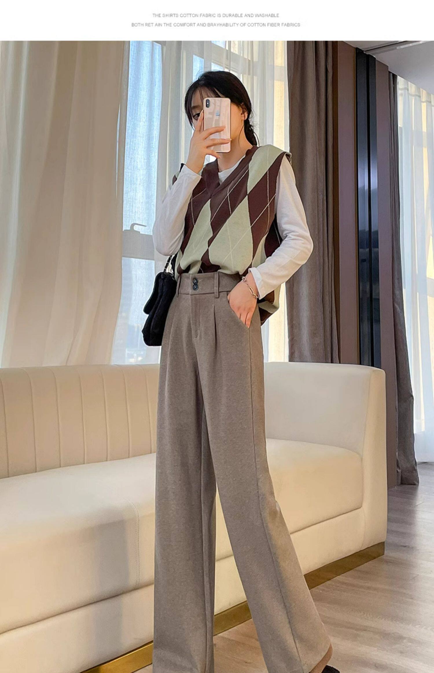 毛呢濶腿褲女春秋冬季2023爆款高腰垂感顯瘦加絨休閒拖地直筒褲子