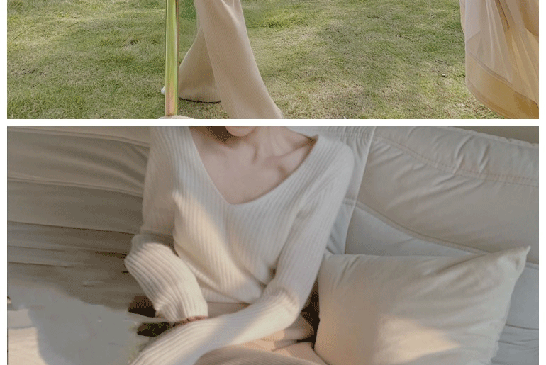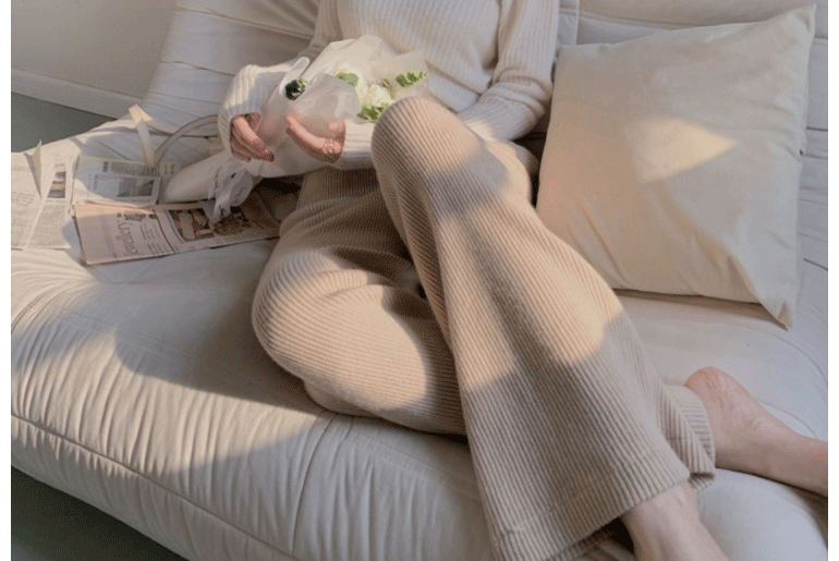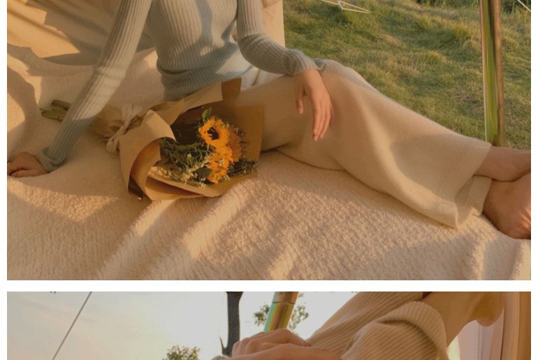 慵懶顯瘦直筒垂感針織濶腿褲女秋冬奶白色寬鬆休閒加長拖地羊絨褲