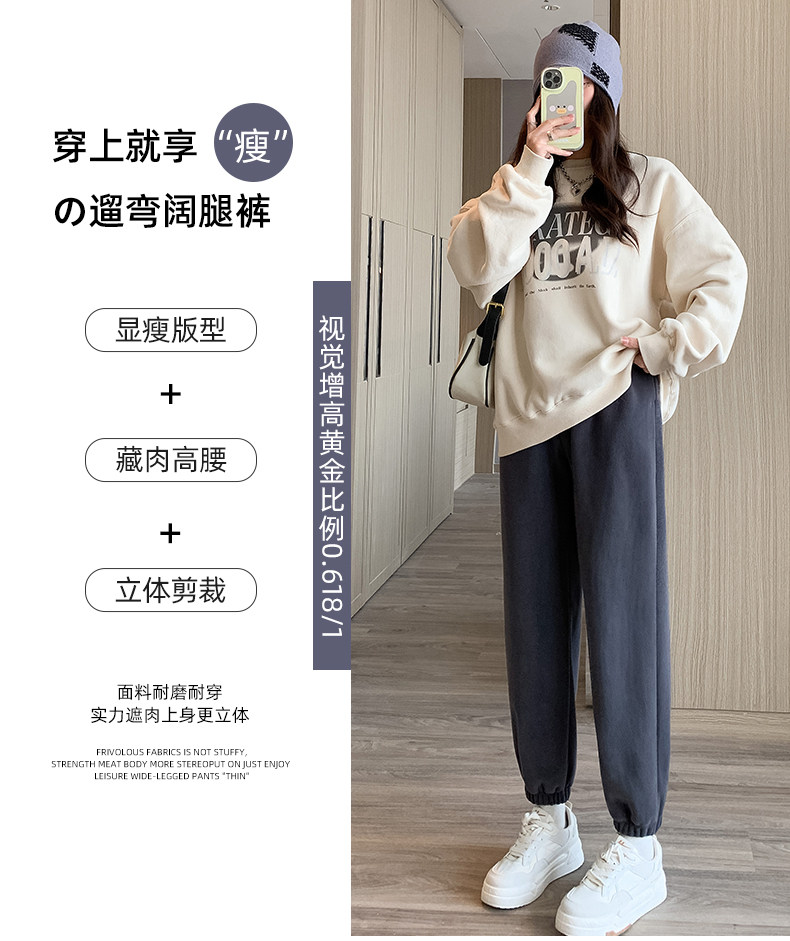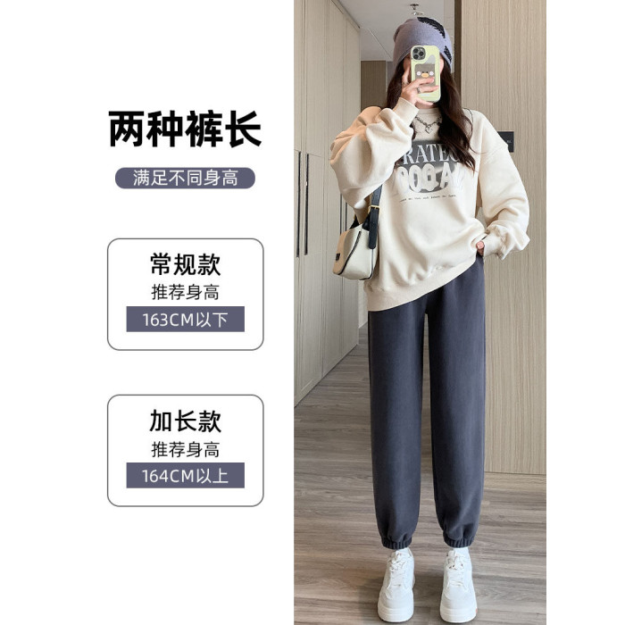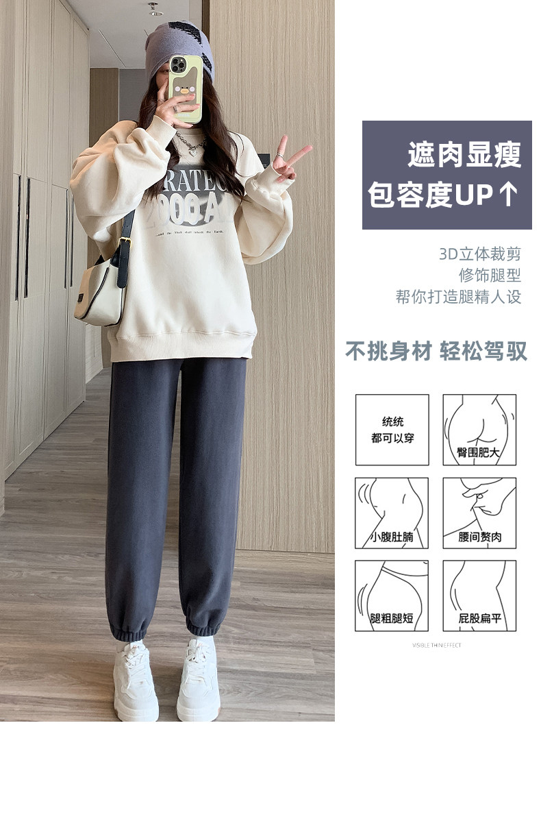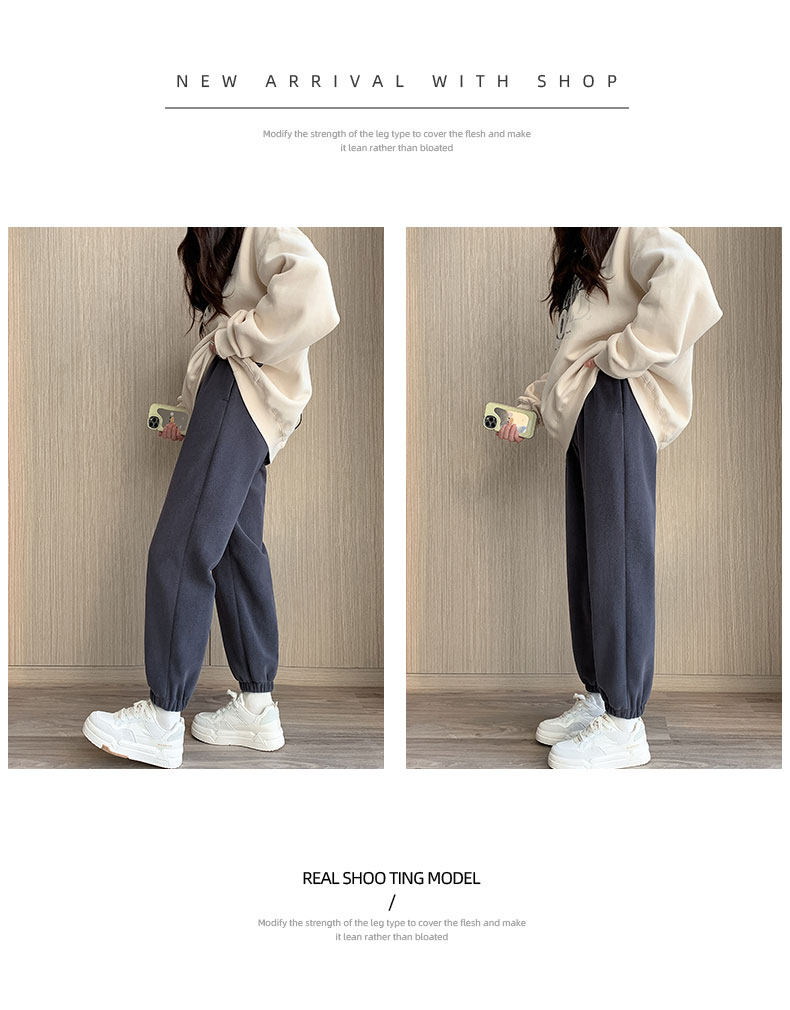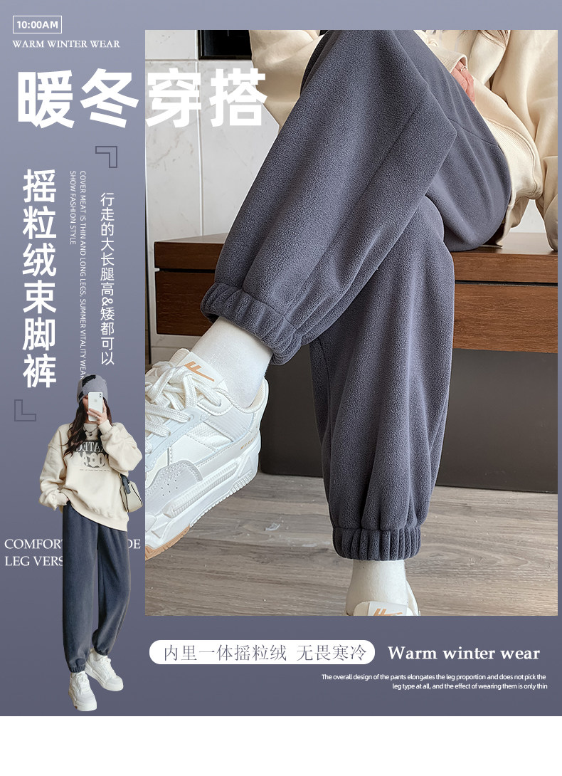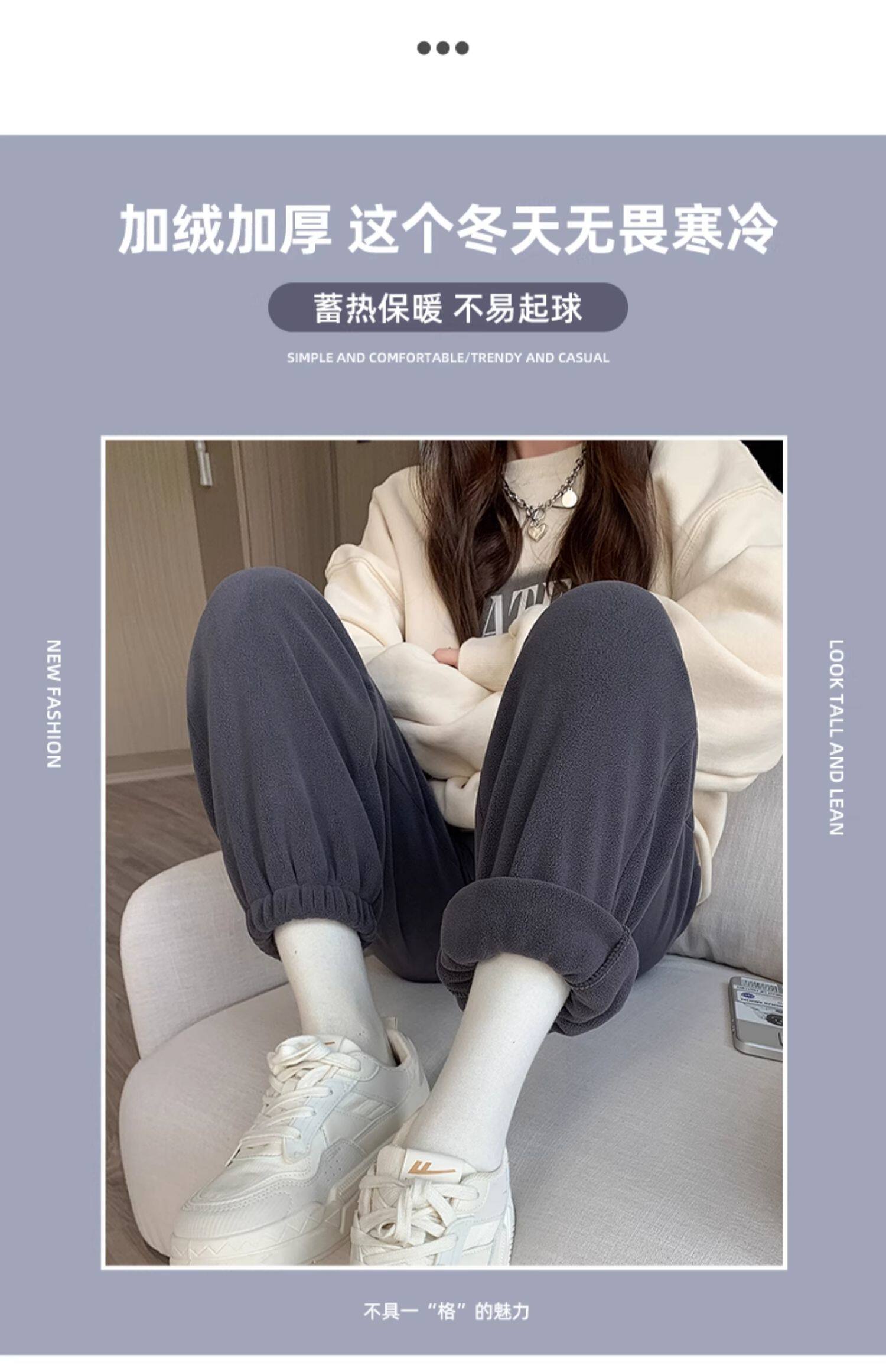 灰色加絨運動褲女秋冬加厚外穿保暖防風棉褲搖粒絨小個子束腳衛褲