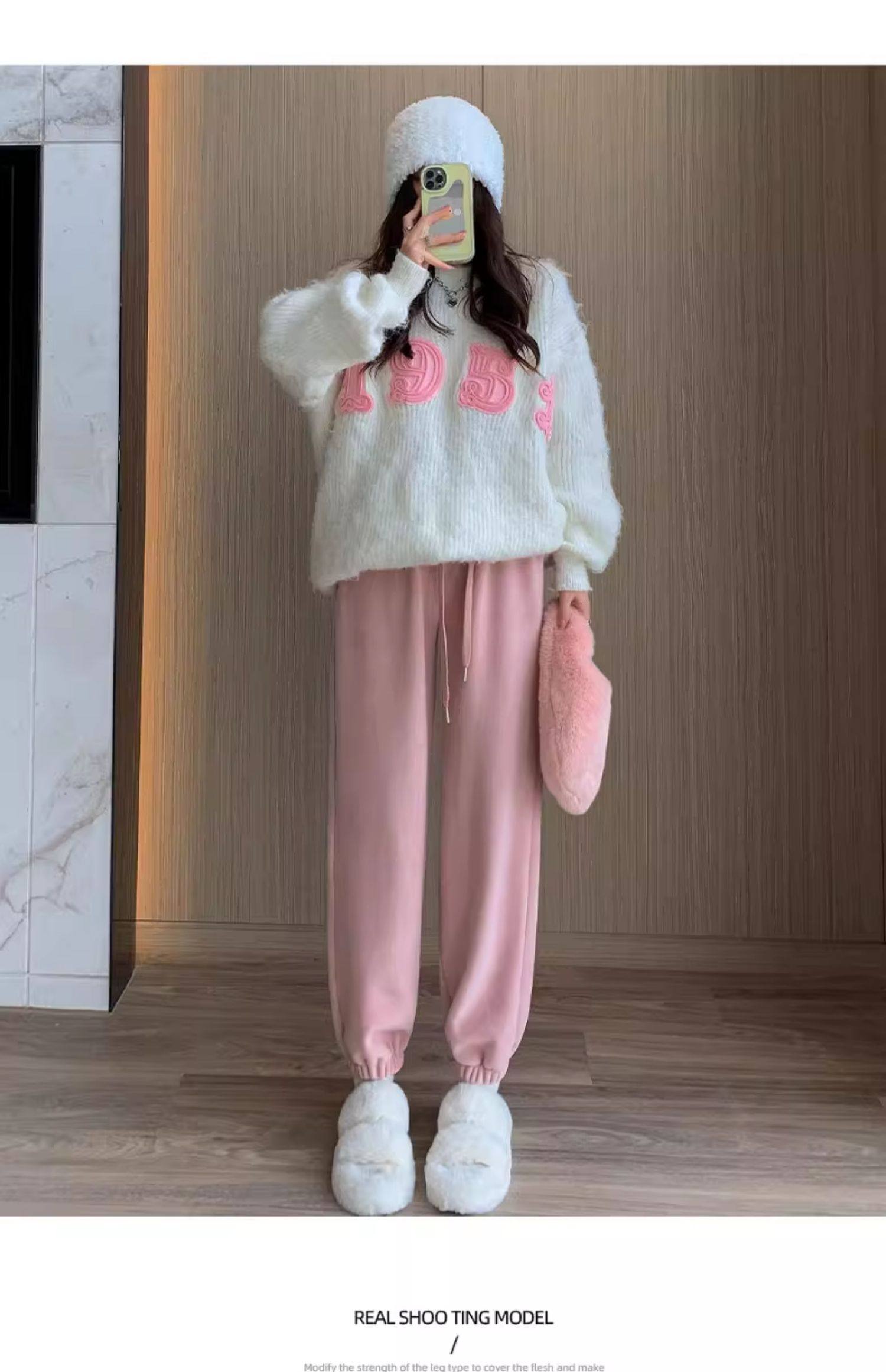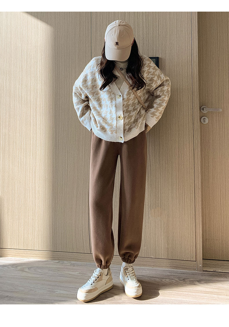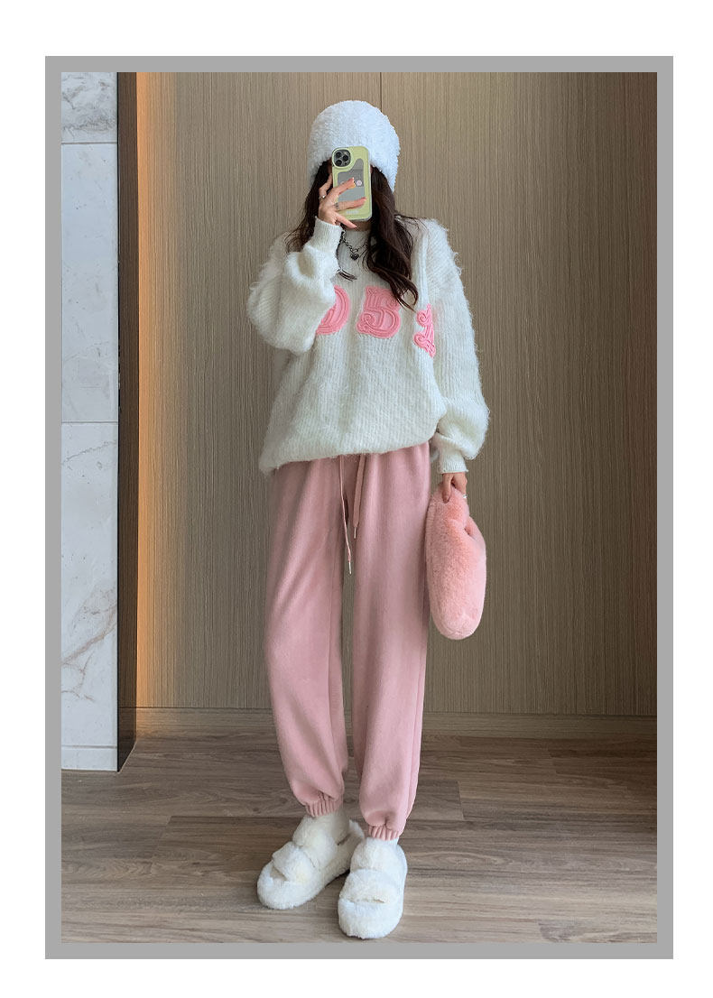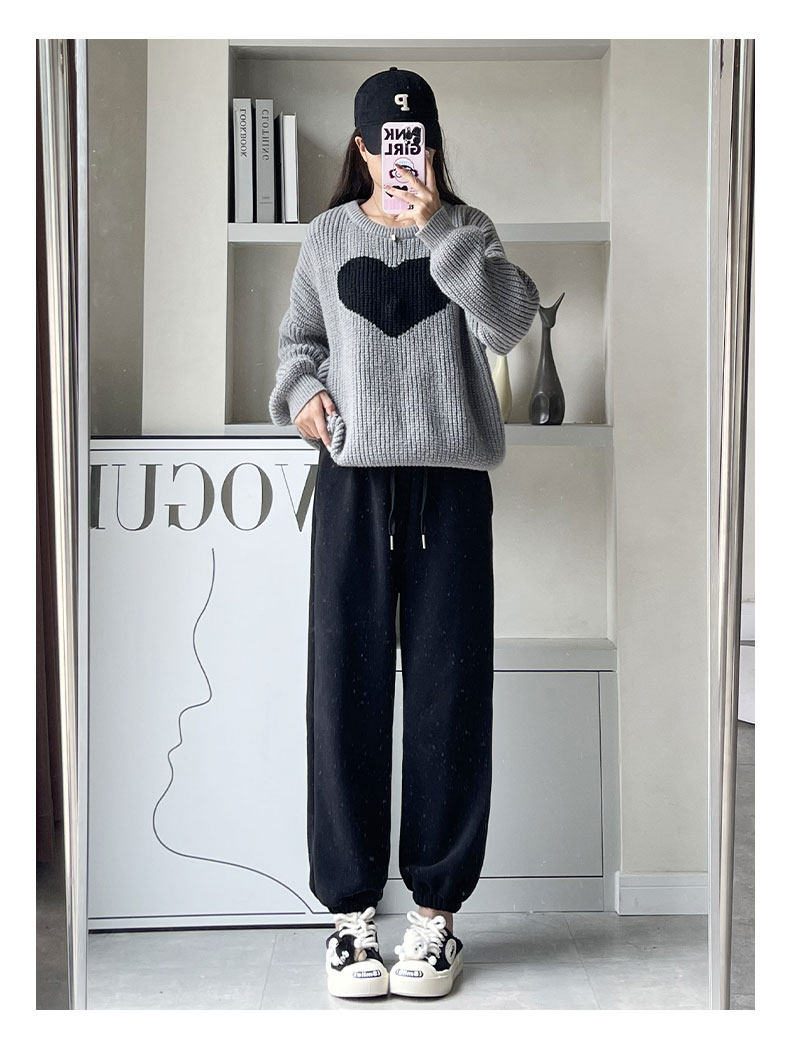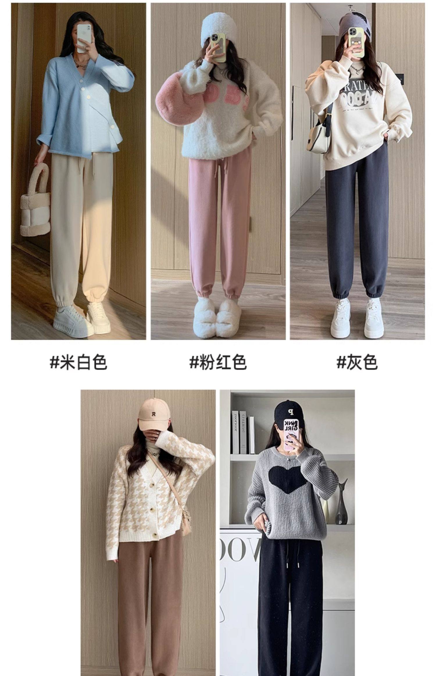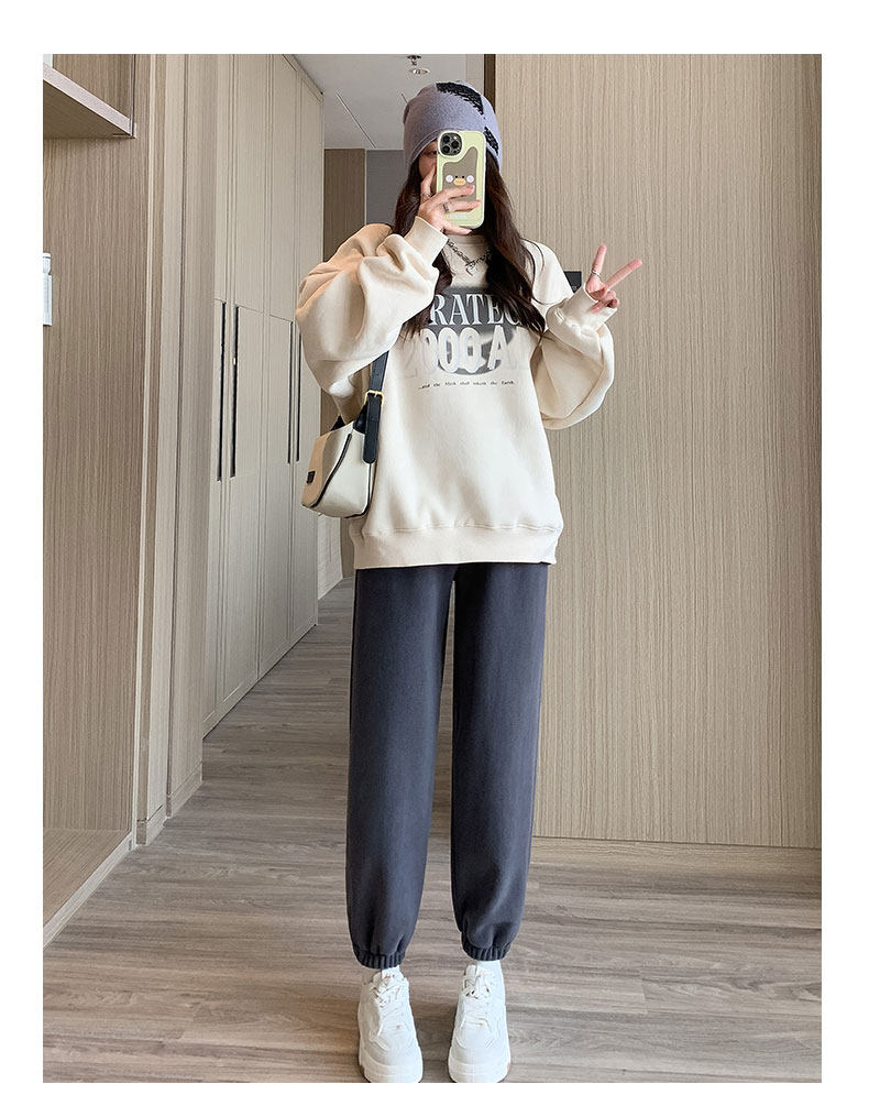 灰色加絨運動褲女秋冬加厚外穿保暖防風棉褲搖粒絨小個子束腳衛褲