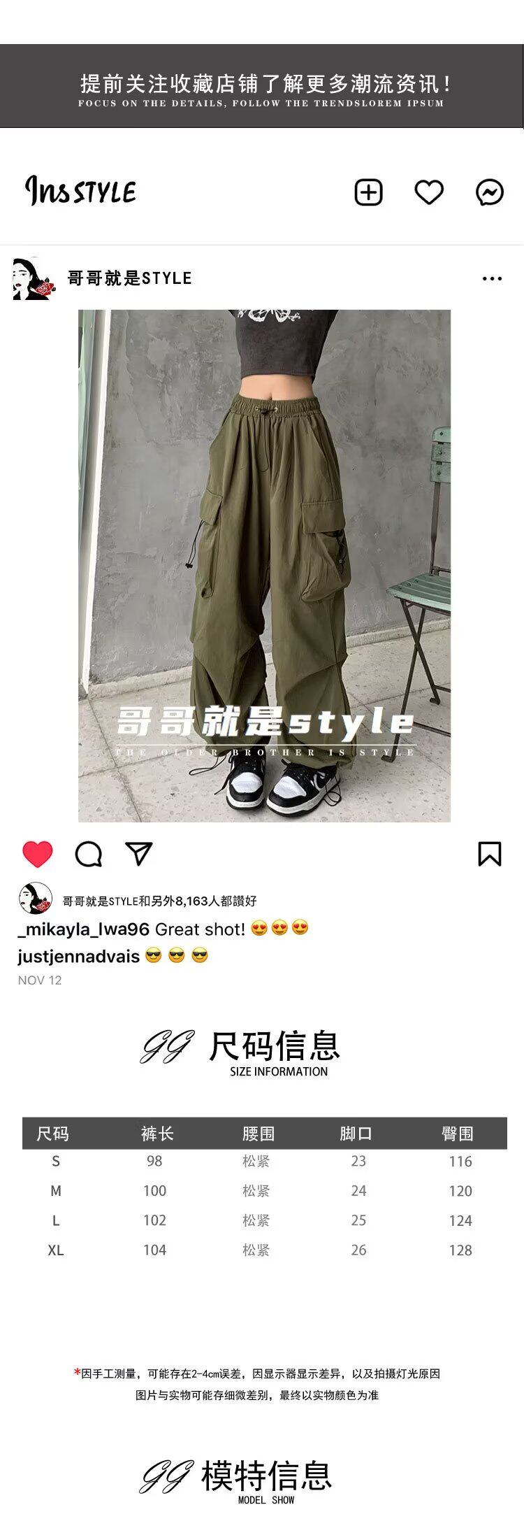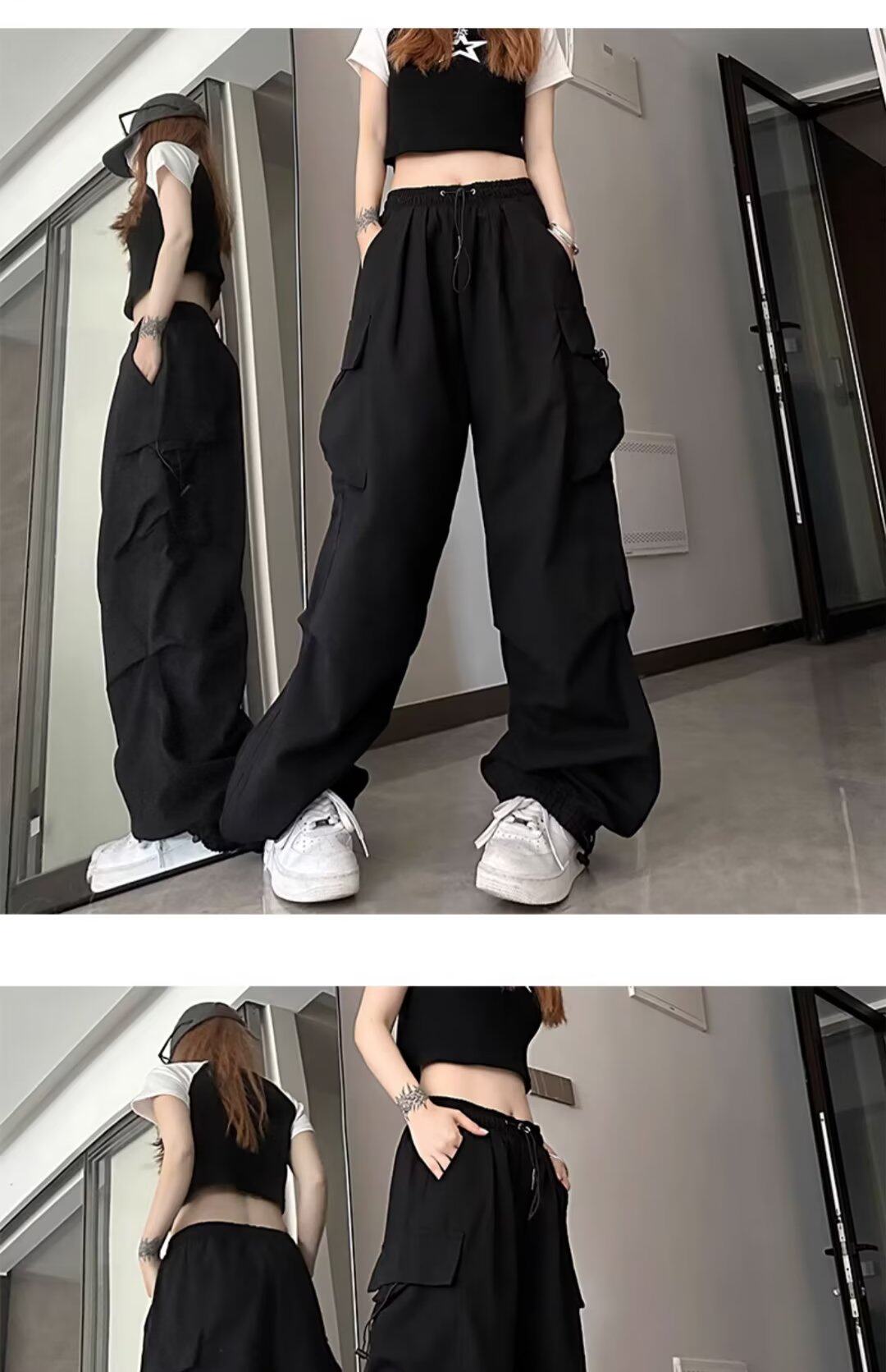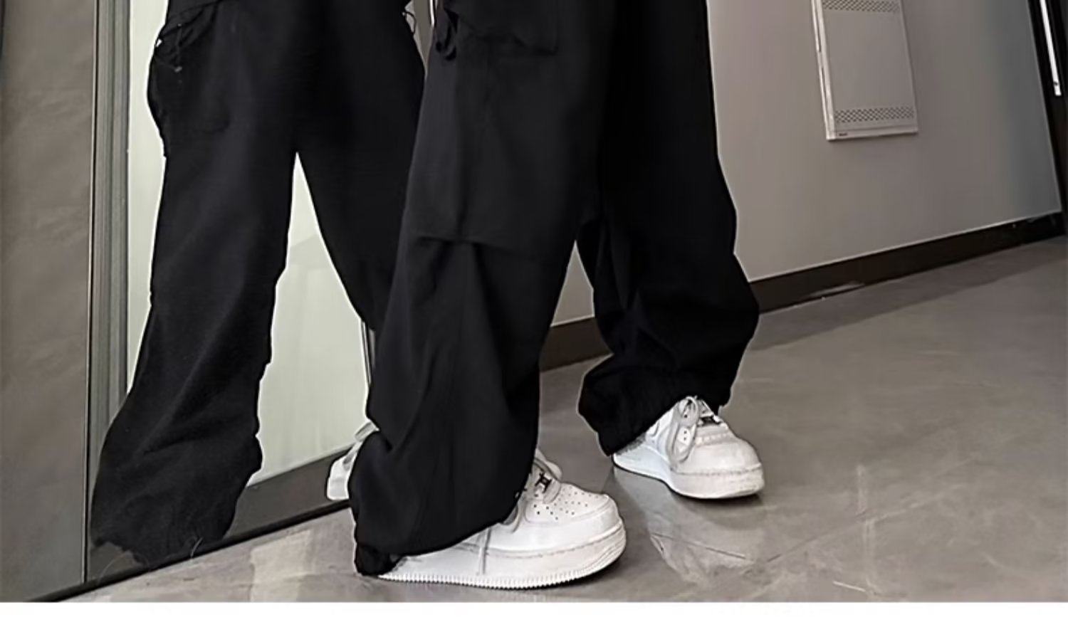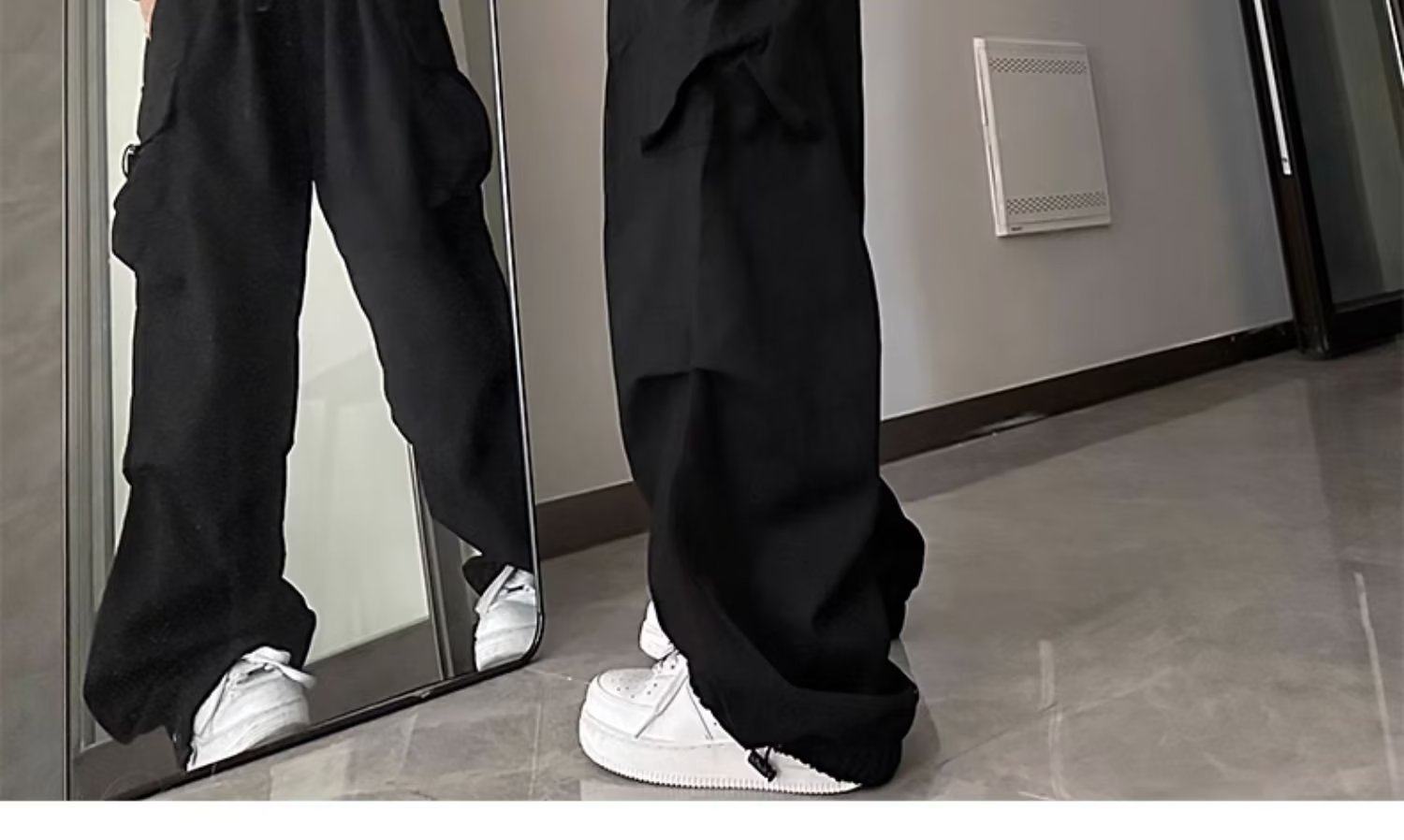 美式高街寬鬆濶腿加絨工裝褲男女ins潮牌休閒百搭街舞褲拖地長褲