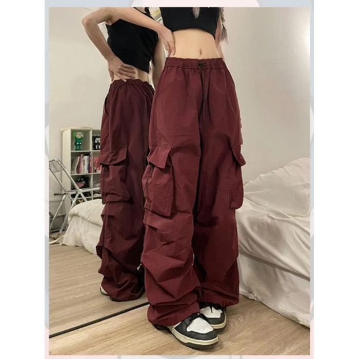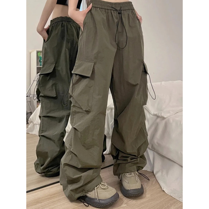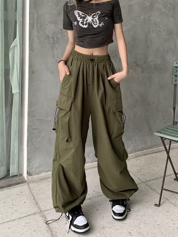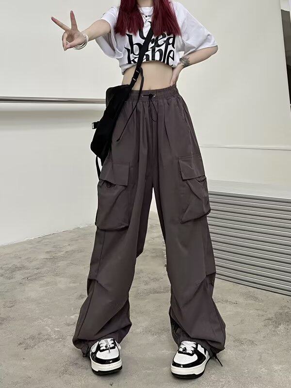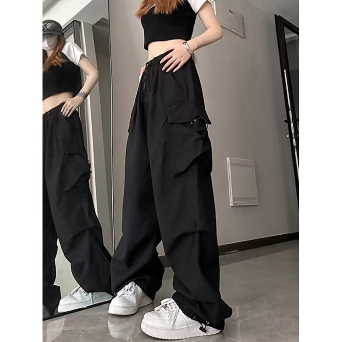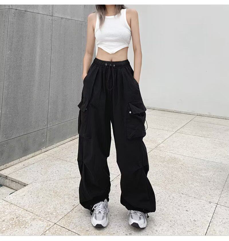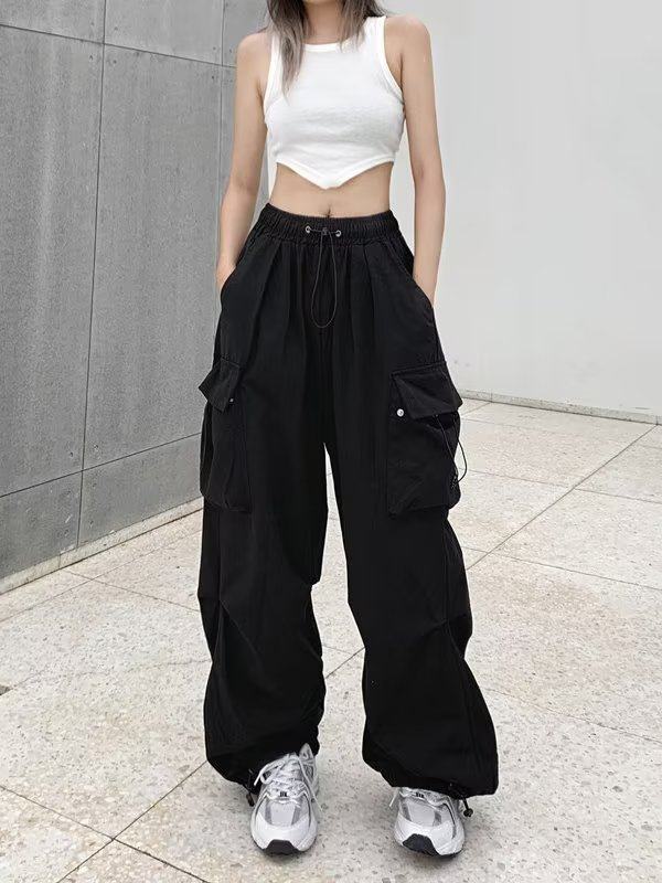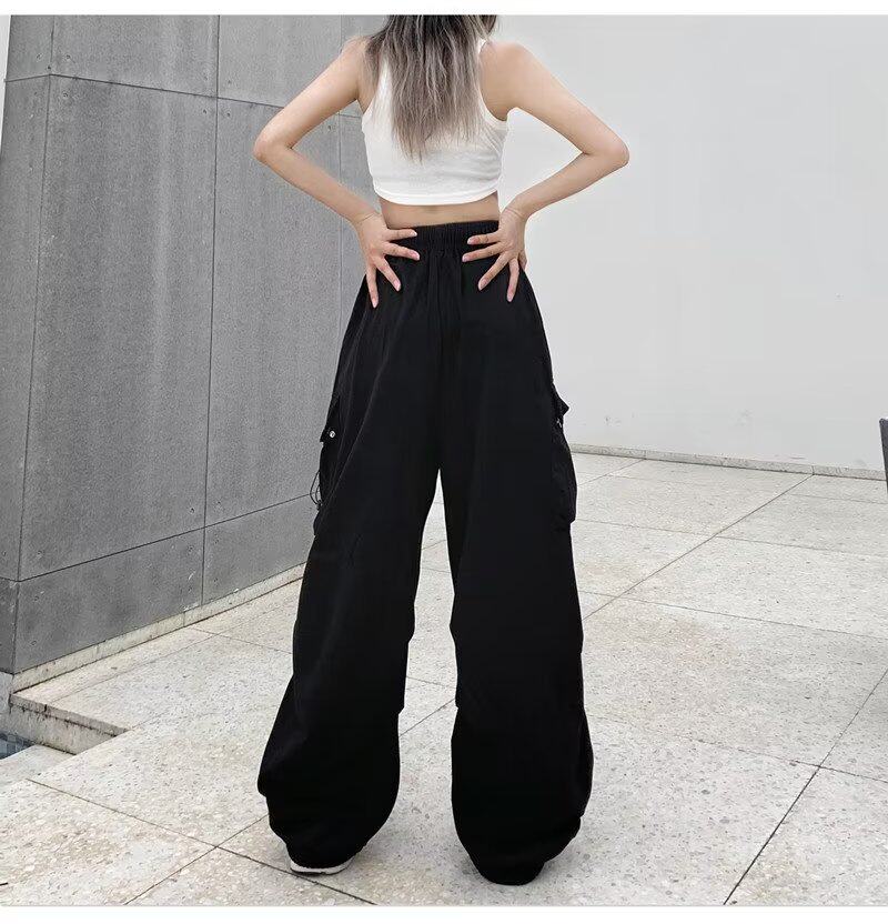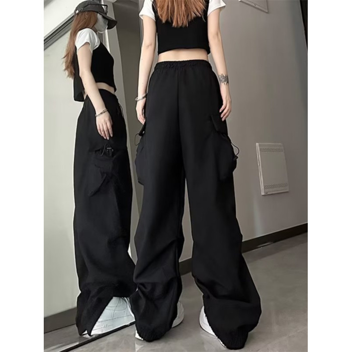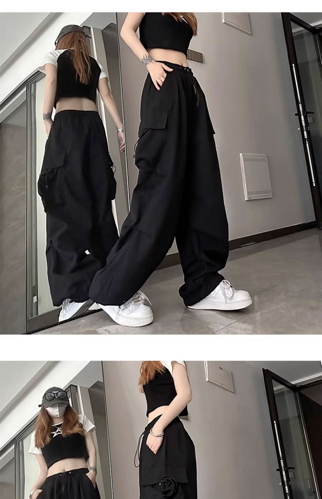 美式高街寬鬆濶腿加絨工裝褲男女ins潮牌休閒百搭街舞褲拖地長褲