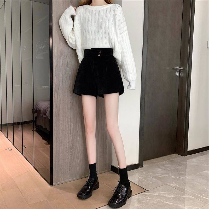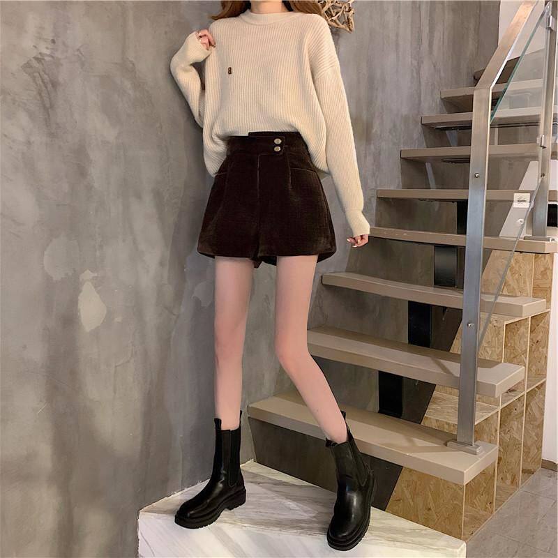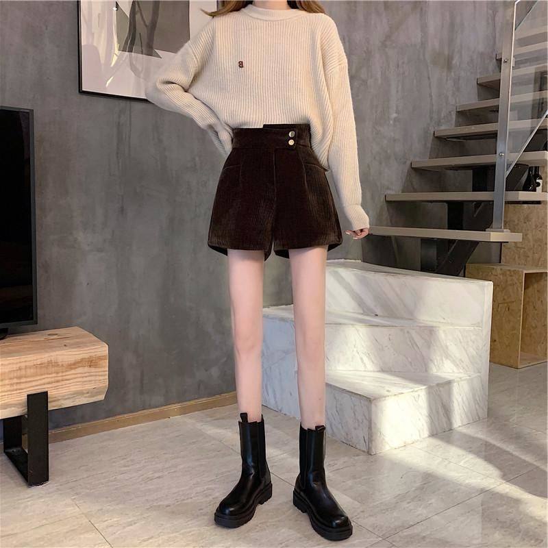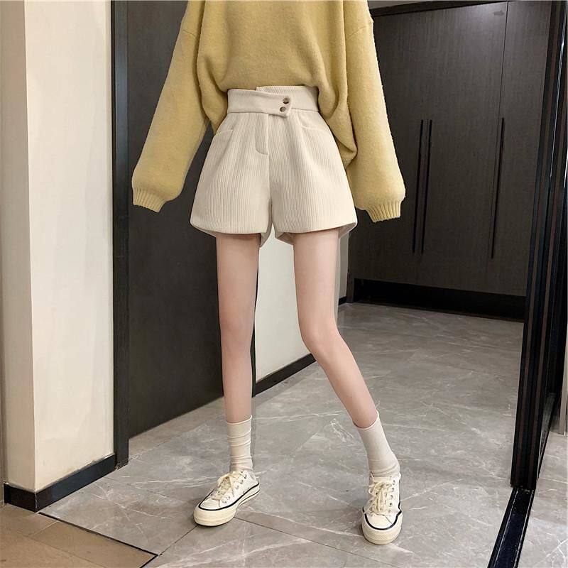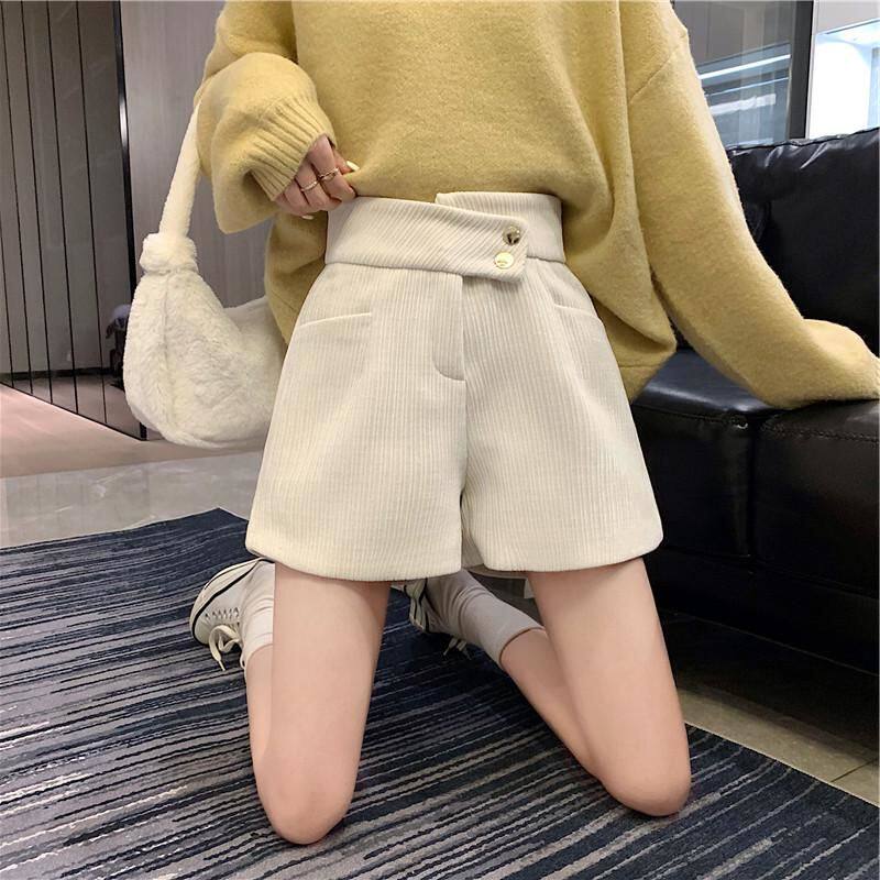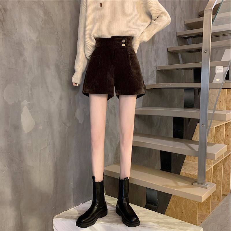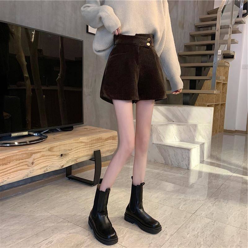 網紅爆款配靴子的短褲女秋冬款2023年新款外穿高腰寬鬆濶腿褲靴褲