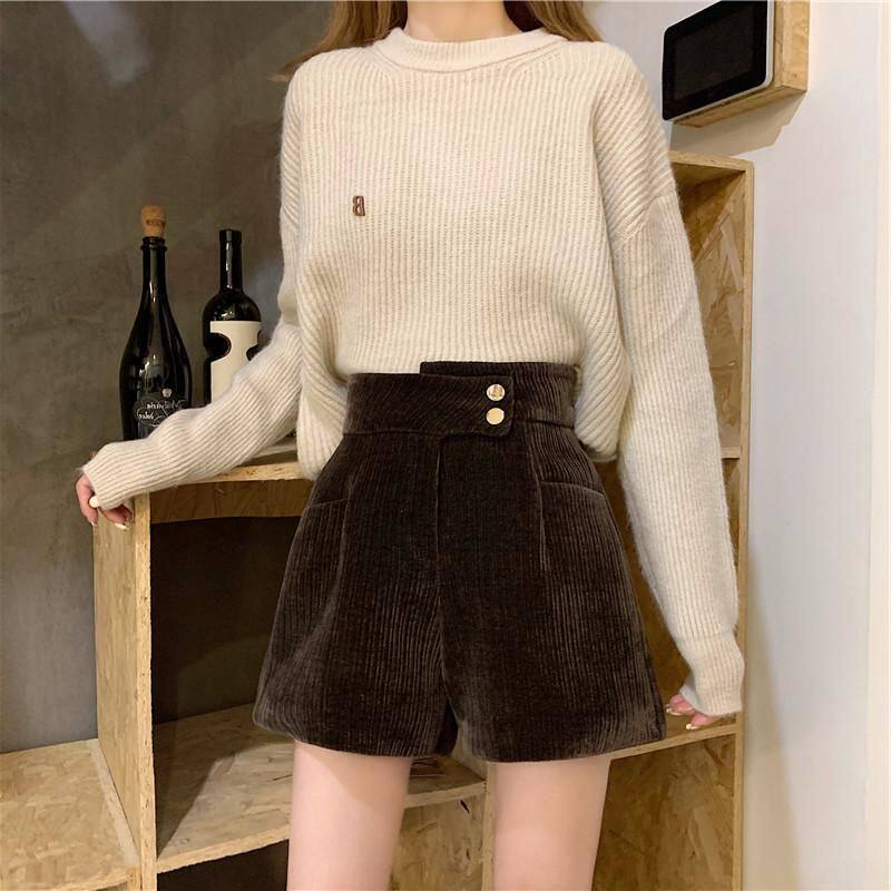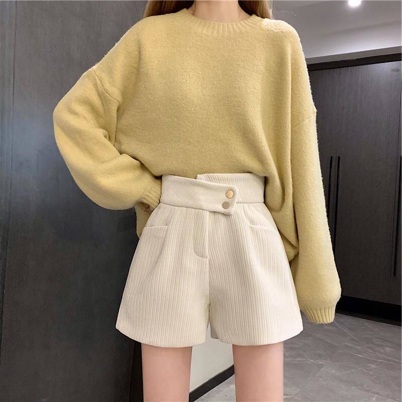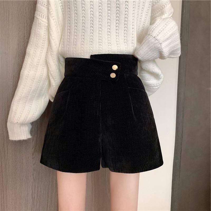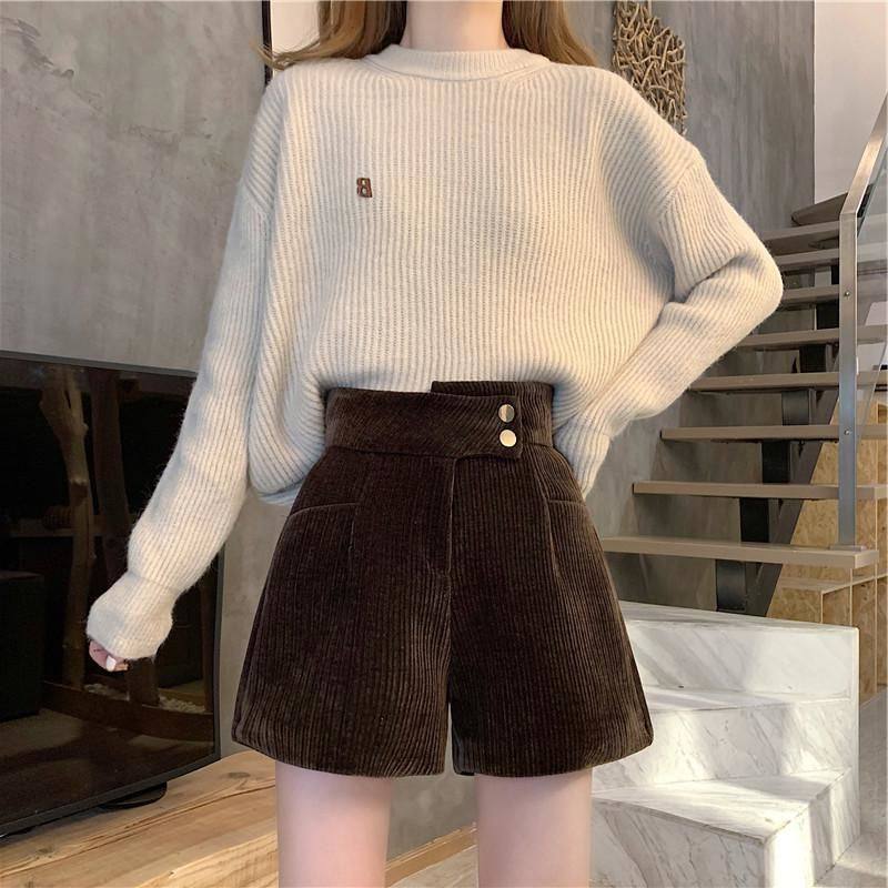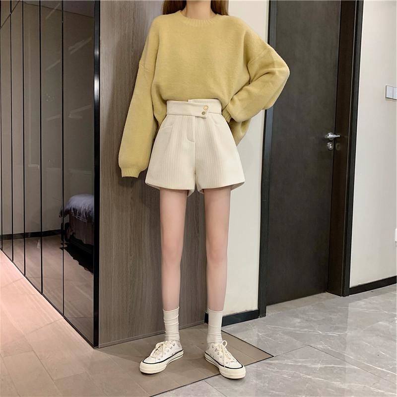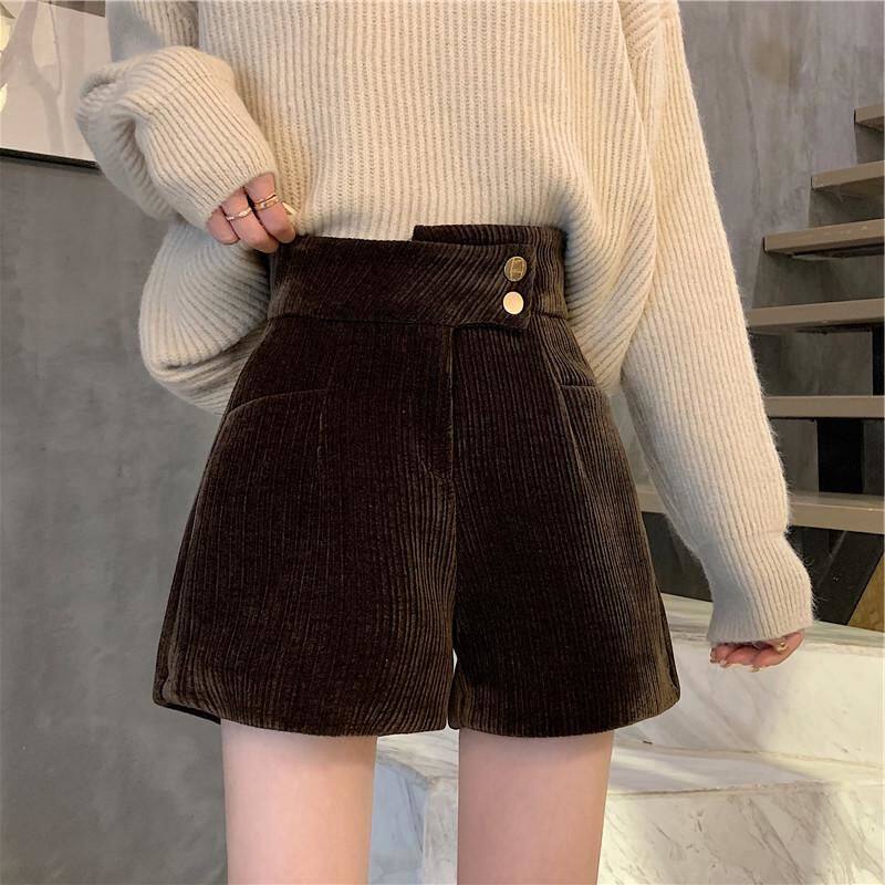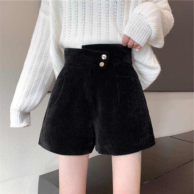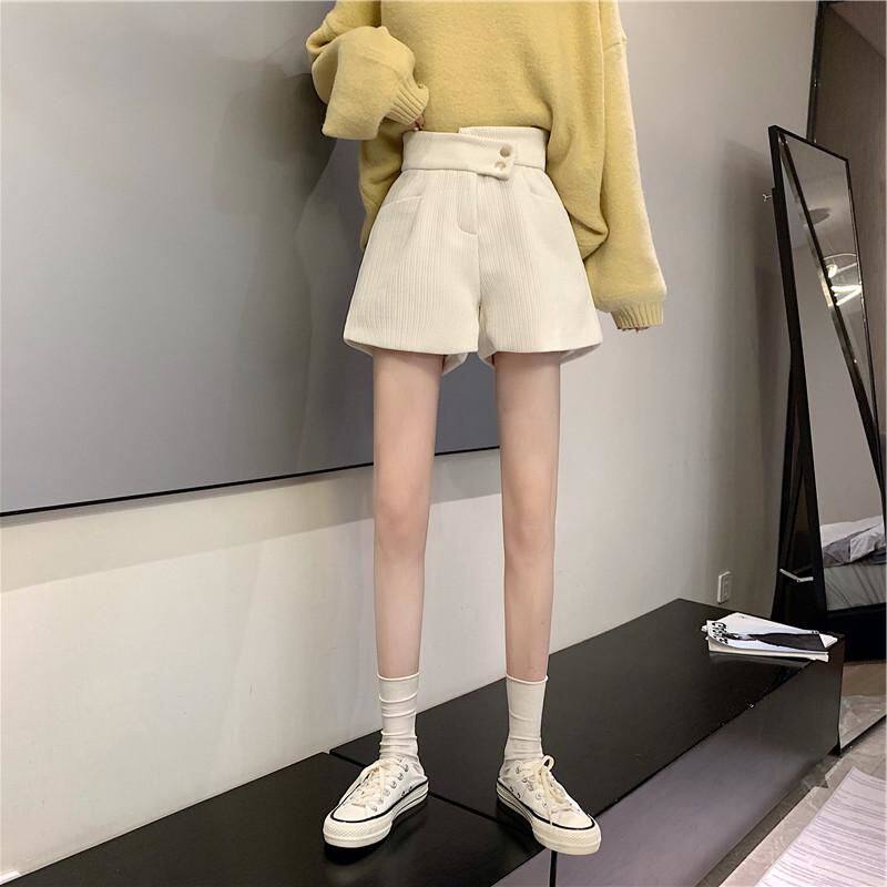 網紅爆款配靴子的短褲女秋冬款2023年新款外穿高腰寬鬆濶腿褲靴褲