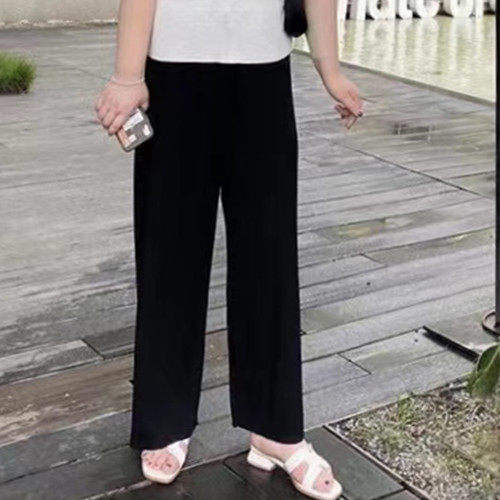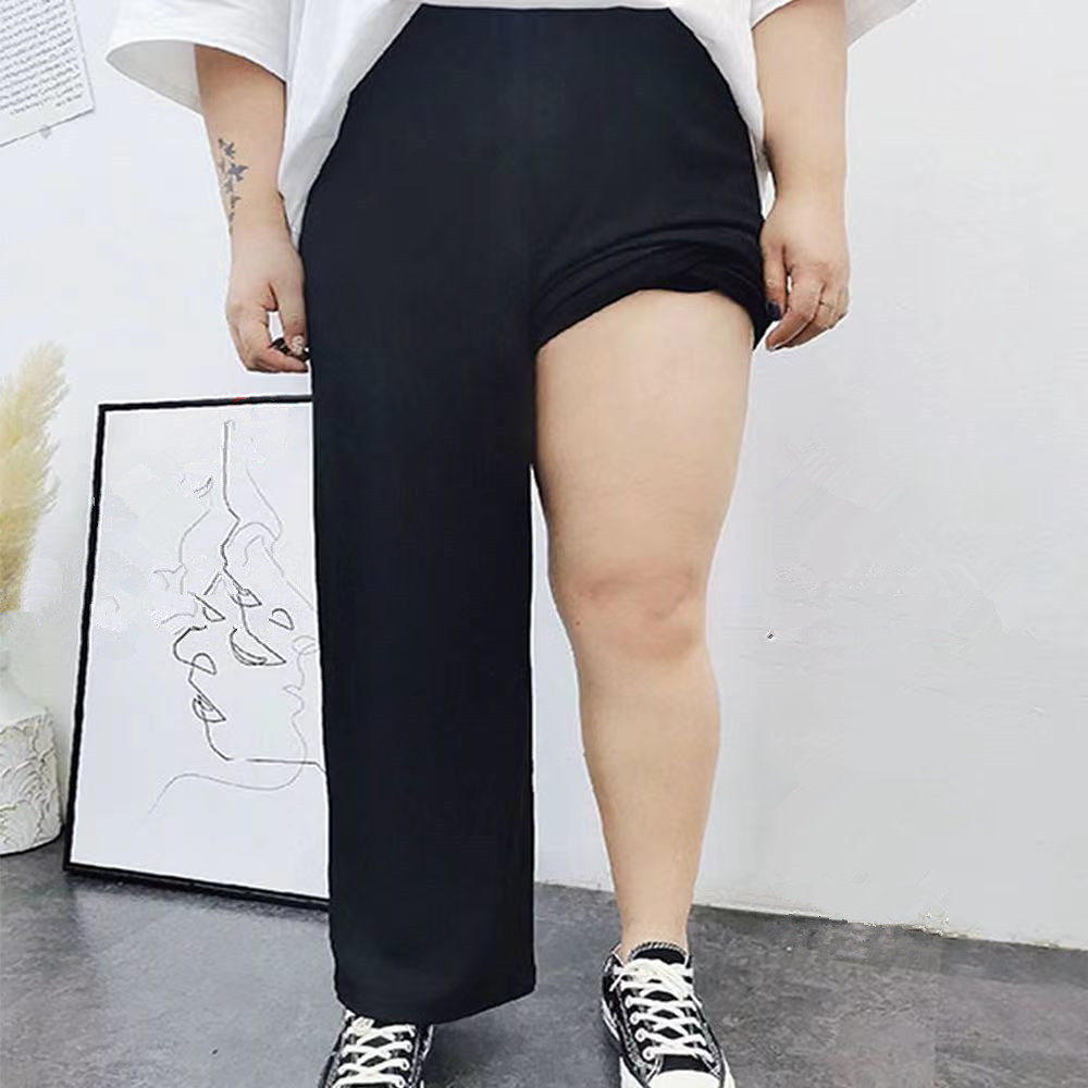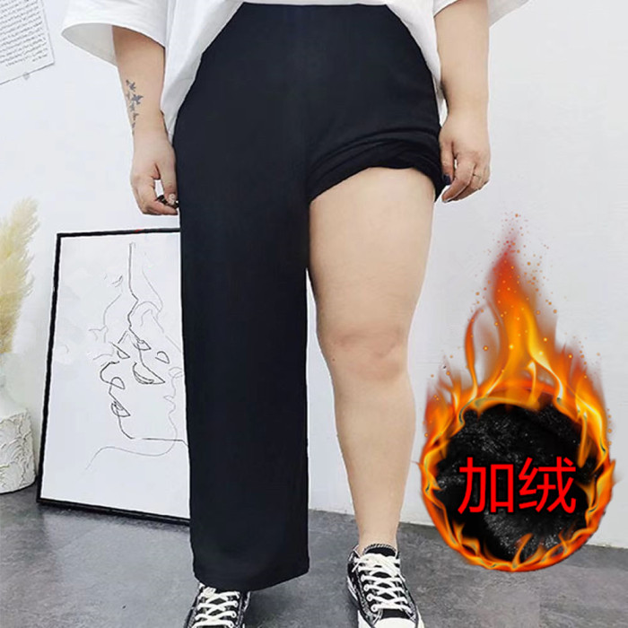 黑色加大加肥寬鬆顯瘦直筒褲女高腰梨形身材遮肉秋冬保暖哈倫褲女