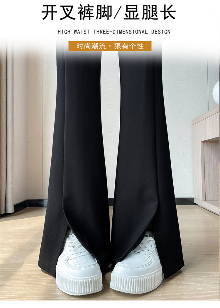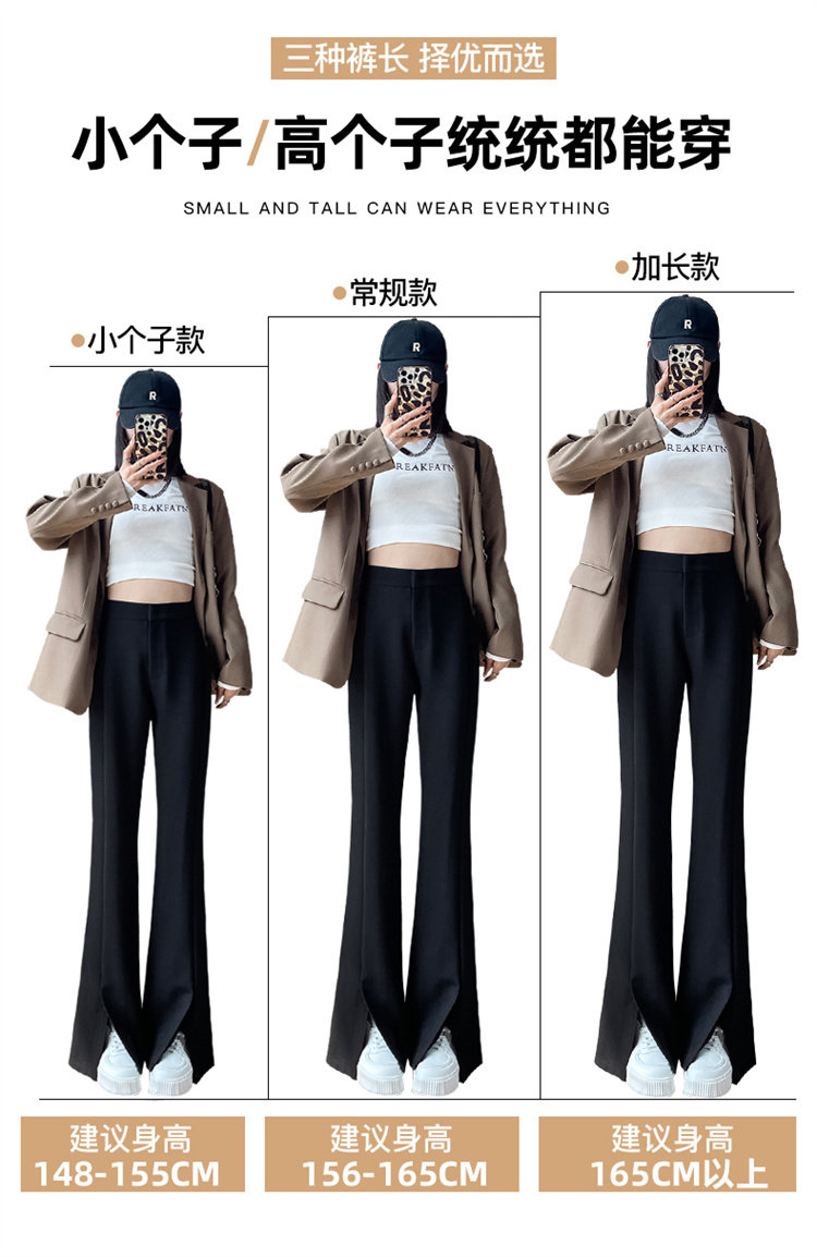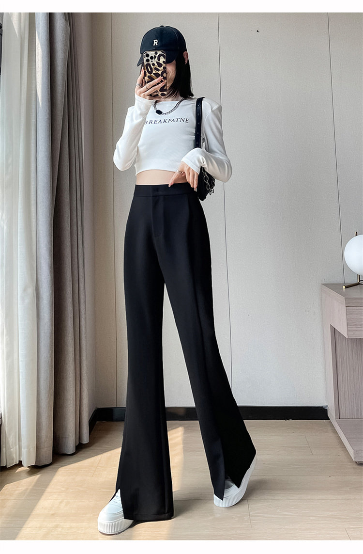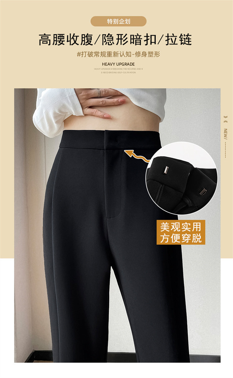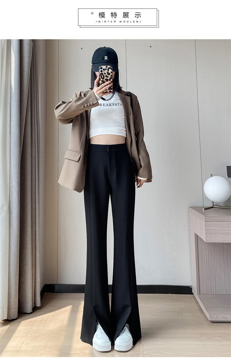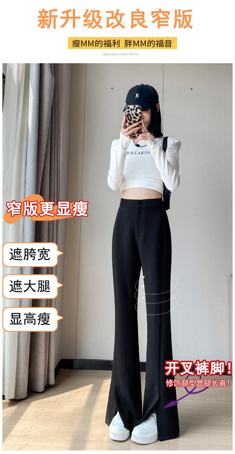 黑色加絨開叉西裝褲子女秋冬高腰休閒直筒褲2026新款小個子微喇褲