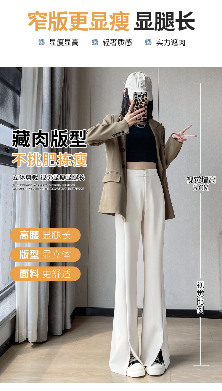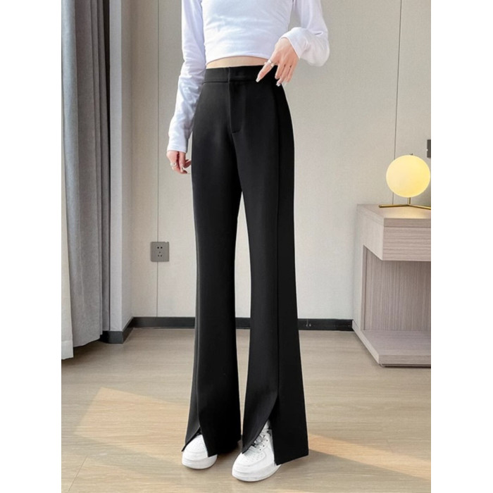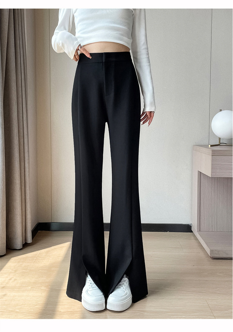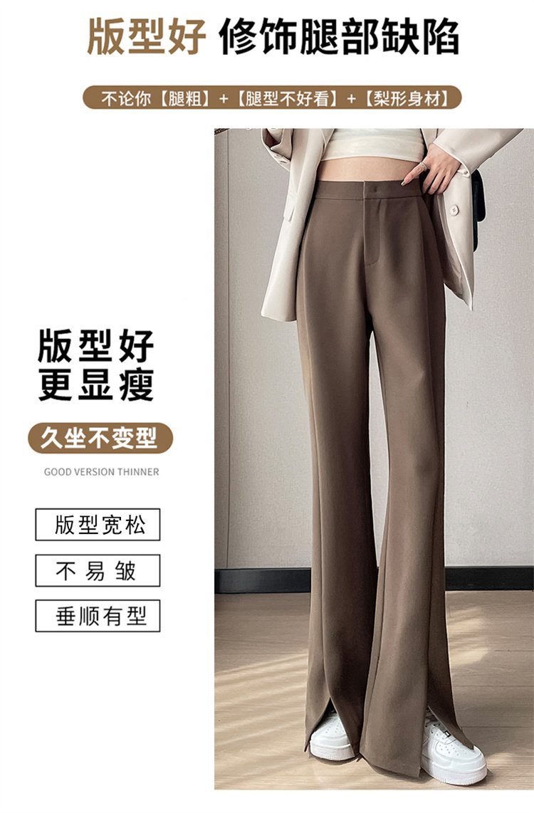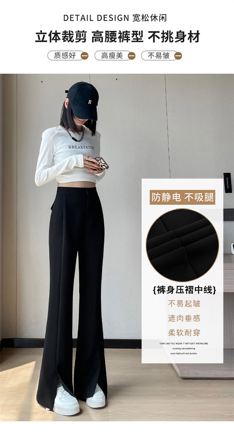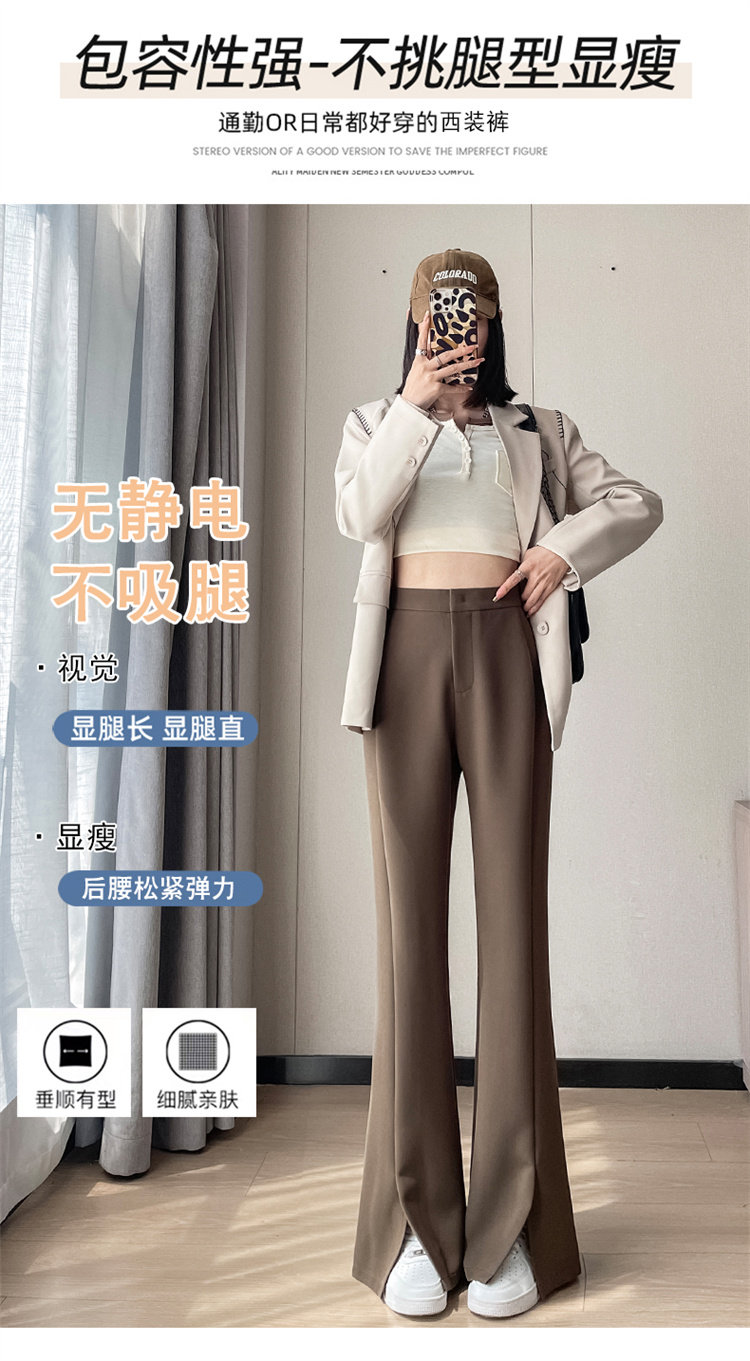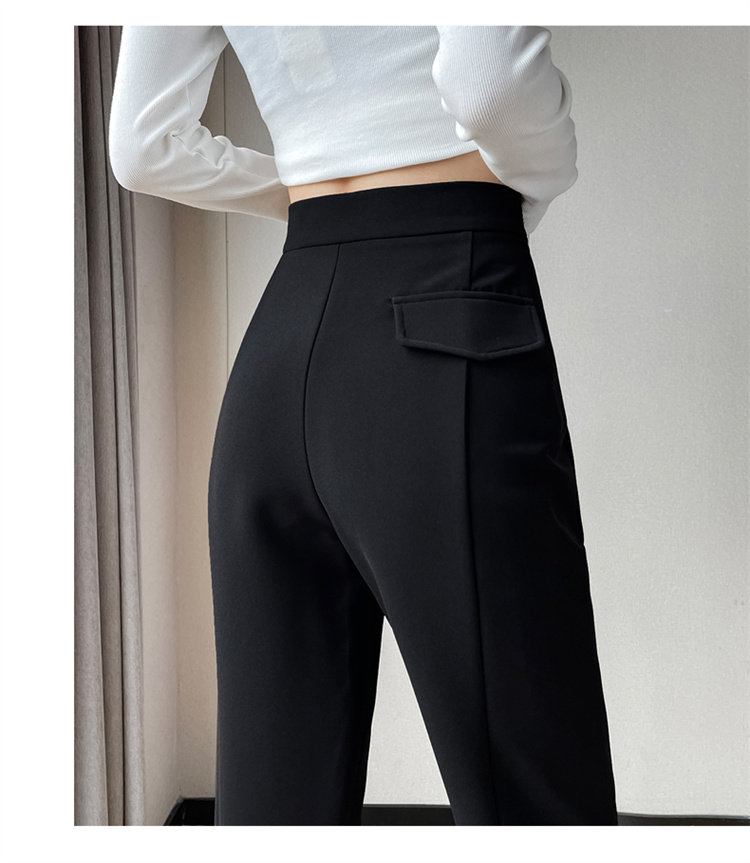 黑色加絨開叉西裝褲子女秋冬高腰休閒直筒褲2026新款小個子微喇褲