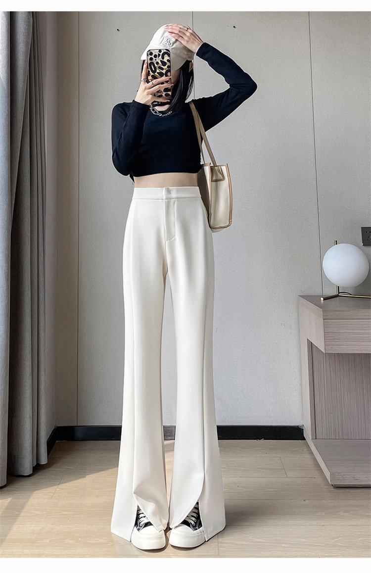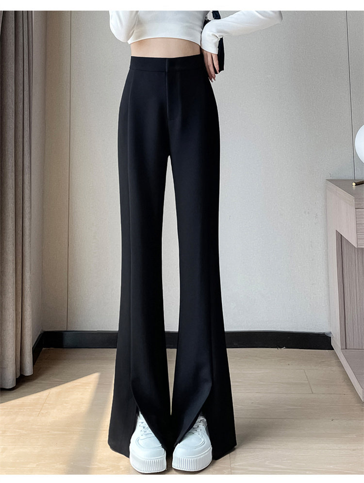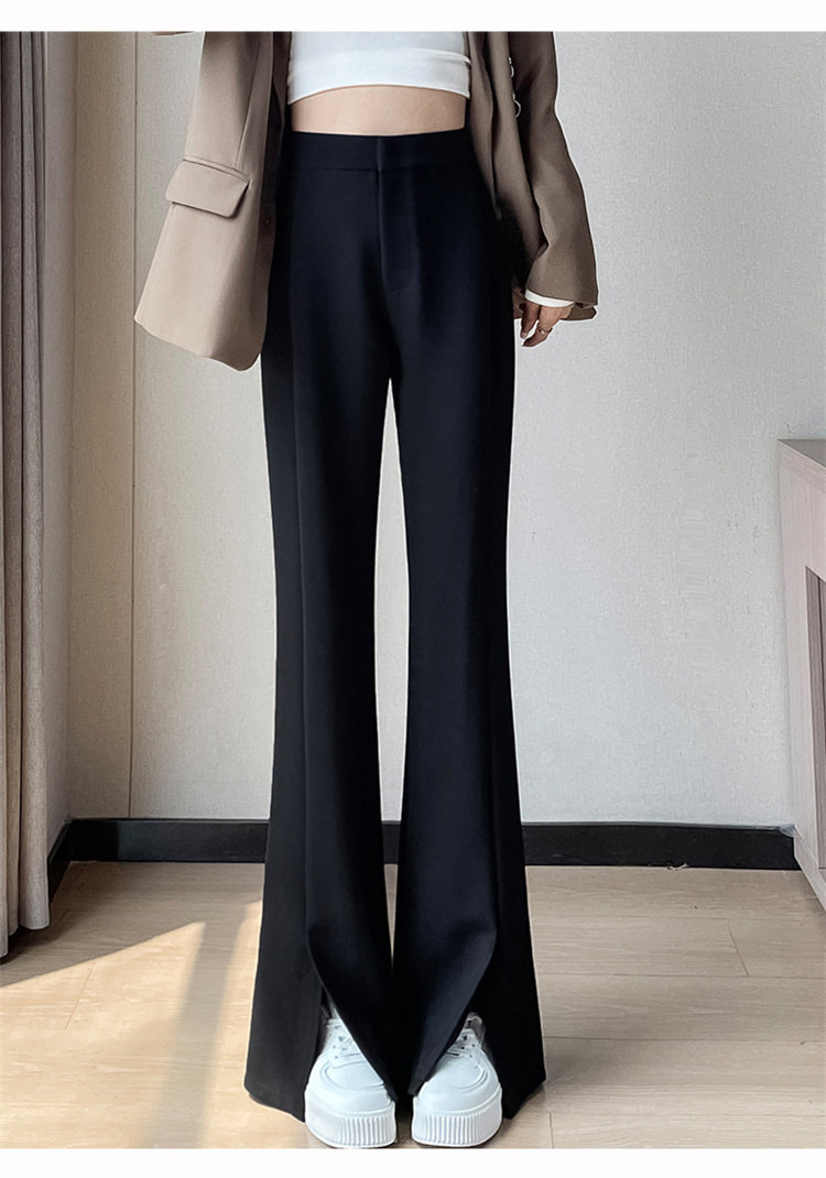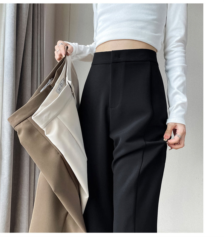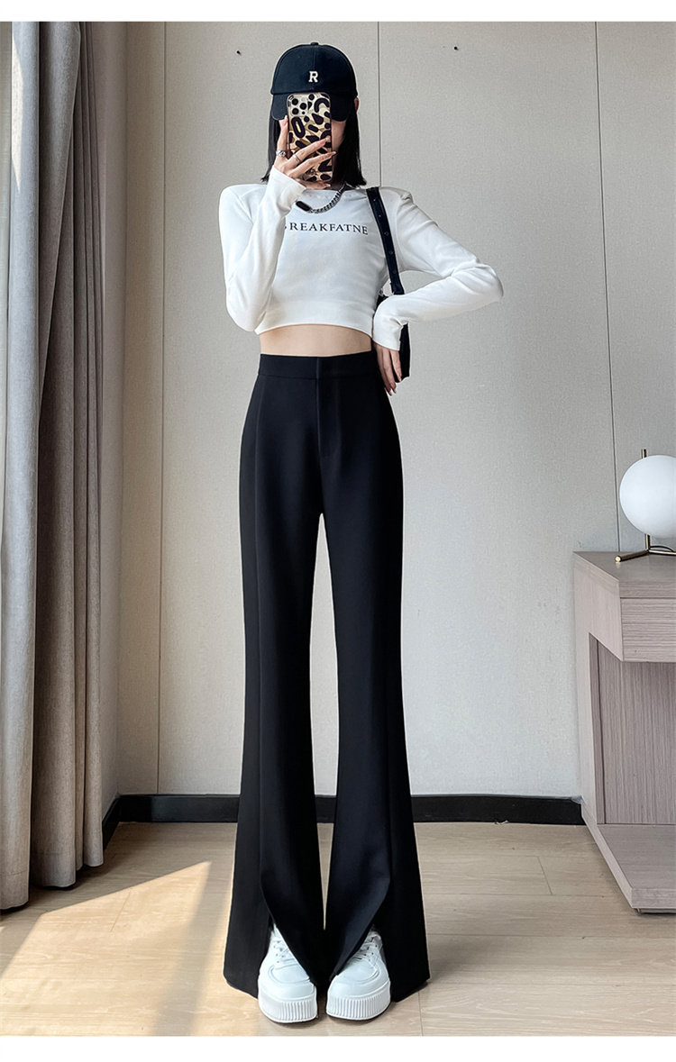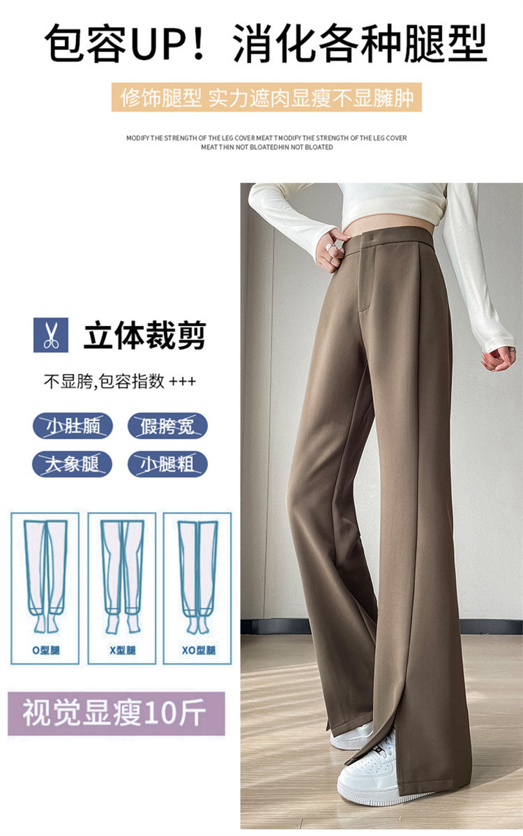 黑色加絨開叉西裝褲子女秋冬高腰休閒直筒褲2026新款小個子微喇褲