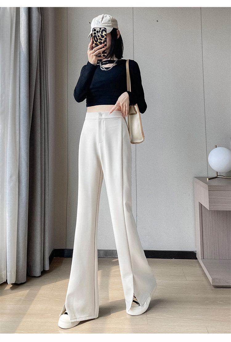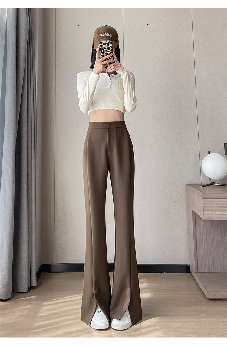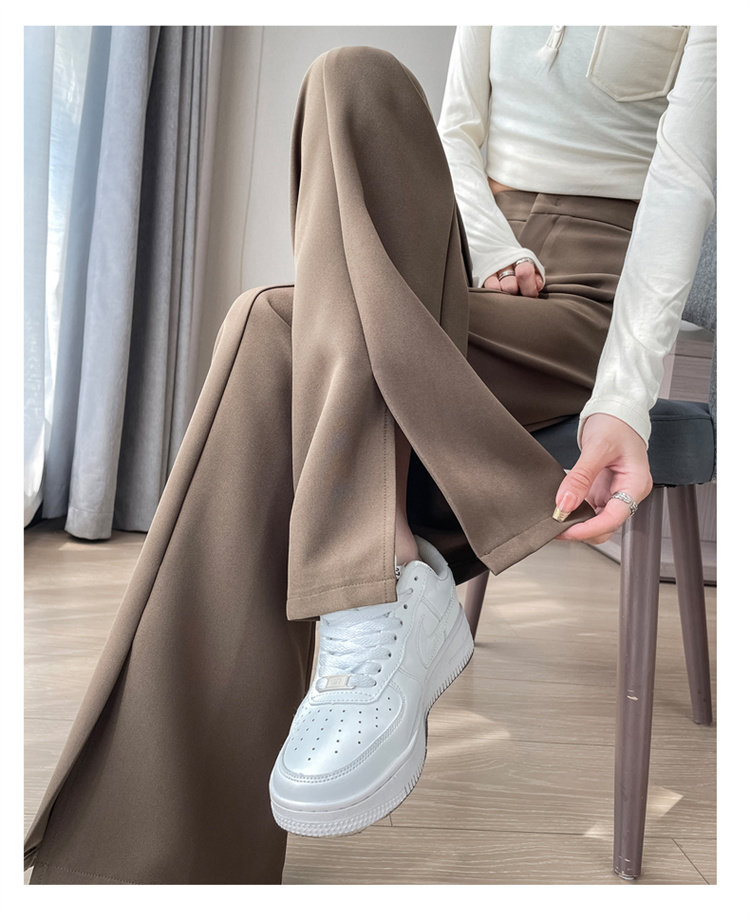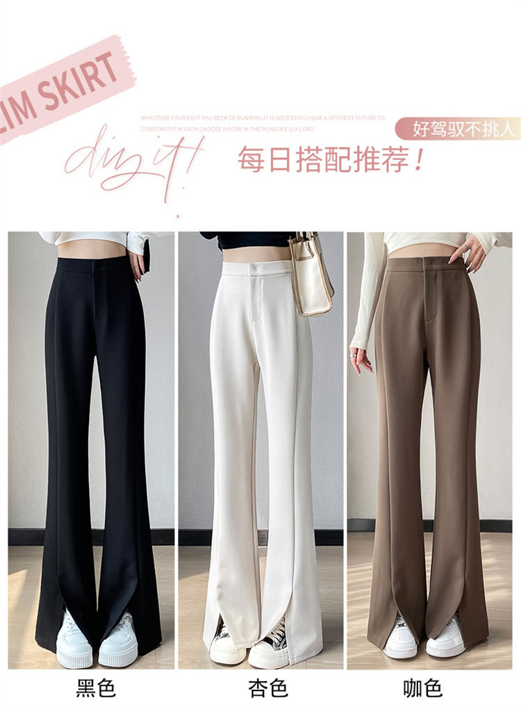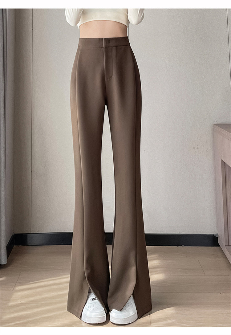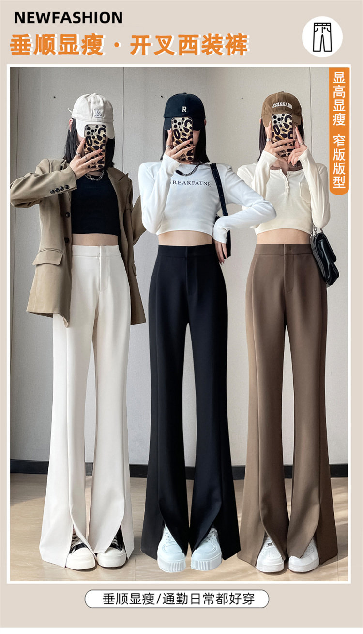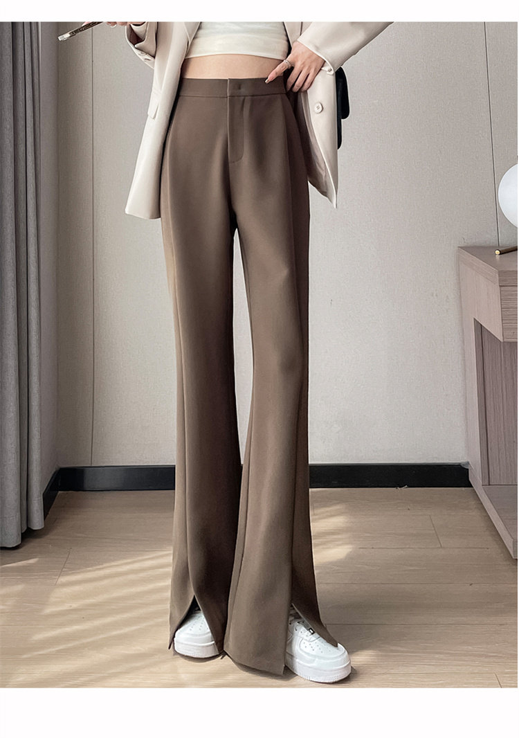 黑色加絨開叉西裝褲子女秋冬高腰休閒直筒褲2026新款小個子微喇褲