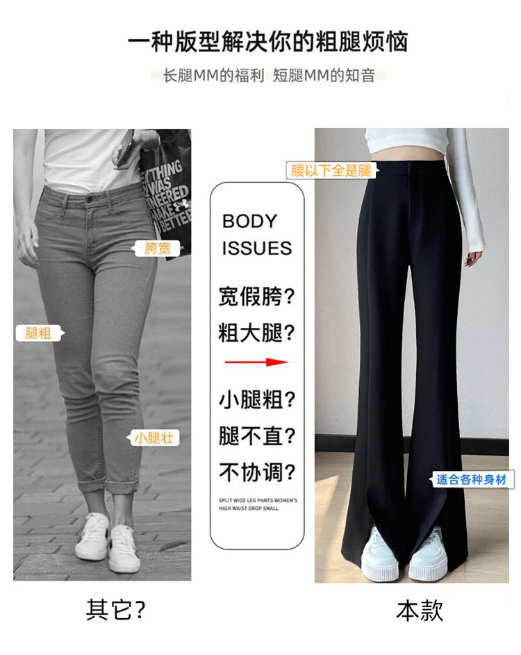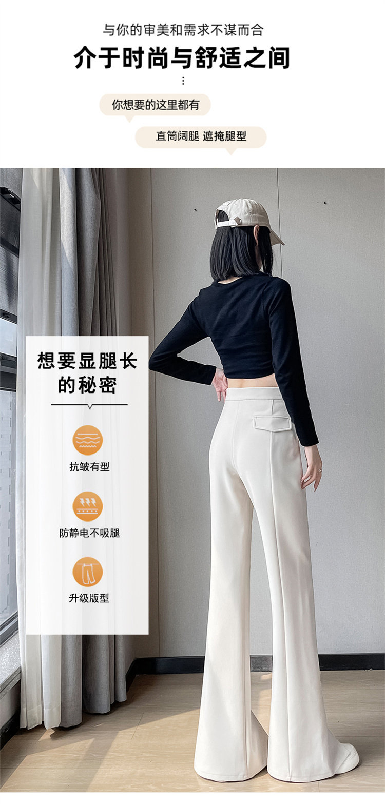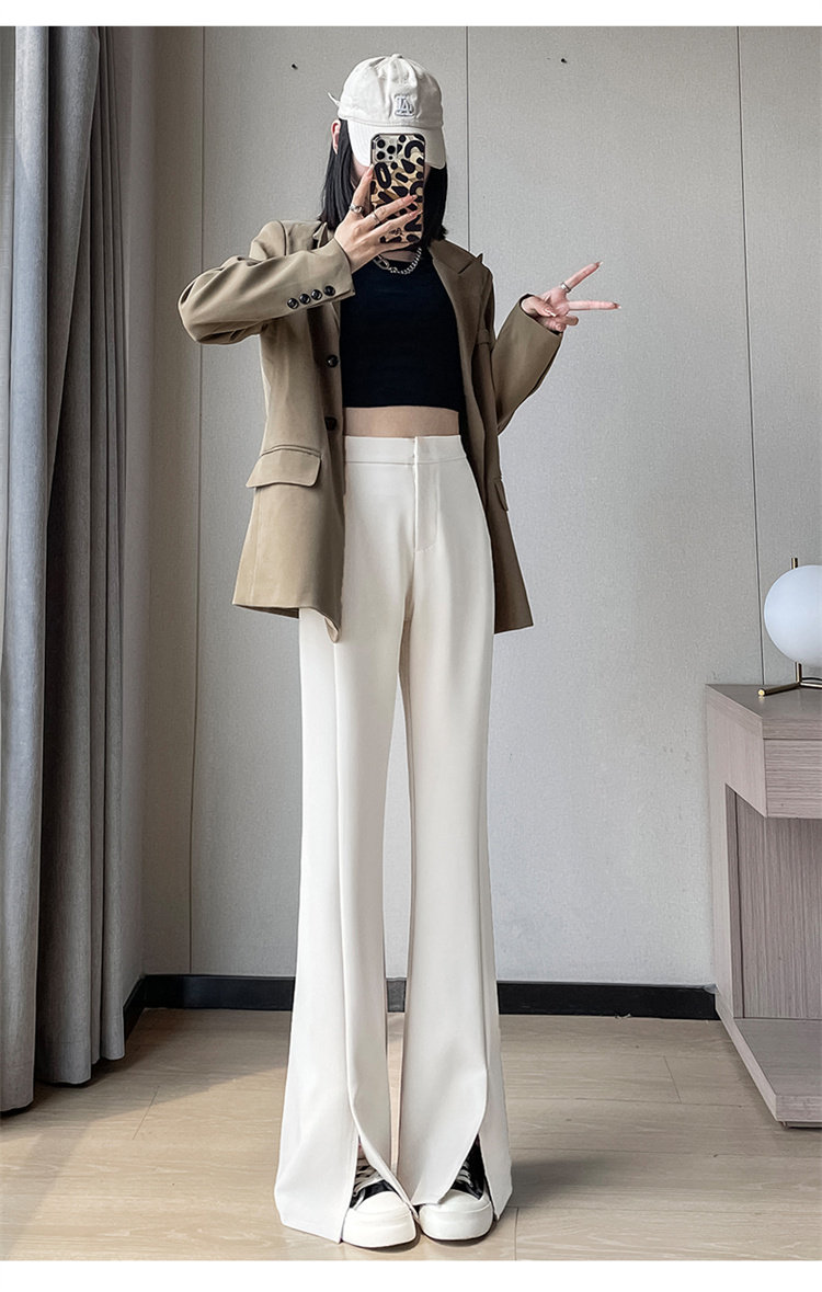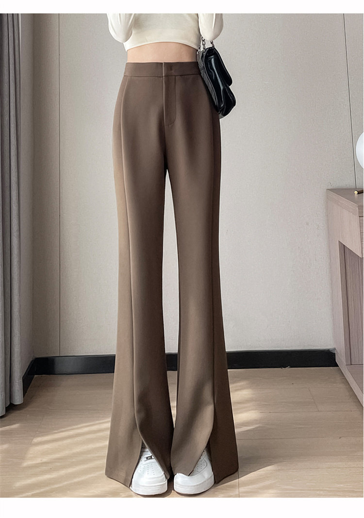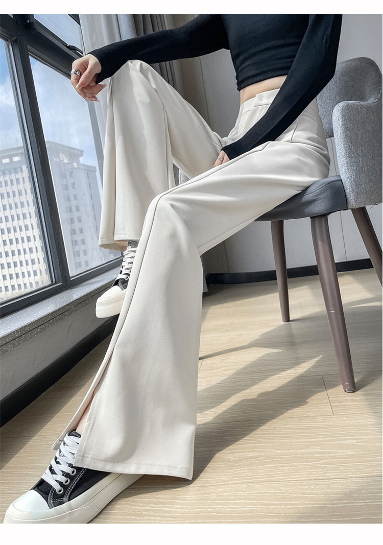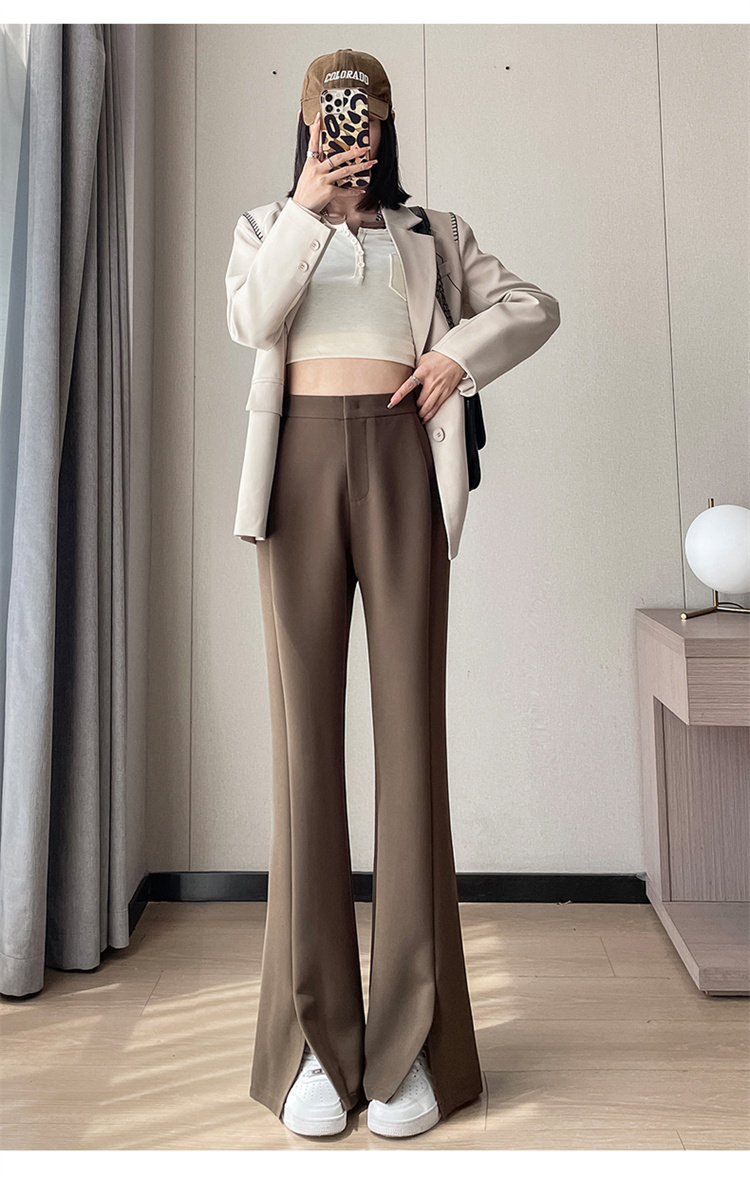 黑色加絨開叉西裝褲子女秋冬高腰休閒直筒褲2026新款小個子微喇褲