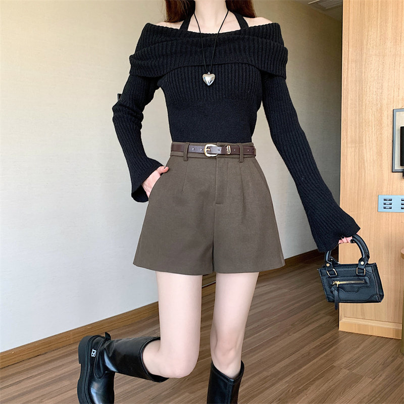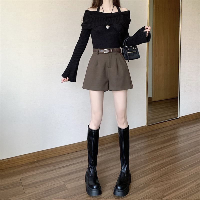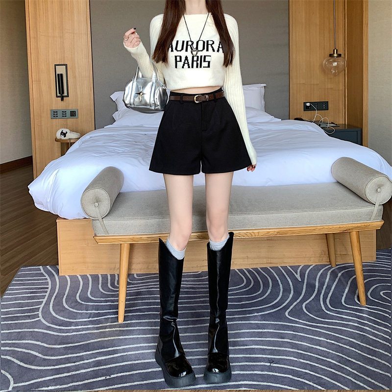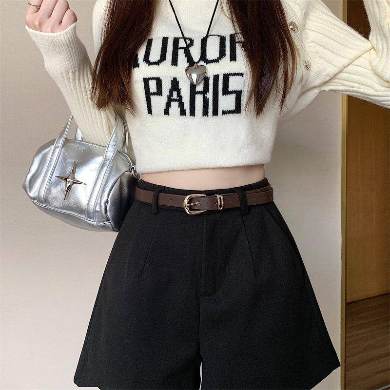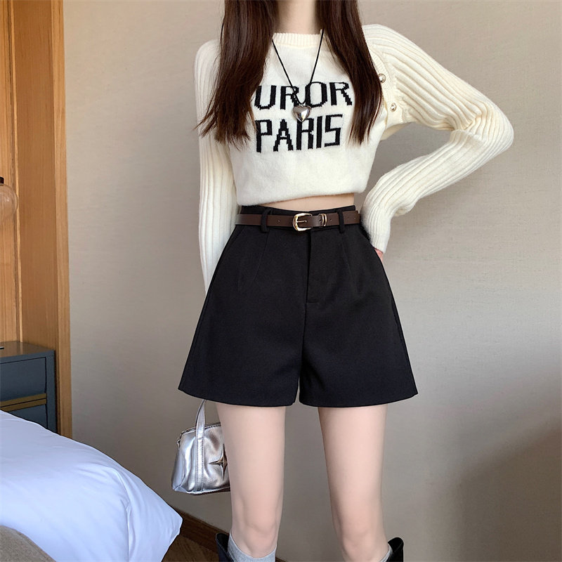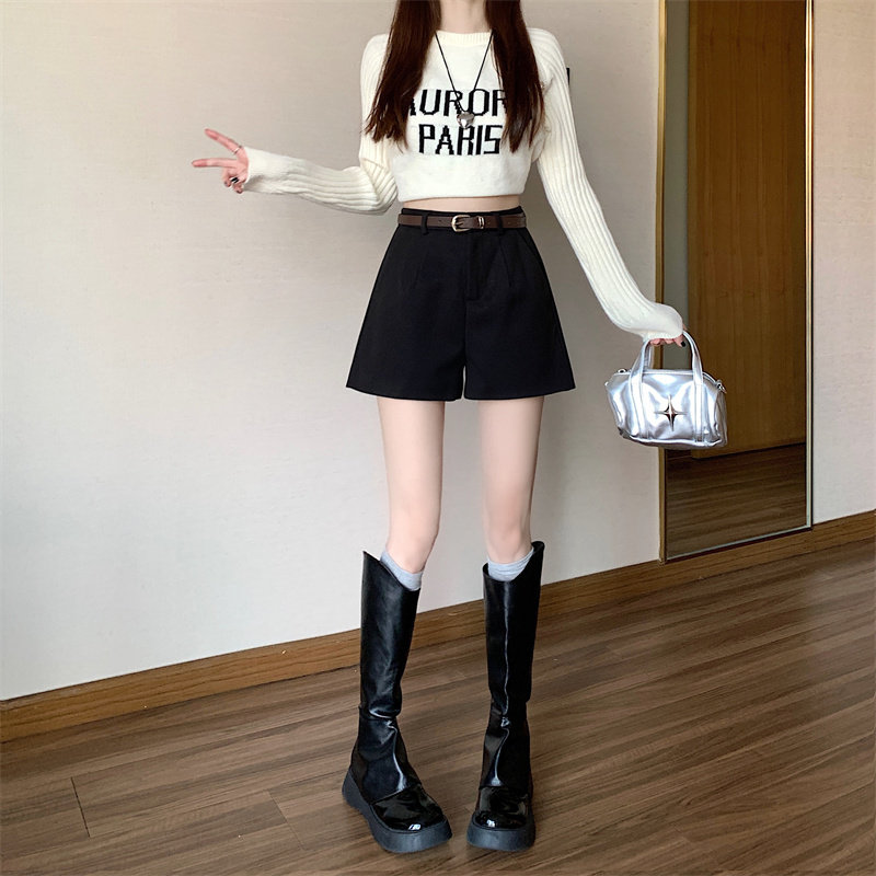 高腰a字版短褲女夏薄款2025新款小個子寬鬆顯瘦黑色濶腿西裝褲子