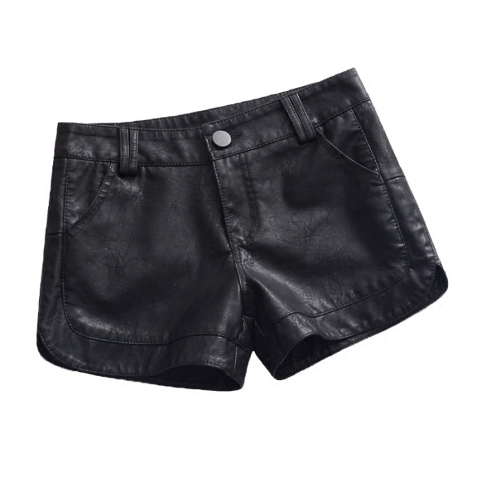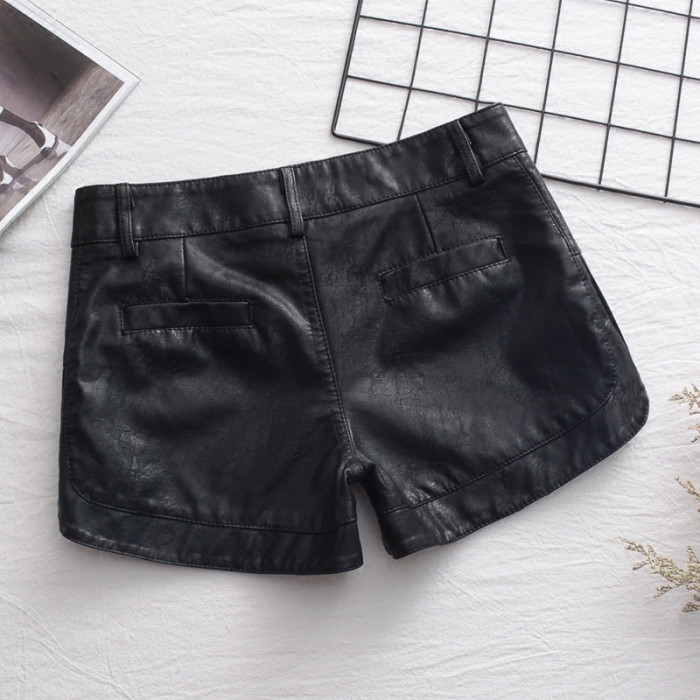 專櫃2025春秋新款綿羊皮短褲女顯瘦黑色修身真皮褲靴褲打底外穿潮