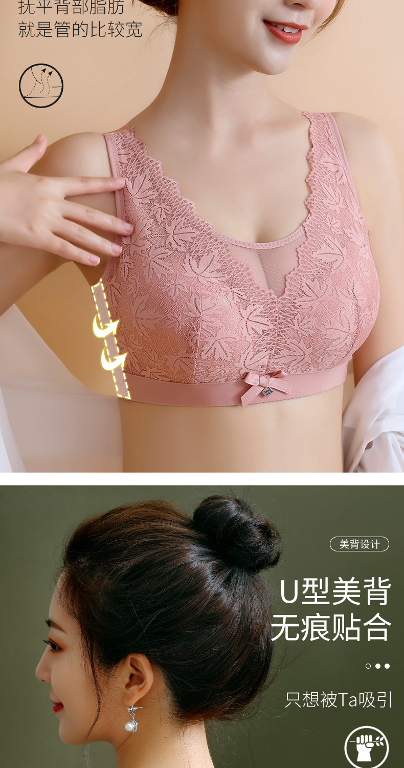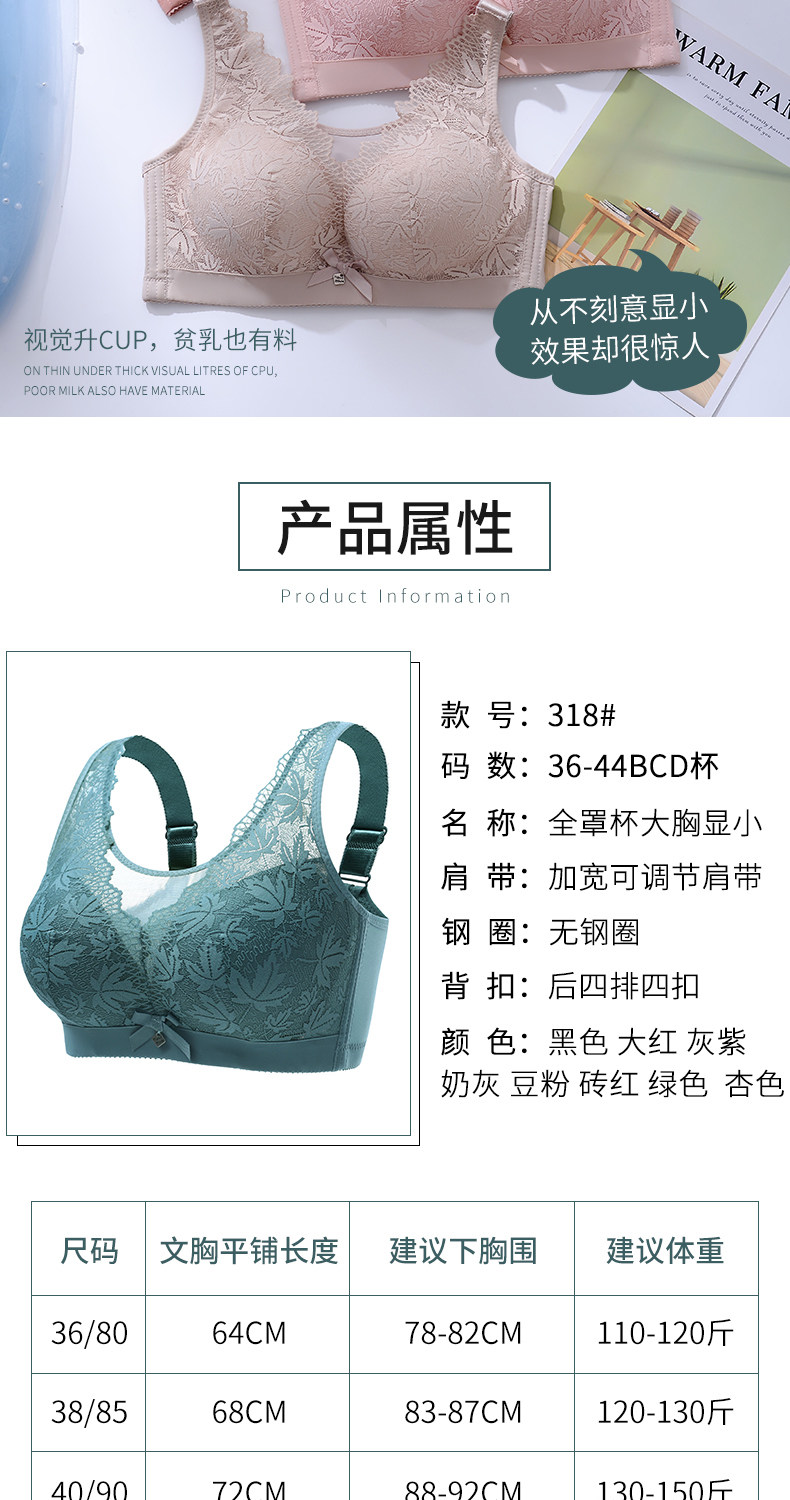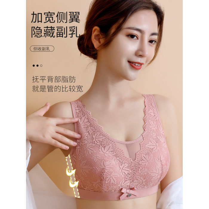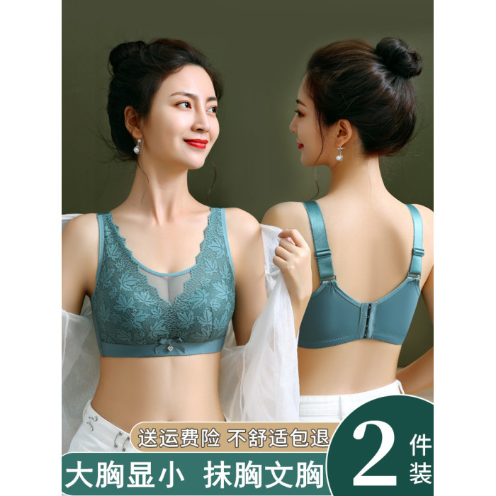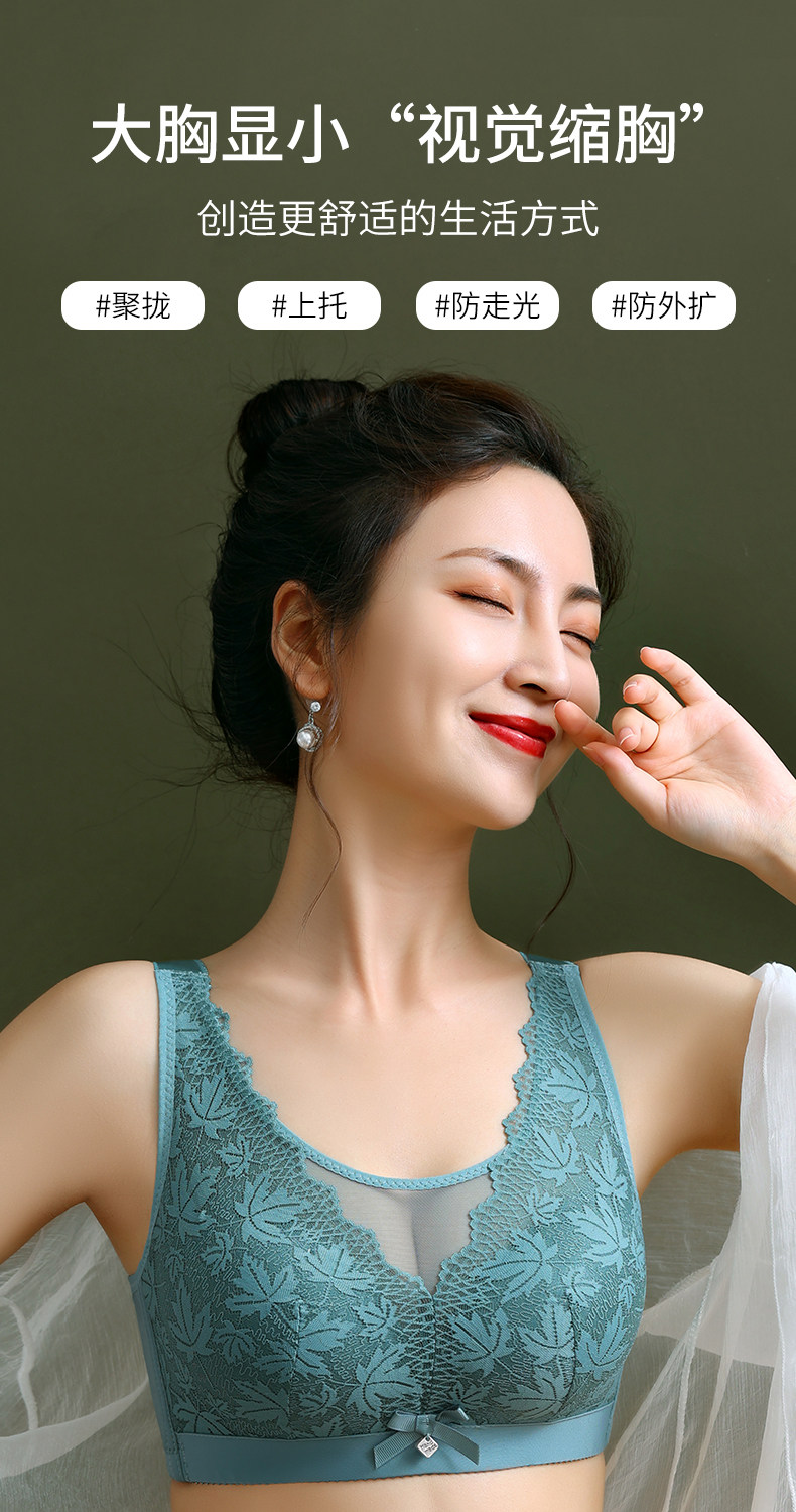大碼薄款大胸顯小內衣女士無鋼圈聚攏收副乳防下垂抹胸蕾絲文胸罩
